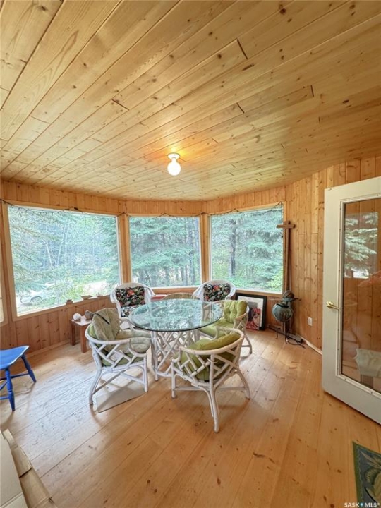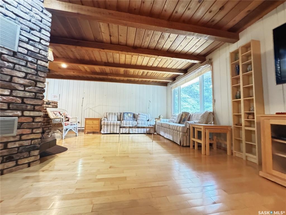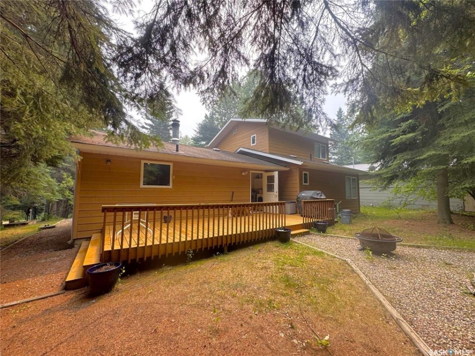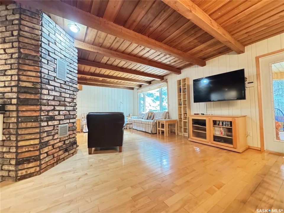 Rare Opportunity at McPhee Lake This beautifully renovated, four-season and fully winterized cabin offers 1,992 square feet of open-concept living space and is truly move-in ready as the sale includes all contents including furniture, canoe and kayak. This cabin was completely rebuild in 2001 and features maple hardwood floors throughout maple banisters and trim, four spacious bedrooms and two full bathrooms, the cabin combines rustic charm with modern comfort. A stunning brick wood-burning fireplace anchors the main living area, while a screened-in porch and expansive deck provide the perfect spaces for relaxation and entertaining. Additional highlights include a full concrete basement, forced air natural gas furnace, and water heater—ensuring year-round comfort. Outside, you'll find a charming bunkhouse, a practical storage shed, a shared lakefront dock with lease and a private, treed setting that offers both seclusion and serenity