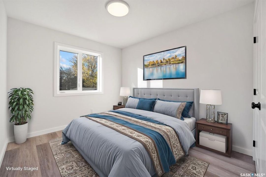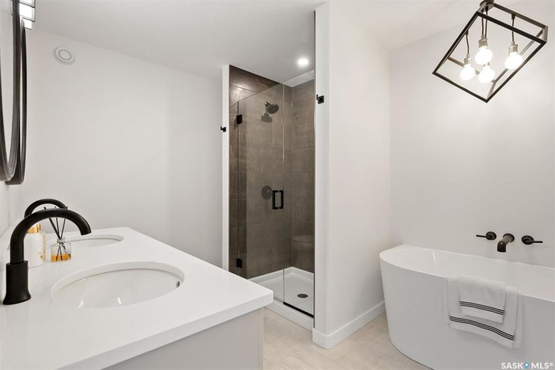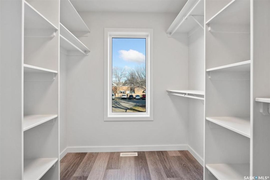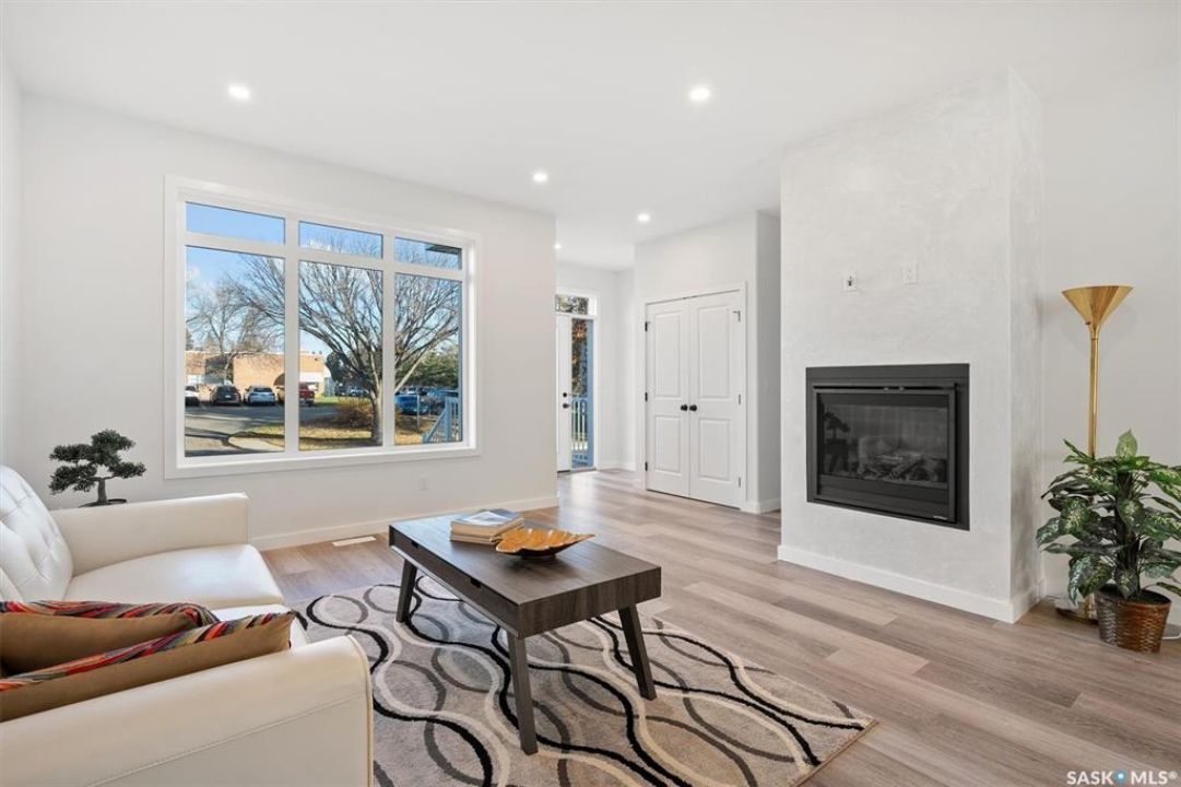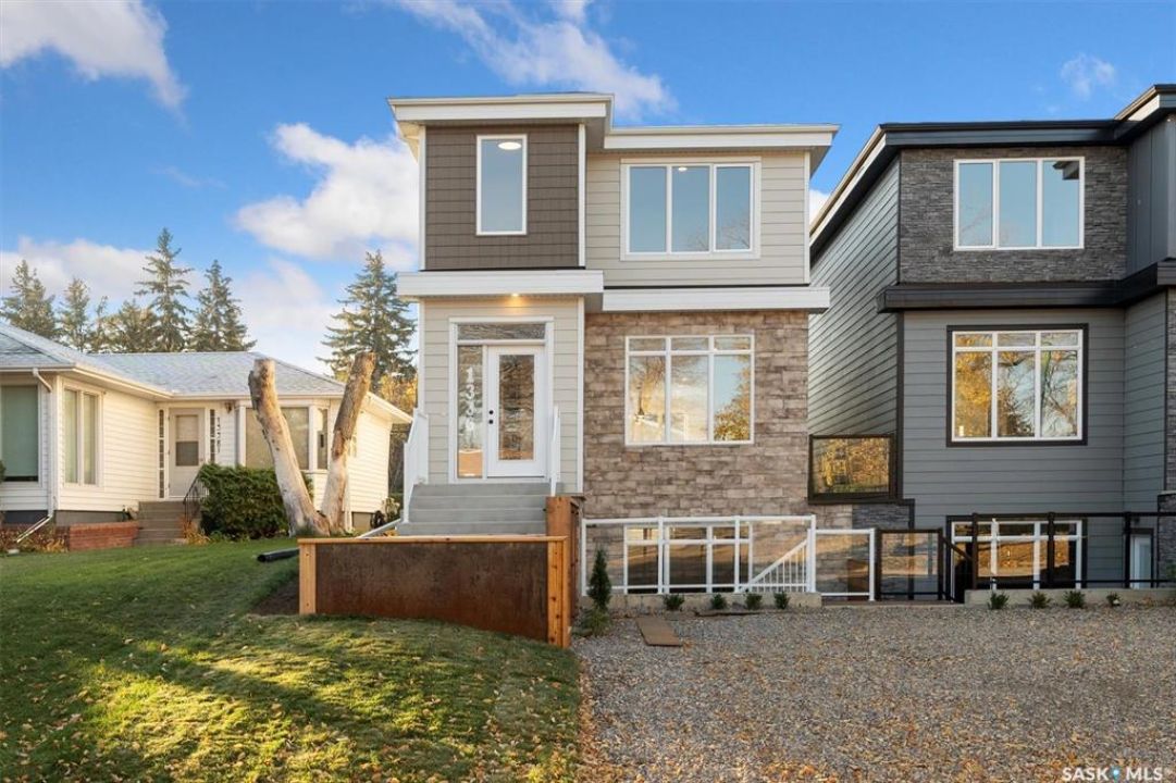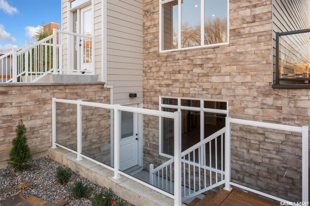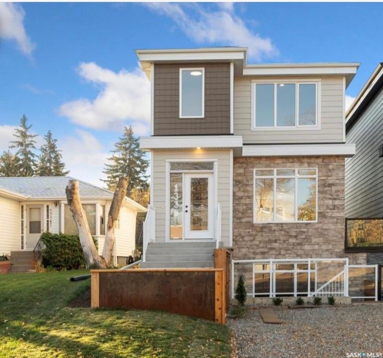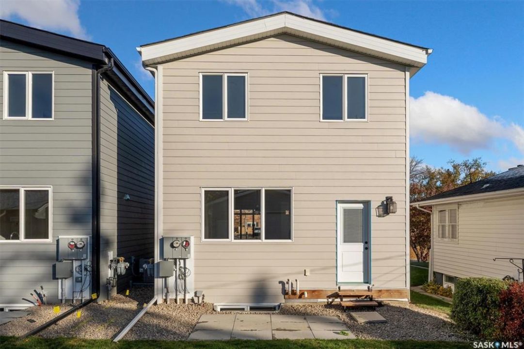 This free standing custom built 2 storey walkout home was built by Capilano Developments and is located in prime Varsity View. Given the unique opportunity of being within walking distance to the University of Saskatchewan the vision was to design a flexible plan appealing to professionals looking to be close to the hospital or University, & even students looking to get into the real estate market. The landscape of this street provided an opportunity to allow access to the basement from the front of the home, which is ideally set up for a suite, home based business, area for extended family visiting, or to use for your own enjoyment. With 1700 sqft on the 2 floors, the main level is spacious and offers a living room with feature gas fireplace with Venetian Plaster surround, dinging room, 2 tone staggered height kitchen cabinets with soft close features / tiled backsplash / garbage/recycle pullout, walk-in pantry, 2 Pc bathroom, and rear mud room with bench seating/storage. The second floor has 3 bedrooms, with the primary bedroom featuring vaulted ceilings, 5 Pc ensuite with soaker tub, walk-in tiled shower, dual sinks, and a walk-in closet. There are two more bedrooms with vaulted ceilings, 4 Pc bathroom, and walk-in laundry area with built-in cabinetry. The basement level is already set up with a secondary electrical panel, future kitchen and laundry rough-ins if a basement suite is of interest, Air B and B, Other features include: luxury waterproof laminate, quartz ctops, A/C, 20'x26' double detached garage with utility door access, majority of yard fenced, rear landscaping with underground sprinklers, front driveway for additional parking.
