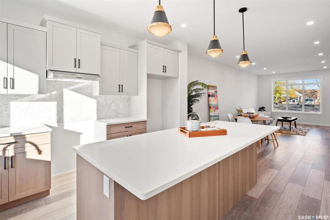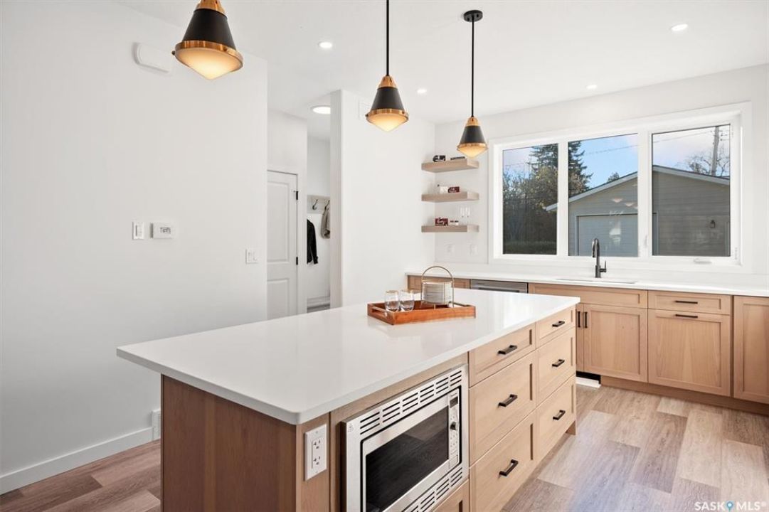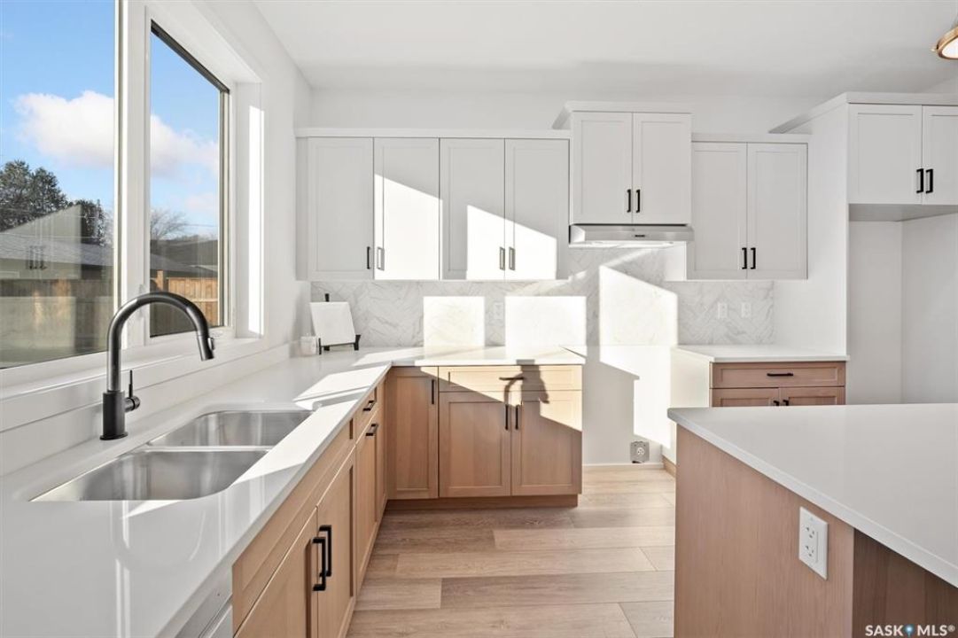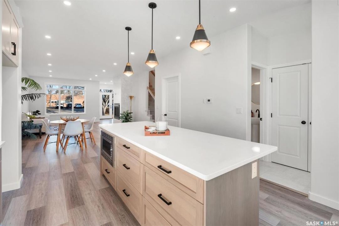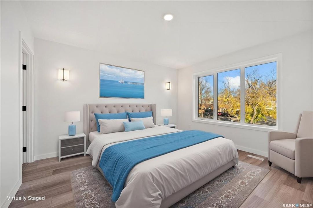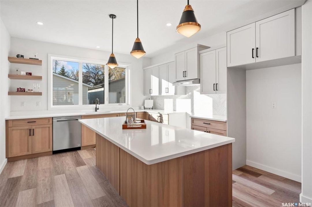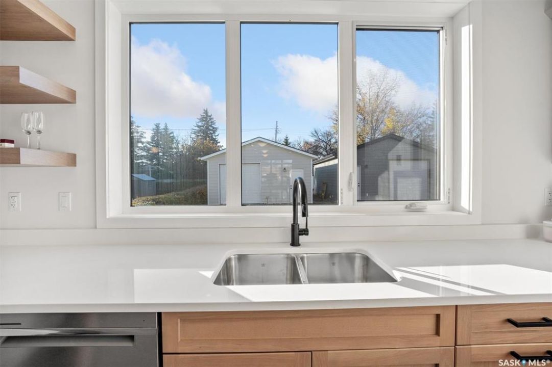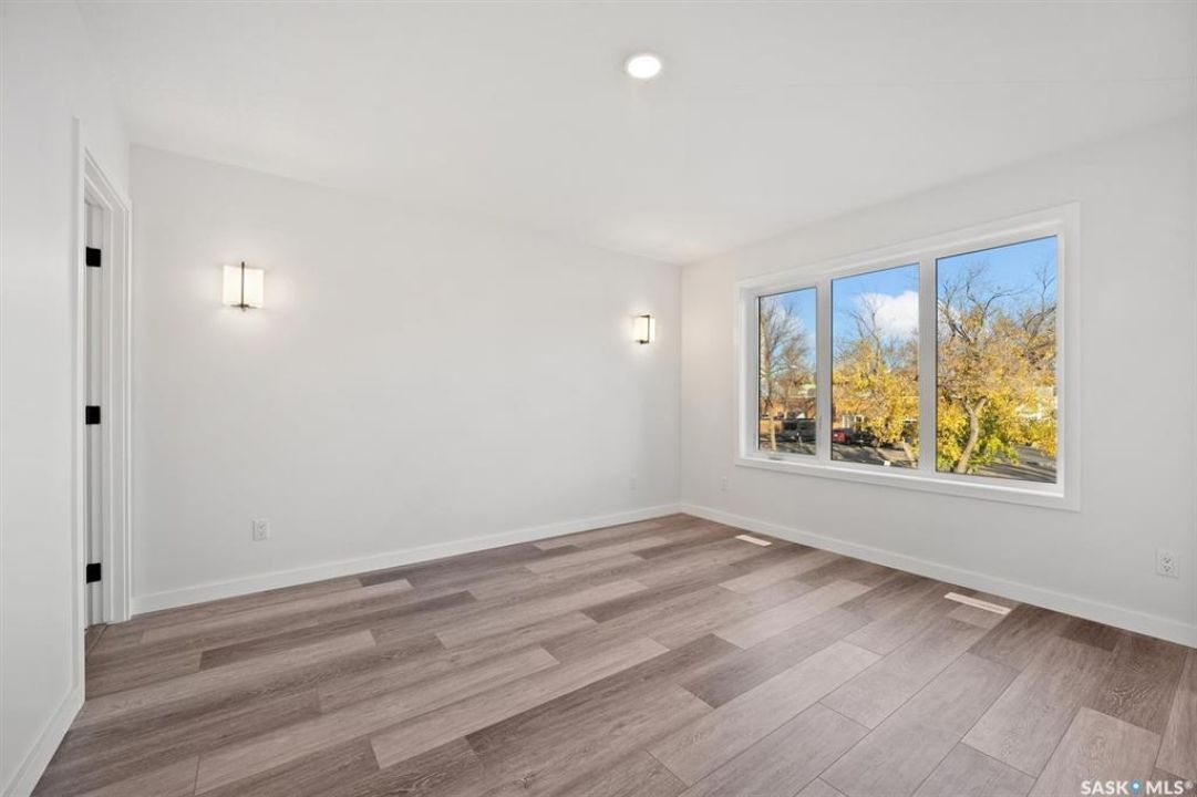 This free standing custom built 2 storey walkout home was built by Capilano Developments and is located in prime Varsity View. Given the unique opportunity of being within walking distance to the University of Saskatchewan the vision was to design a flexible plan appealing to professionals looking to be close to the hospital or University, & even students looking to get into the real estate market. The landscape of this street provided an opportunity to allow access to the basement from the front of the home, which is ideally set up for a suite, home based business, area for extended family visiting, or to use for your own enjoyment. With 1700 sqft on the 2 floors, the main level is spacious and offers a living room with feature gas fireplace with Venetian Plaster surround, dinging room, 2 tone staggered height kitchen cabinets with soft close features / tiled backsplash / garbage/recycle pullout, walk-in pantry, 2 Pc bathroom, and rear mud room with bench seating/storage. The second floor has 3 bedrooms, with the primary bedroom featuring vaulted ceilings, 5 Pc ensuite with soaker tub, walk-in tiled shower, dual sinks, and a walk-in closet. There are two more bedrooms with vaulted ceilings, 4 Pc bathroom, and walk-in laundry area with built-in cabinetry. The basement level is already set up with a secondary electrical panel, future kitchen and laundry rough-ins if a basement suite is of interest, Air B and B, Other features include: luxury waterproof laminate, quartz ctops, A/C, 20'x26' double detached garage with utility door access, majority of yard fenced, rear landscaping with underground sprinklers, front driveway for additional parking.