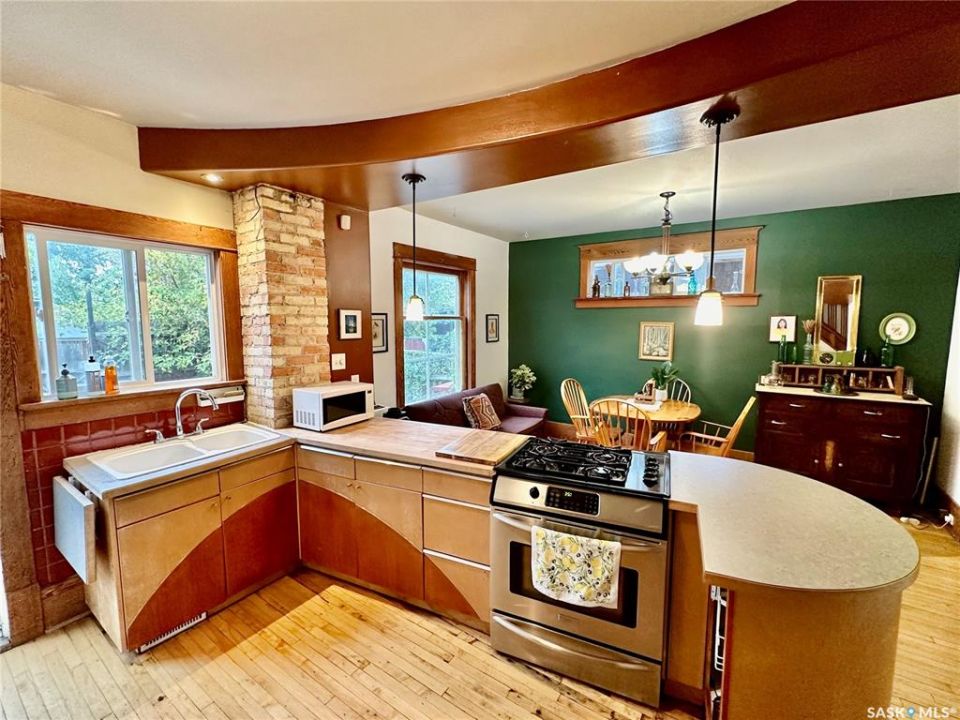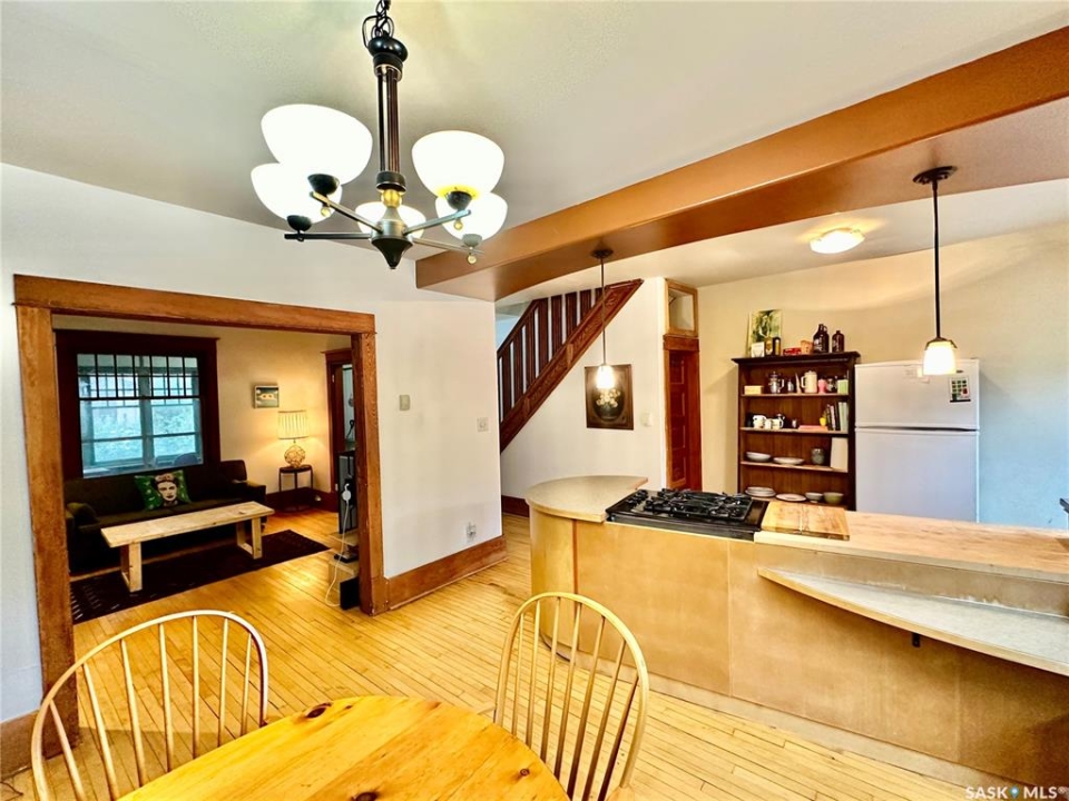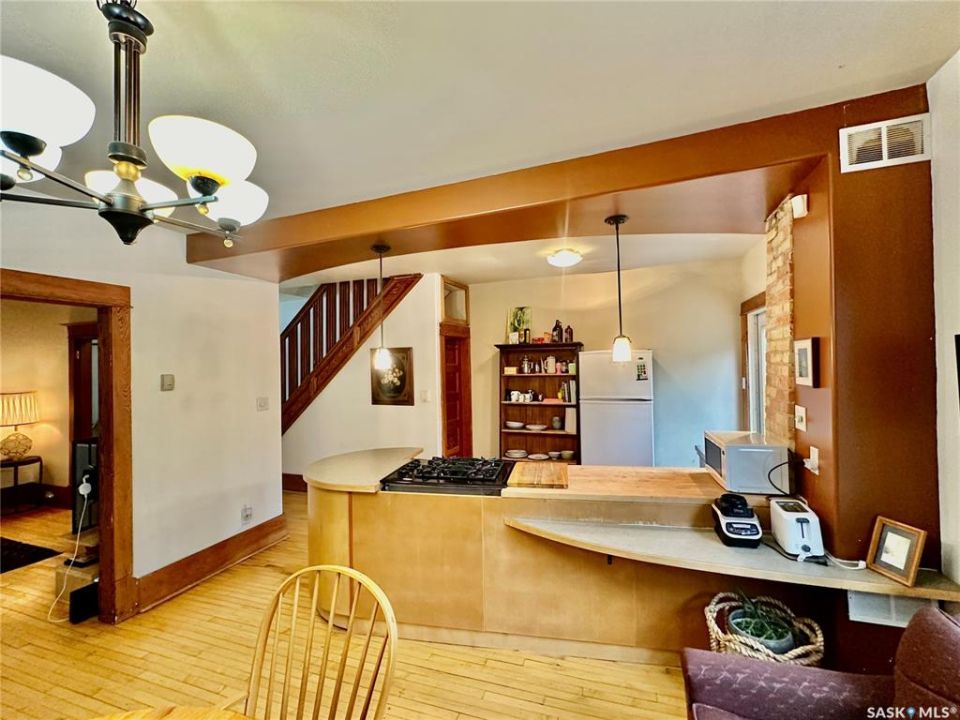Welcome to this charming 2 story in this up and coming neighbourhood just a close walk to college avenue beside Miller and Balfour. This home boasts beautiful original wood work all through out as well as original hardwood and is laid out very functional. The living room is a good size with a wood burning fireplace. kitchen has newer appliances and is bright and open to the spacious dinning room. The upstairs has a 4 piece bath and two bedrooms. The master has been converted from 2 bedrooms to make a massive bedroom that can be converted back into a third bedroom. The basement has a 3 piece bath and the rest is open for development. This home has so much character and is truly a gem call sales person for more information or your private tour.