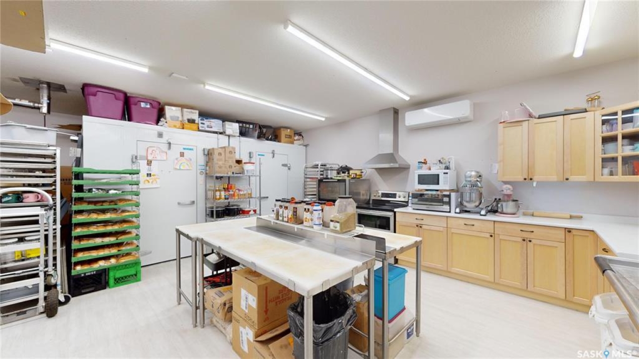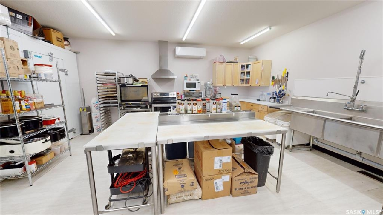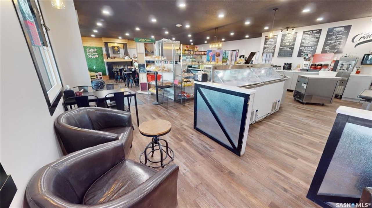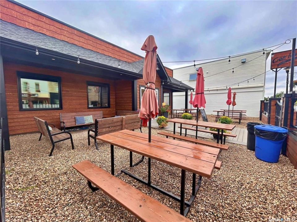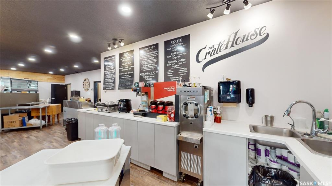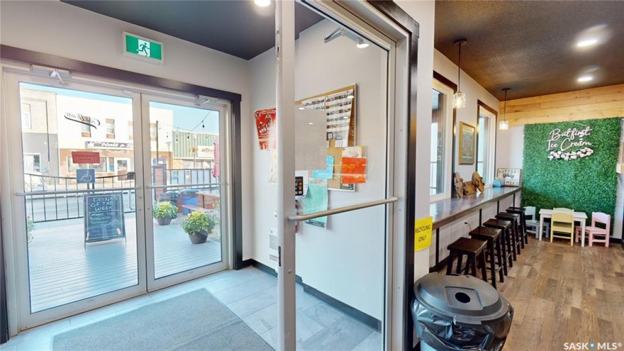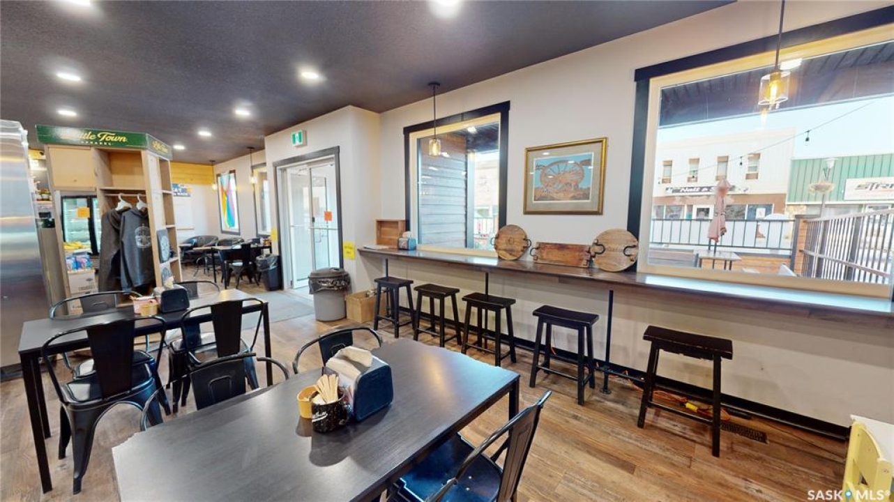 BUILDING FOR SALE: ENDLESS OPPORTUNITIES WITH THIS ONE!! — BUILT IN 2019 with 2364 SQFT — great space for a bakery, restaurant or a pub/bar, and with its excellent patio space, it offers plenty of potential for outdoor dining! Also a great opportunity for retail space (front-approx 1500 SQFT). here's your opportunity to own a next-to-new building in the heart of downtown Moosomin; a vastly GROWING community on the #1 highway in SE SASK servicing over 30,000+ people in the surrounding area! This 2364 SQFT commercial property has become a beloved fixture in the community, currently offering ice cream, deli items, delicious daily specials, baked goods, fruits, vegetables, and fresh meat. This modern building (wheelchair accessible) features a bright storefront, good sized kitchen, office space, a wheelchair-accessible washroom (plus employee washroom+laundry), on-site staff parking, and a lovely outdoor patio with ample seating! As the current owners look forward to retirement, they're also offering this turn-key operation to a new owner who can continue its success -- the CRATEHOUSE business is also for sale (MLS ® SK013391-->includes the building, land, inventory, and equipment.) With a recent multi-million dollar expansion to our airport, many new commercial/industrial developments, a new 90-spot daycare opening, and our excellent health care facilities, Moosomin is the place to be!