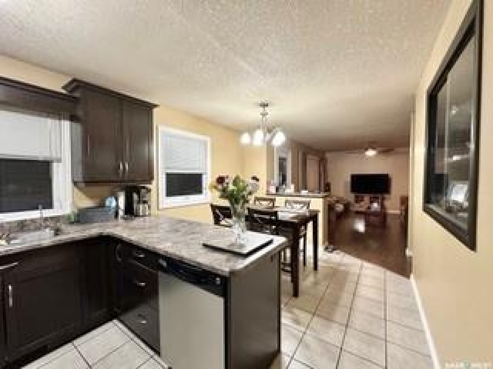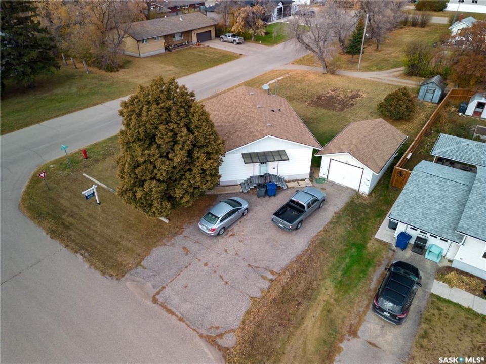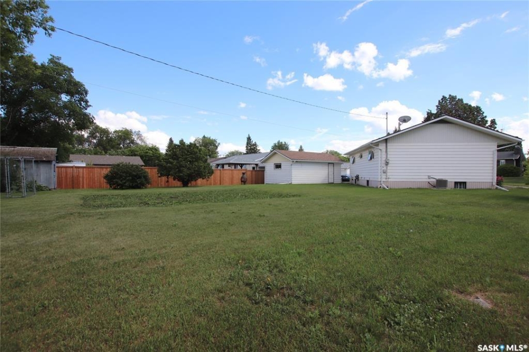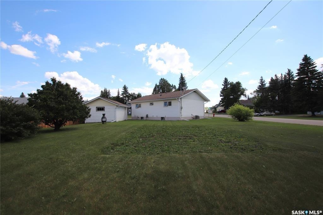 Affordable small town living with all the big-ticket items done for you. Sitting on a triple lot with south west views this lovely 900 square foot home offers many updates. Pride of ownership shines through! Beautiful updated kitchen with custom espresso maple cabinetry. Contrasting laminate countertops with deep dual stainless-steel sink. Handy pull-out towel bars, tip-out trays and lazy Susan. 4 stainless steel appliances will remain. Good-sized eating area with a half wall separation to the living room. Main hall has two bedrooms and a full updated bathroom. Deep soaker tub, ceramic tile surround, espresso maple vanity and white sink. Lower level has tall ceilings with lots of room to develop a family room and bedroom. 2-piece bathroom with room to install a shower. Spacious laundry room. Notice all the updated electrical, plumbing and heating! Huge yard has so many possibilities. Raymore is located approximately 1 hour north of Regina on a well-maintained highway with most amenities in town. Some amenities include: K-12 schools, gas stations, grocery store, hotel, hair salon, pet grooming, pharmacy, lumber/hardware store, liquor store, library, community water park/pool with new mini golf and restaurants. Jansen potash mine is only 20 minutes away.