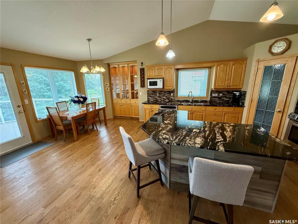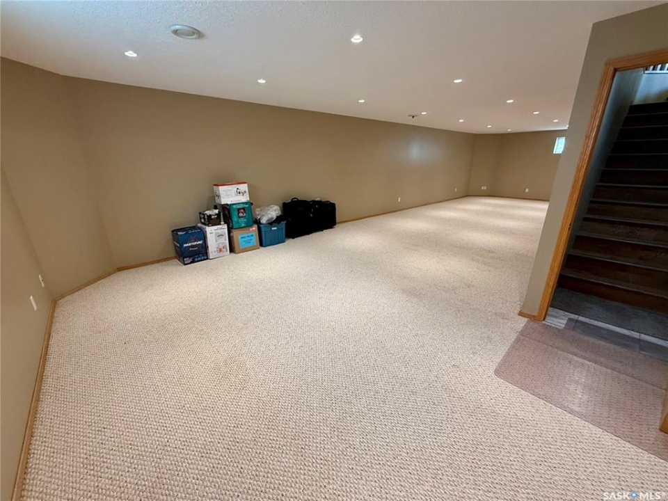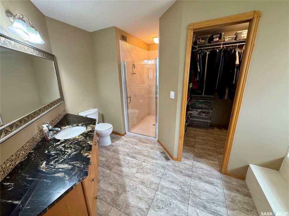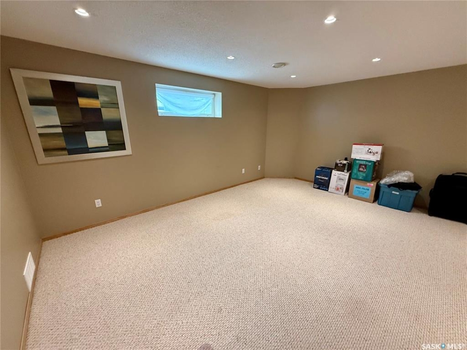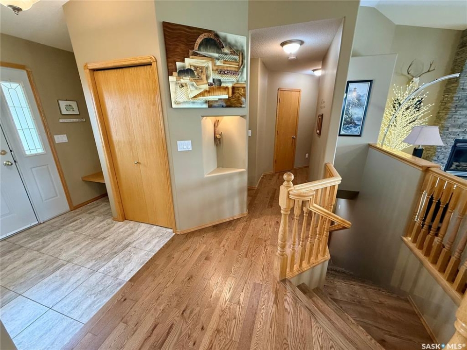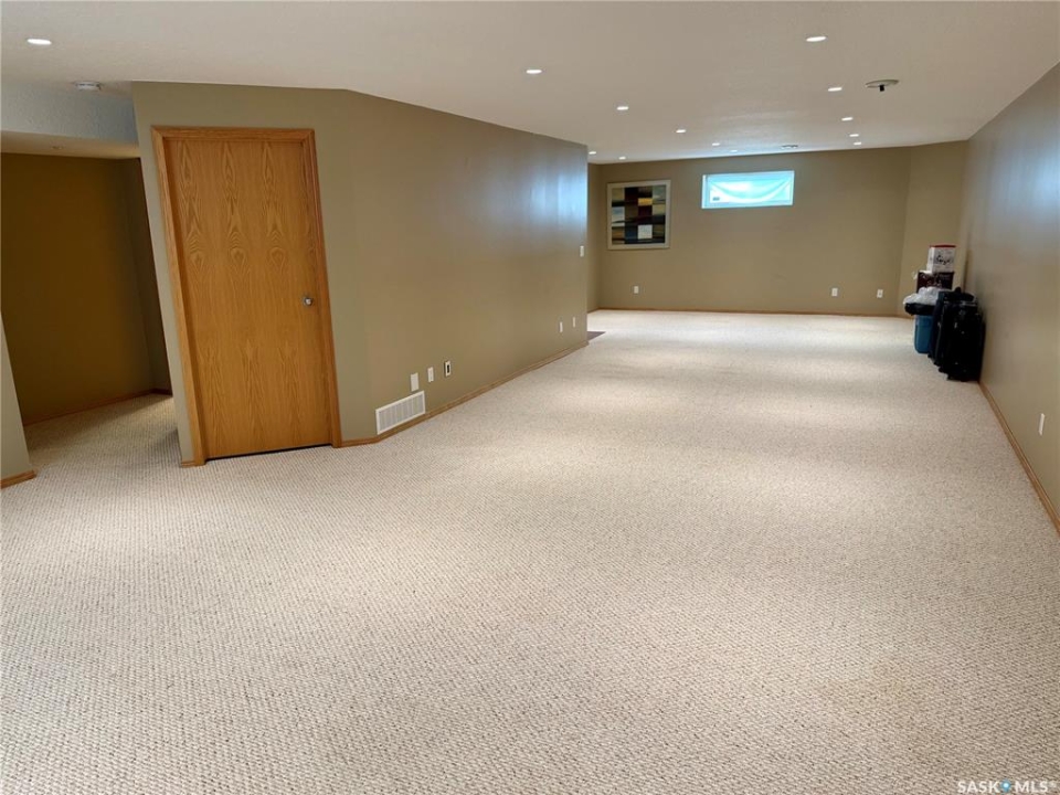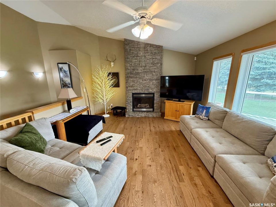 Excellent bungalow with a great location in Emerald Park, backing the 11th hole of the golf course and green space. This home has been very well kept with the main floor featuring nice open floor plan. Beautiful engineered hard wood floors run throughout the oak kitchen with center island, corner pantry, with granite counter tops, dining area, living room with gas fireplace, all bedrooms/den, and hallways. The large master bedroom has a huge ensuite with a walk-in shower, soaker tub, bathroom vanity, and a handy walk-in closet right in the ensuite. 2nd bedroom is a good size, and there is also a den, which does have a closet so could be used as a 3rd bedroom. The main floor does feature another 4-piece bath, a handy laundry room which leads to the double attached garage, and good-sized front foyer complete the main floor. The basement is finished with a large rec room, another bedroom, a 3-piece bath, and a large utility/storage area. Off the dining room, there is a garden door which leads to a large deck with extra storage bins under the deck, a patio area, and a great view of the golf course. The double attached 24'x24' garage has 2 over head doors, and is insulated and drywalled, could easily be heated. This property is not a condo, it does have a Home Owners Agreement in place for all lawn maintenance, underground sprinklers (sprinklers are on well water, so no cost to the home), and snow removal which costs $200.00 per month. Great location, close to all the amenities that Emerald park has to offer. Call your realtor today to schedule a showing.