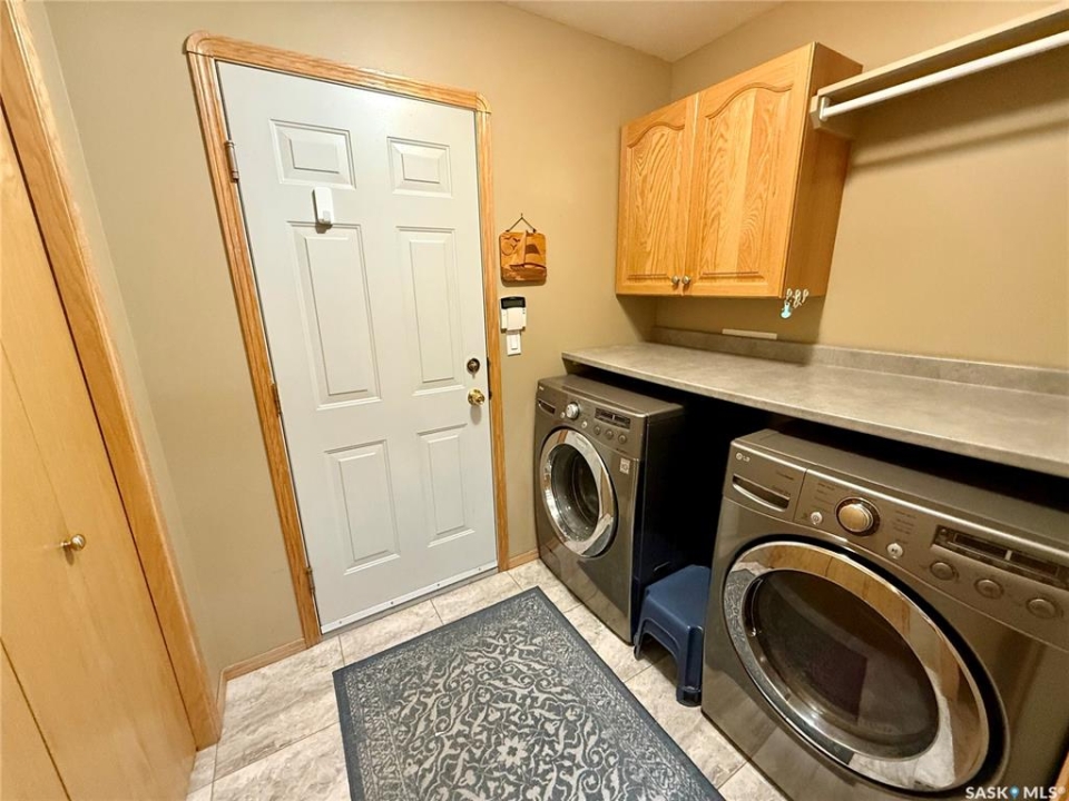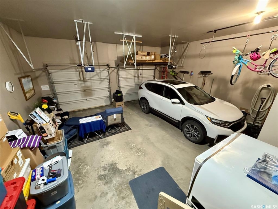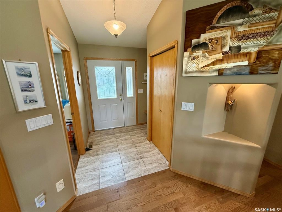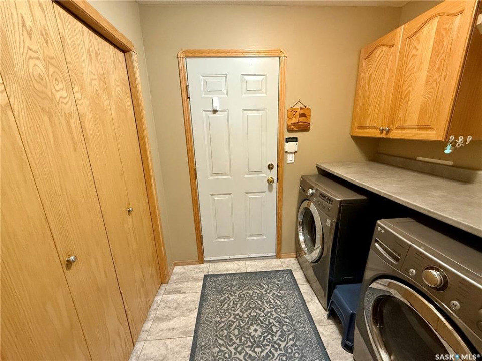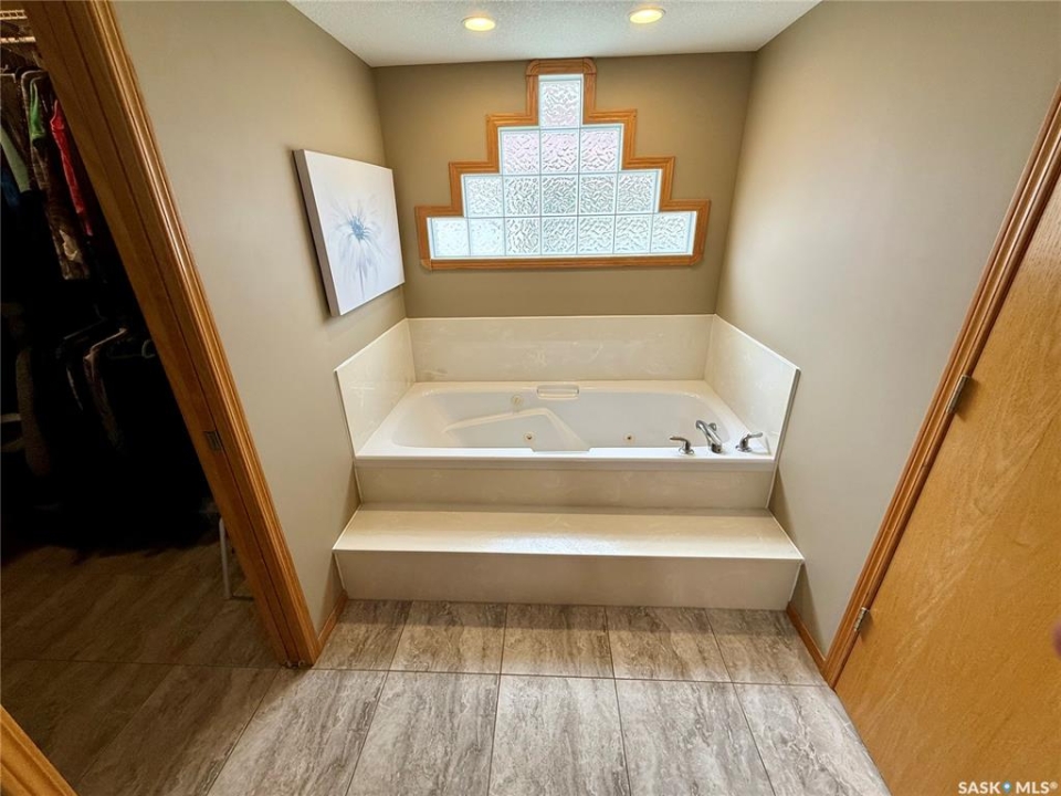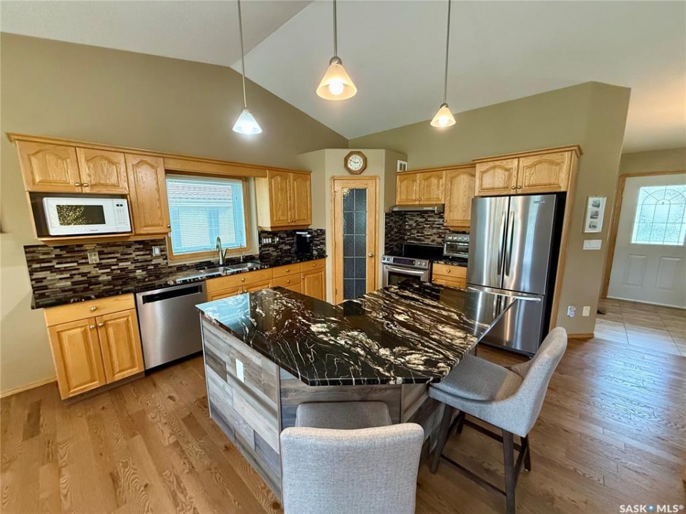 Excellent bungalow with a great location in Emerald Park, backing the 11th hole of the golf course and green space. This home has been very well kept with the main floor featuring nice open floor plan. Beautiful engineered hard wood floors run throughout the oak kitchen with center island, corner pantry, with granite counter tops, dining area, living room with gas fireplace, all bedrooms/den, and hallways. The large master bedroom has a huge ensuite with a walk-in shower, soaker tub, bathroom vanity, and a handy walk-in closet right in the ensuite. 2nd bedroom is a good size, and there is also a den, which does have a closet so could be used as a 3rd bedroom. The main floor does feature another 4-piece bath, a handy laundry room which leads to the double attached garage, and good-sized front foyer complete the main floor. The basement is finished with a large rec room, another bedroom, a 3-piece bath, and a large utility/storage area. Off the dining room, there is a garden door which leads to a large deck with extra storage bins under the deck, a patio area, and a great view of the golf course. The double attached 24'x24' garage has 2 over head doors, and is insulated and drywalled, could easily be heated. This property is not a condo, it does have a Home Owners Agreement in place for all lawn maintenance, underground sprinklers (sprinklers are on well water, so no cost to the home), and snow removal which costs $200.00 per month. Great location, close to all the amenities that Emerald park has to offer. Call your realtor today to schedule a showing.