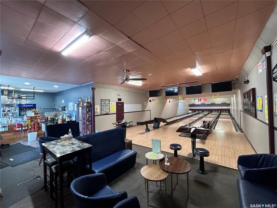 Excellent Business Opportunity in Rosthern! This Bowling Alley/Golf Simulator is the perfect business for the Golf Enthusiast. Complete with a two bedroom living quarters upstairs, this property has it all. In the last several years the bowling lanes have had new flooring, commercial kitchen has been updated, as well as the golf simulator been added. This is a great chance to run your own business in the friendly town of Rosthern. This property is also available for lease.