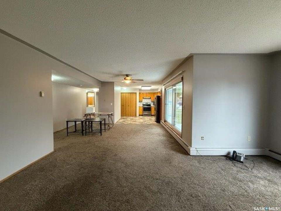 Great price on the 1176 sqft condo located just a block from downtown. Open concept condo that has been well maintained. Foyer has a nice size closet. The kitchen has plenty of storage and updated appliances and dining area. There is a a laundry closet with updated washer and dryer. The formal dining room has patio doors to the balcony that overlooks the outside common patio and flowerbed area. The living room is a nice size and has portable air conditioner. The bedroom is a great size with double closets and has a 3-piece ensuite. There is a den/office and a storage room with room for a freezer completes the condo. There is a large common room located in the basement for family gatherings, includes a wet bar, 1.2 bath and door to access the outside patio area. Each unit has one underground heated parking stall with storage in front of the bay. There is also lockable storage cage located in the basement of the building. Give us a call to book your tour.