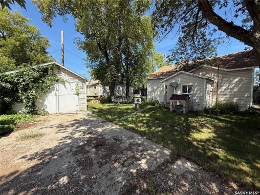 Great starter home or retirement property! This home offers charm and afforability. When you walk into the property you will come into the foyer. Just off the foyer is the galley style kitchen that opens up to the dining room & living room. These rooms have been updated. There are 2 main floor bedrooms and a 4 piece bathroom/laundry room. Upstairs offers a large bedroom, den and bonus room that you could make into sitting space or games area. The outside has a single detached garage. The home is on a corner lot right across from the local school. There is a mature treed in shelter belt and the yard is very private. Updates to the home include: new water heated in 2019, shingles in 2014, windows & siding in 2009.