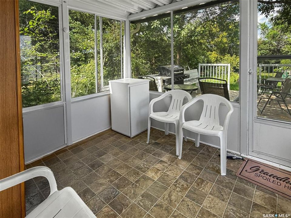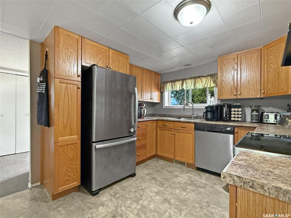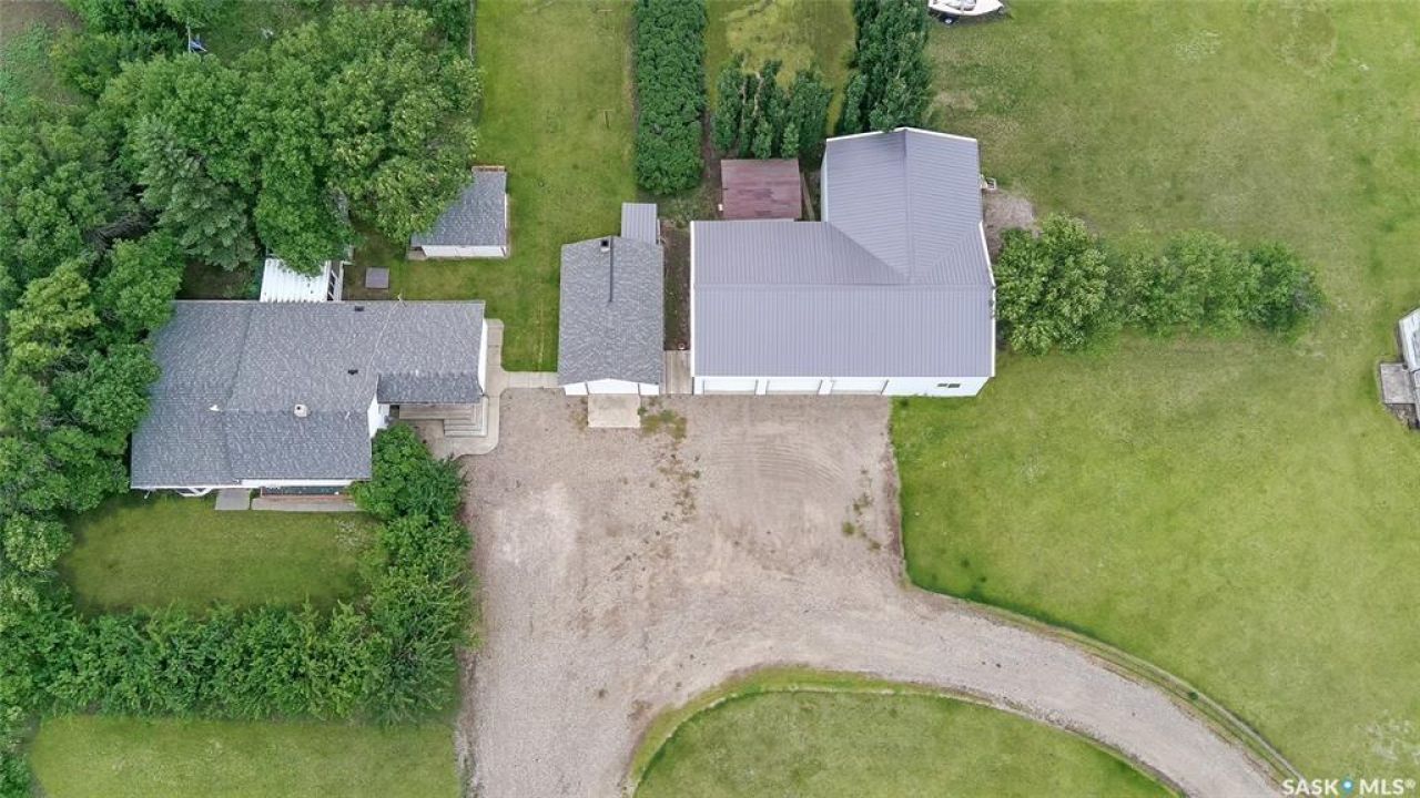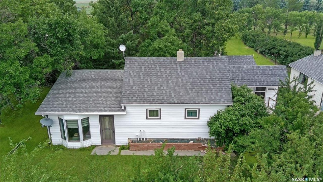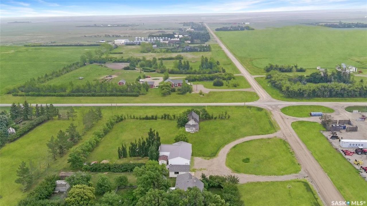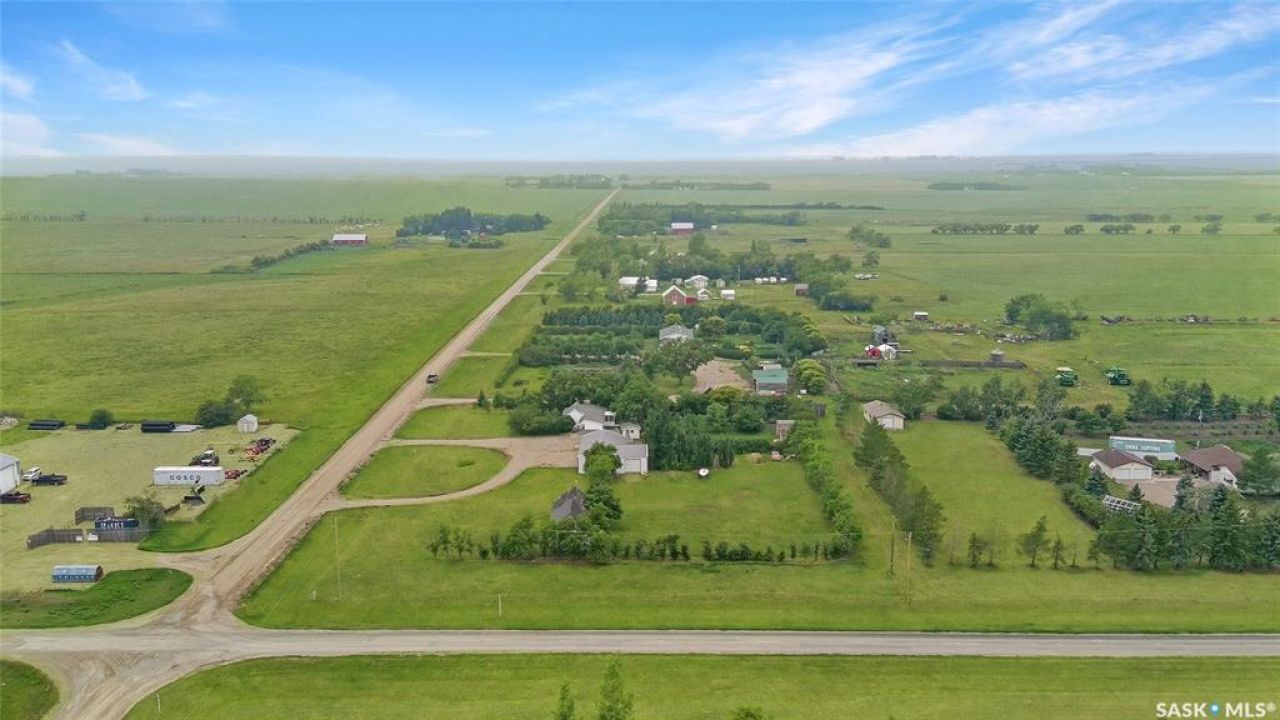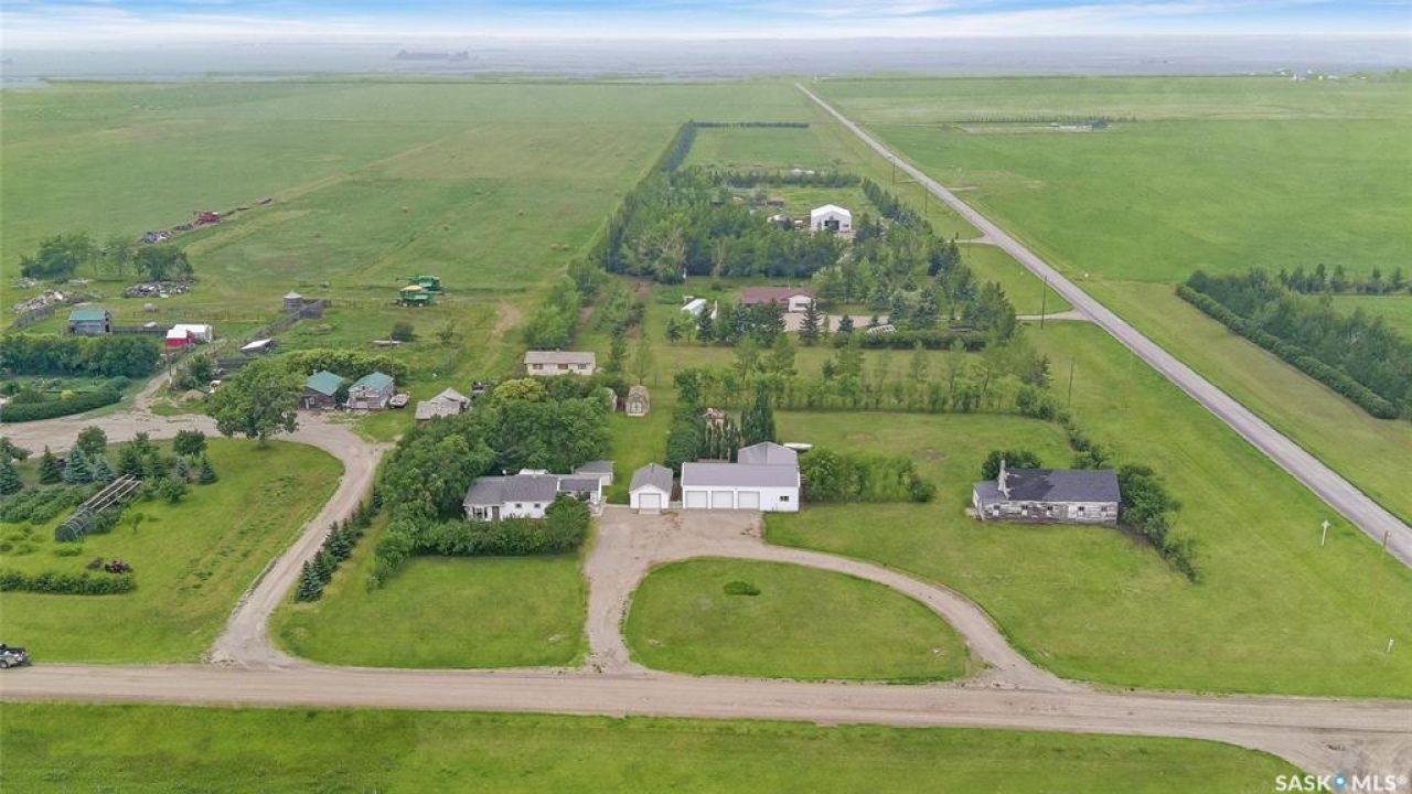 Discover your perfect retreat on this meticulously maintained 2.32-acre agriculturally zoned lot, located just 20 minutes southeast of the city. Owned by the same individuals for 34 years, this charming property offers a unique blend of character and functionality. Upon entering, you are welcomed by a spacious boot room with laundry facilities. Adjacent the U-shaped oak kitchen, updated in 2009, features stainless steel appliances, ample cabinetry, and generous workspace. The adjoining dining area boasts patio doors leading to an enclosed sunroom, providing lovely views of the landscaped backyard. Down the hall find a renovated 4 piece bathroom and two inviting bedrooms. An addition from 1986 highlights a sun-drenched sunken living room and a large master bedroom. The basement offers additional space, including a family room, den, three-piece bathroom, root cellar, and updated utility area. Recent updates include 2021 water heater and furnace along with central air conditioning and a 100 amp electrical panel. This property features 5-car garage spaces , with an oversized shop built in 2010 that includes four automatic garage doors—three at the front and one at the back, ideal for workshop use. Boating 10-foot ceilings, a gravel floor tin roof and walls. Additionally, there is a heated and insulated single-car garage, known as the "butcher shop," complete with a smoker shed off the rear. The expansive yard is surrounded by a mature shelterbelt, adorned with various trees and shrubs, including ash trees, raspberry bushes, Saskatoon berries, and rhubarb. A large garden tucked within its own shelterbelt promotes self-sufficiency. The sunroom leads to a deck overlooking the lush yard, enhanced with underground sprinklers in this section for year-round vibrancy. This property truly represents a remarkable piece of paradise, ready to be enjoyed. Call today to view or request more information