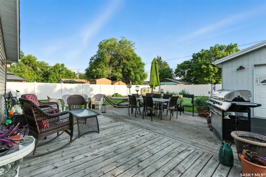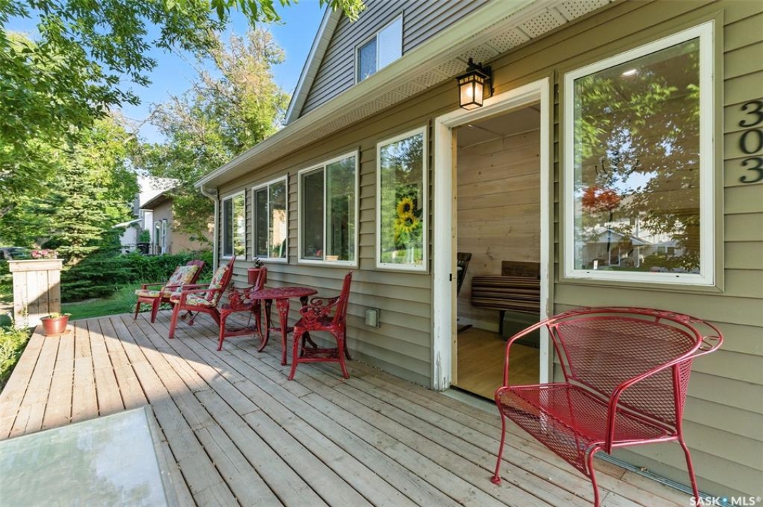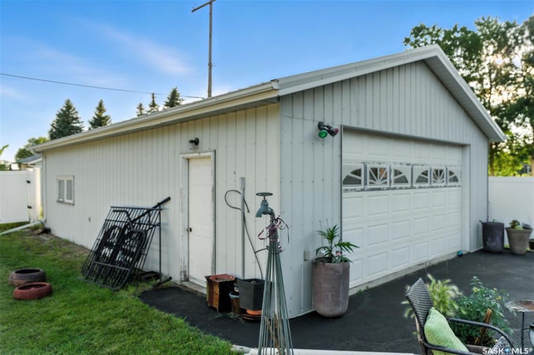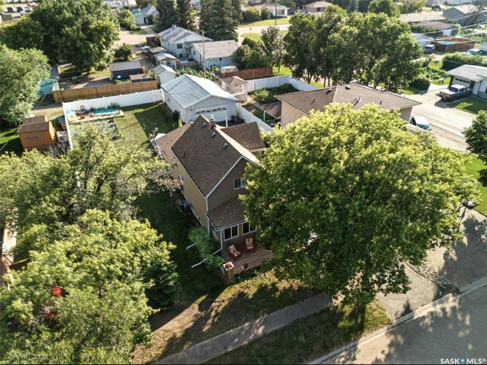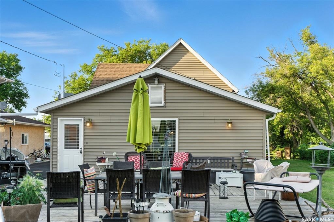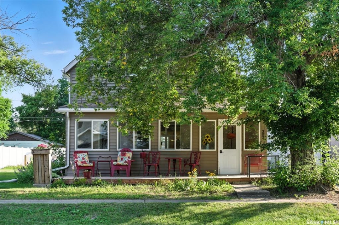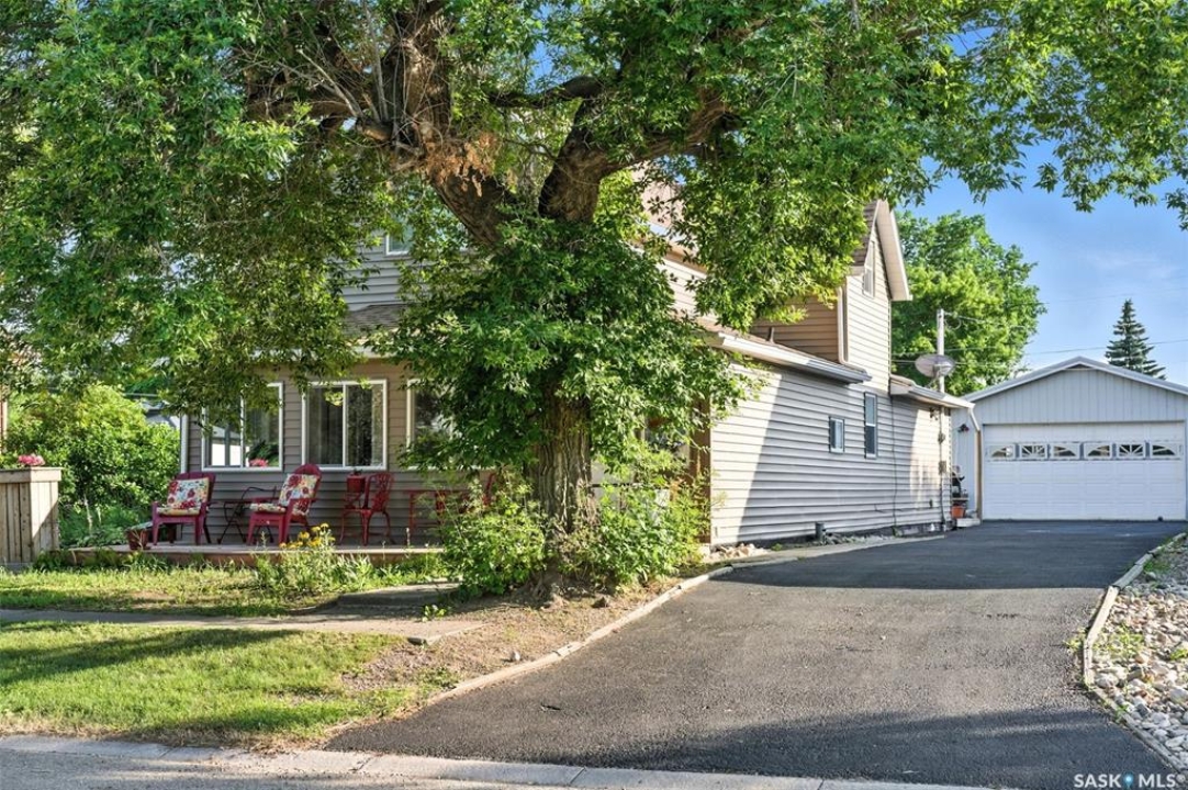 Located on a charming tree lined street in the busy town of Watrous, this could bee the perfect home for you! One of the first 4 houses built in Watrous, this home was added onto in 1980 and has since had extensive interior renovations, .As you pull into the paved driveway, you'll picture yourself enjoying the shady deck off the 3 season front porch. There is also a south facing deck off the kitchen perfect for relaxing or entertaining. As you step in the back door, you'll love the huge kitchen with corner pantry and huge island. Dining area is perfect for family dinners or hanging out. A huge main floor bathroom has separate shower and tub, just off an office space which also accesses the main floor laundry room. A spacious living room with tons of built in storage completes the main floor. Upstairs will be your private space with 3 bedrooms and another full bathroom. Partial basement is currently unfinished. Outside the huge yard has garden space, sandbox, lawn, and is partially fenced. The double detached garage is fully insulated and has tons of room for vehicles plus workspace or toy storage. Call today for your viewing appointment!
