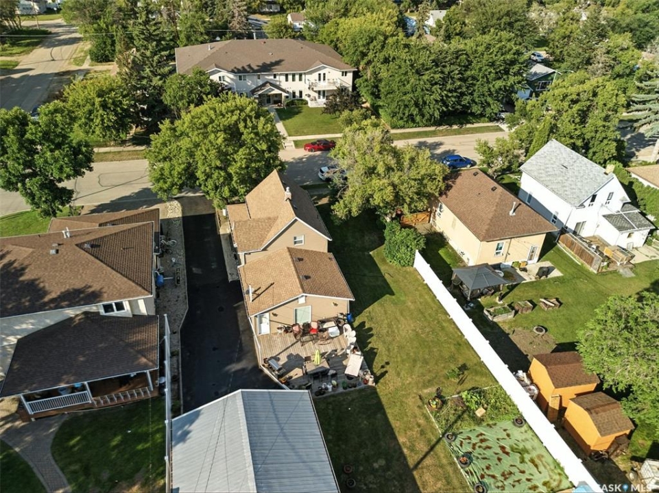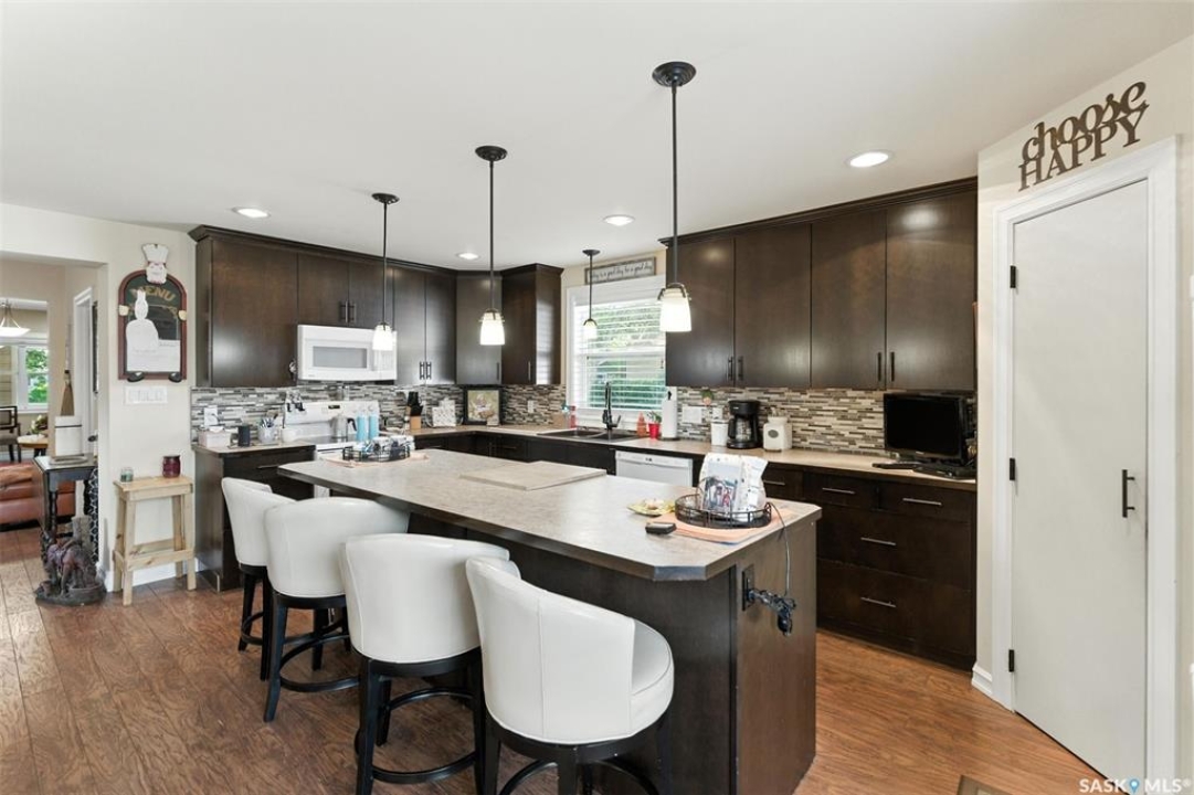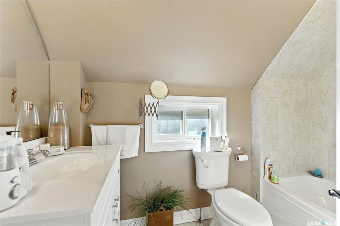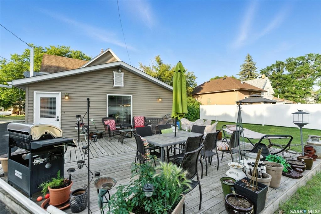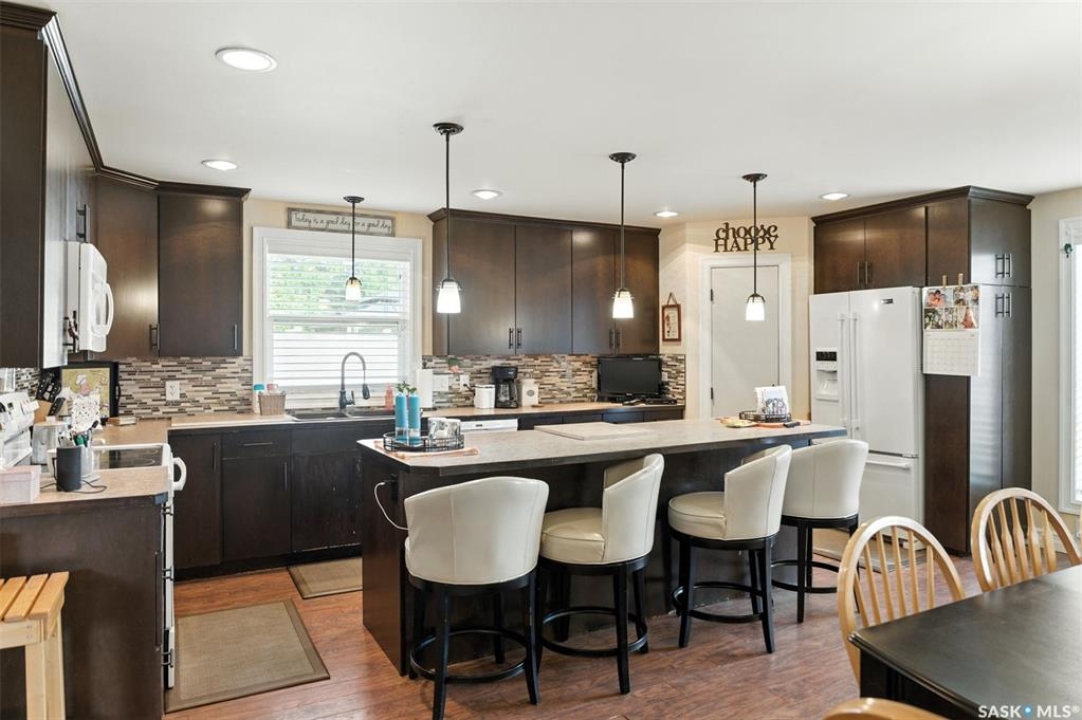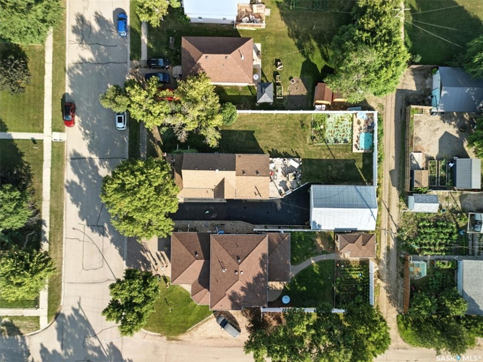 Located on a charming tree lined street in the busy town of Watrous, this could bee the perfect home for you! One of the first 4 houses built in Watrous, this home was added onto in 1980 and has since had extensive interior renovations, .As you pull into the paved driveway, you'll picture yourself enjoying the shady deck off the 3 season front porch. There is also a south facing deck off the kitchen perfect for relaxing or entertaining. As you step in the back door, you'll love the huge kitchen with corner pantry and huge island. Dining area is perfect for family dinners or hanging out. A huge main floor bathroom has separate shower and tub, just off an office space which also accesses the main floor laundry room. A spacious living room with tons of built in storage completes the main floor. Upstairs will be your private space with 3 bedrooms and another full bathroom. Partial basement is currently unfinished. Outside the huge yard has garden space, sandbox, lawn, and is partially fenced. The double detached garage is fully insulated and has tons of room for vehicles plus workspace or toy storage. Call today for your viewing appointment!