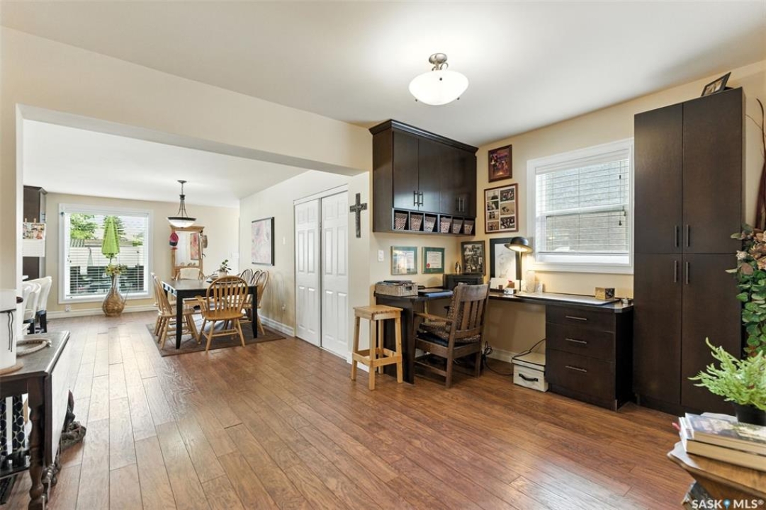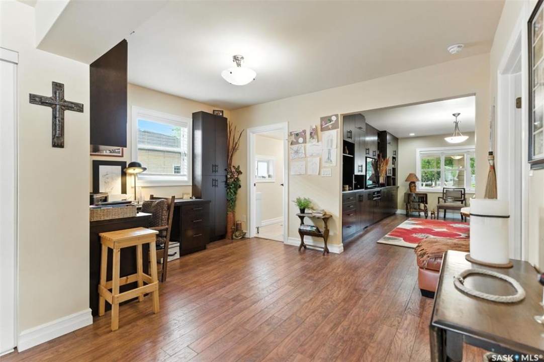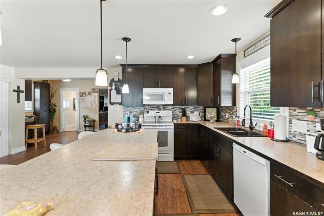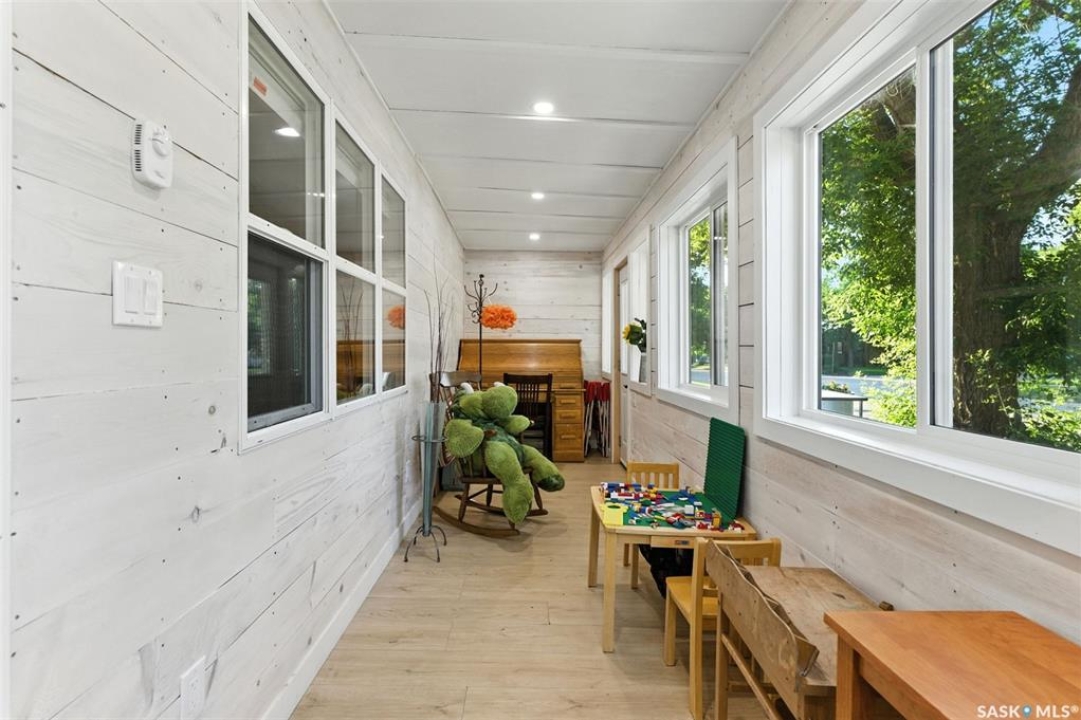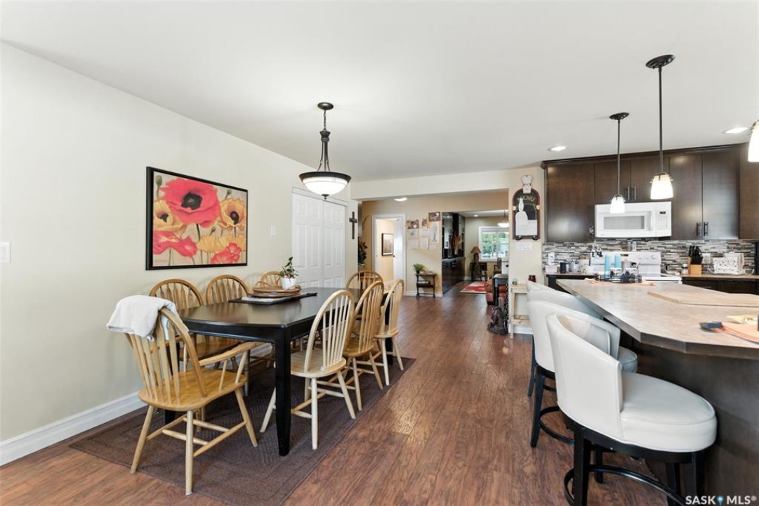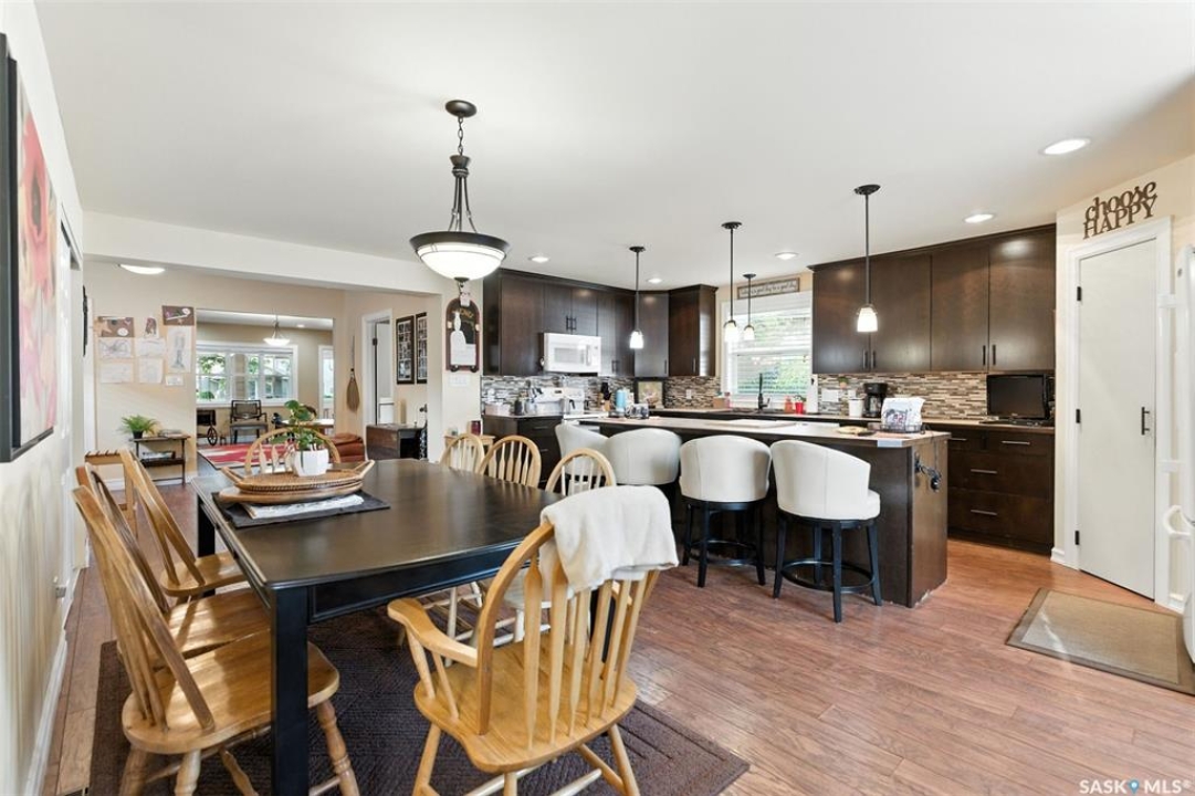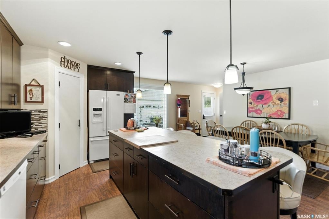 Located on a charming tree lined street in the busy town of Watrous, this could bee the perfect home for you! One of the first 4 houses built in Watrous, this home was added onto in 1980 and has since had extensive interior renovations, .As you pull into the paved driveway, you'll picture yourself enjoying the shady deck off the 3 season front porch. There is also a south facing deck off the kitchen perfect for relaxing or entertaining. As you step in the back door, you'll love the huge kitchen with corner pantry and huge island. Dining area is perfect for family dinners or hanging out. A huge main floor bathroom has separate shower and tub, just off an office space which also accesses the main floor laundry room. A spacious living room with tons of built in storage completes the main floor. Upstairs will be your private space with 3 bedrooms and another full bathroom. Partial basement is currently unfinished. Outside the huge yard has garden space, sandbox, lawn, and is partially fenced. The double detached garage is fully insulated and has tons of room for vehicles plus workspace or toy storage. Call today for your viewing appointment!