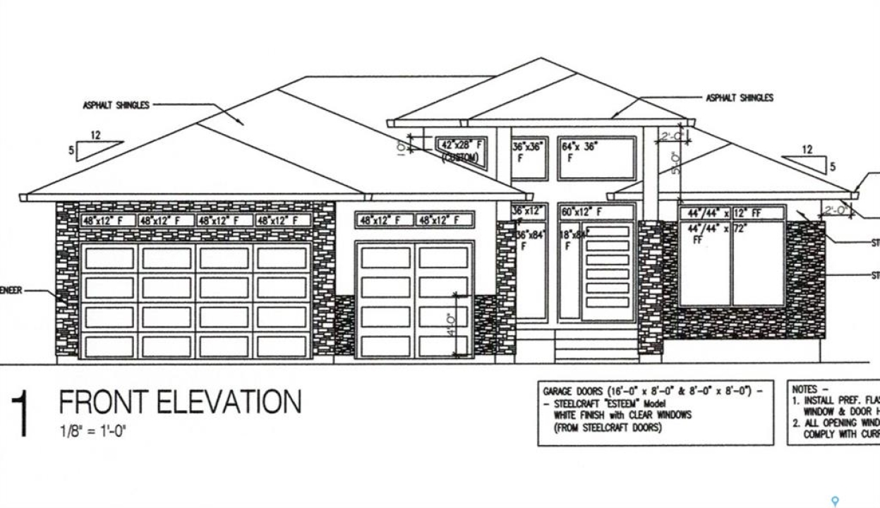 Stunning luxury walk-out raised bungalow! Finished basement (5 bed + 4.5 baths total). This home is situated on an oversized lot backing the lake. You're close to schools, parks, Legends Sports Complex, golf course & other amenities. Many glamorous finishings & upgrades. 1,927 sqft above grade, spacious open concept and an abundance of natural light with many north facing windows (amazing view of the lake from the main level and from both back decks!). Separate entrance into the private home office (could also be bedroom). Notable upgrades include black window package, custom finishings, 14' high ceilings in living room, quartz countertops throughout, heated flooring (up/down & in garage), triple car garage, A/C, & gas fireplace. Step out of your walk-out basement onto a private patio area under the deck. Enter direct from the garage into the mudroom/laundry area which then leads into the walk-through kitchen pantry. Thoughtful floor plan that's different & refreshing. You'll love the en-suite off the primary bedroom w/ double sinks, shower, steam shower & massive walk-in closet. Huge primary bedroom that leads onto second private balcony! Top of the line custom kitchen by Superior Cabinets w/ tile backsplash, soft close doors, garbage pull-out cabinet, Lazy Susan and a ton of storage room. Patio door off the kitchen leads you onto a North facing back deck with elegant glass railing (no stairs). Quality home builder who is meticulous with finishing work and adds plenty of extra's that a seasoned home buyer will notice & appreciate. No corners cut. Magnificent street appeal among other beautiful neighbouring properties. Builder will do additional work for cost (basement, fence, etc..) New Home Warranty & developer has professional membership w/ Saskatchewan Home Builder Association (certified professional home builder). GST included in purchase price/ rebate back to builder. Updated photo's of inside to come when it's complete. Contact today for a private viewing.