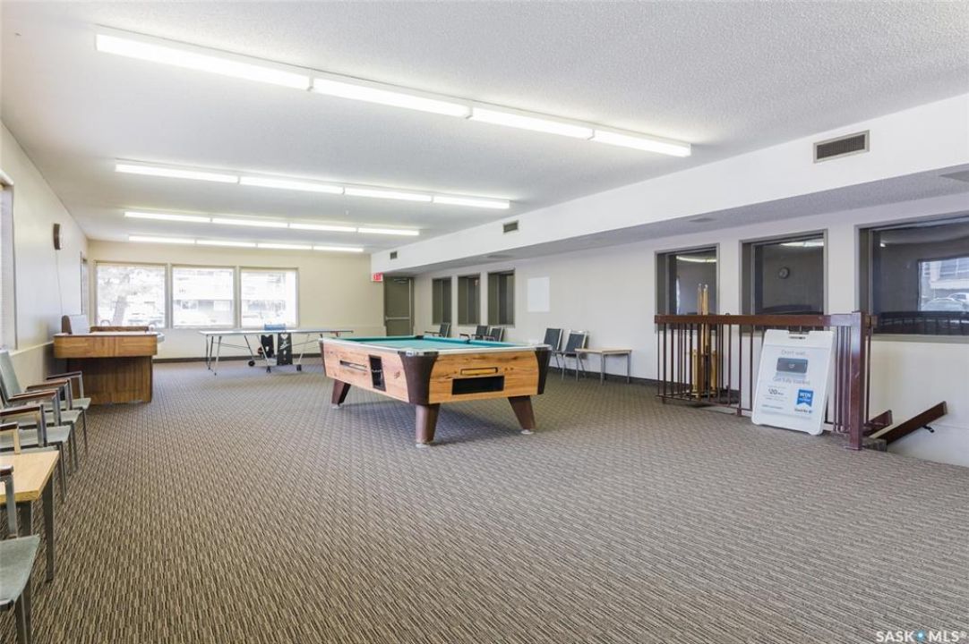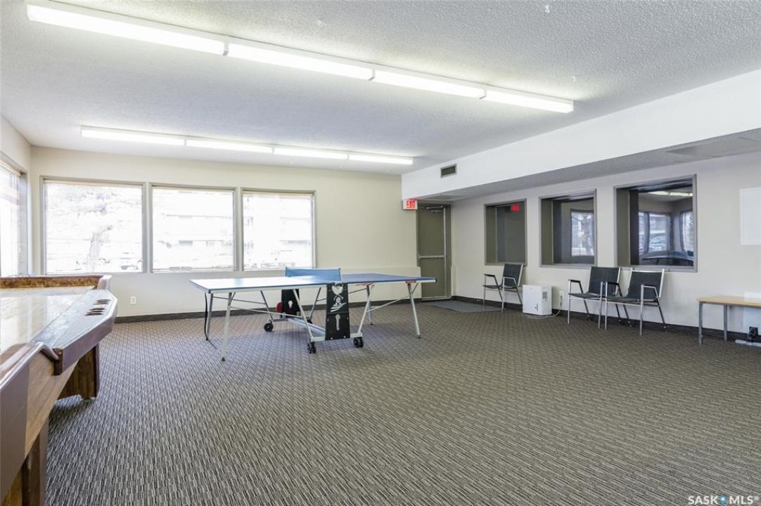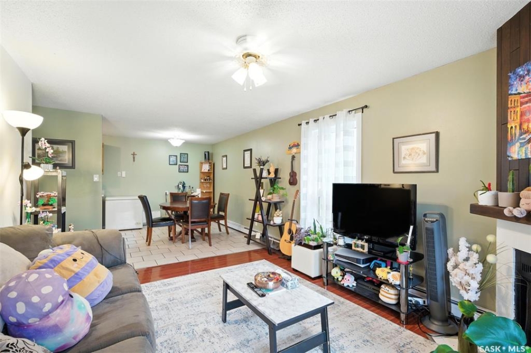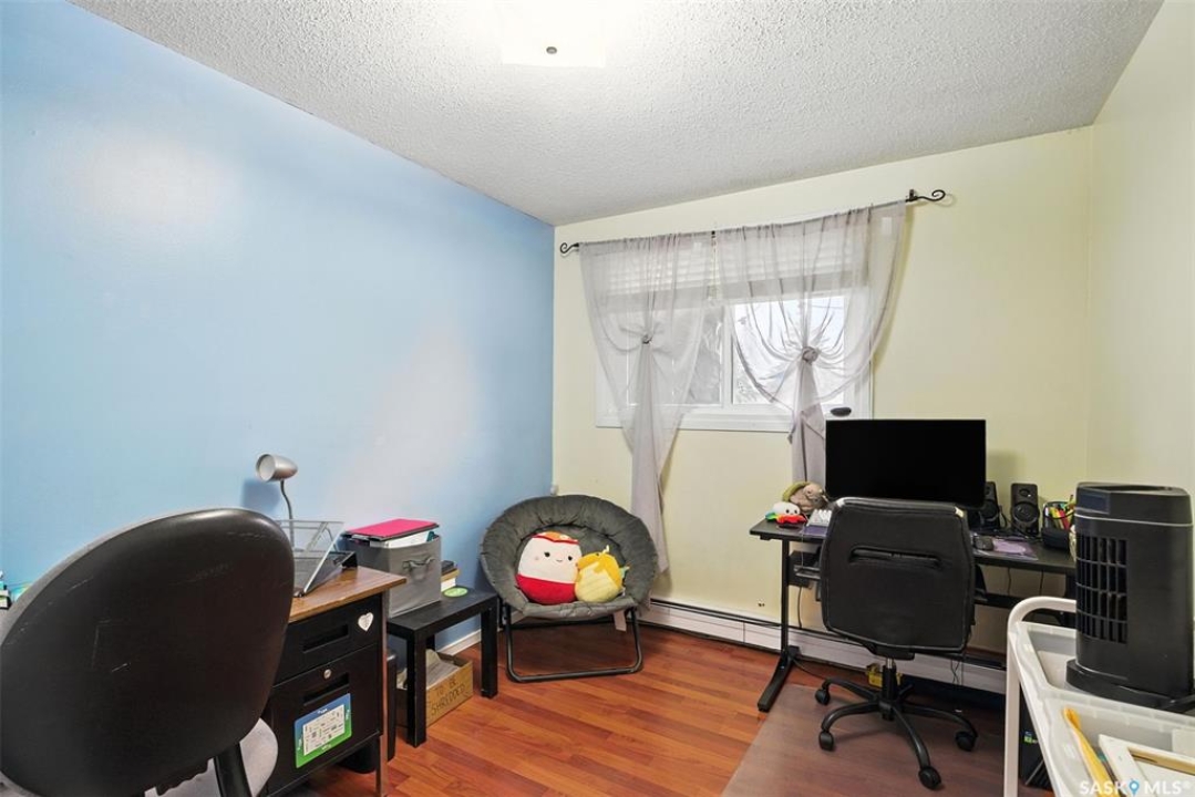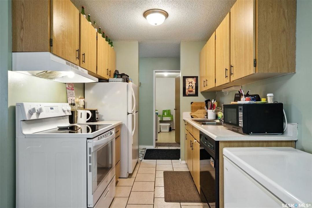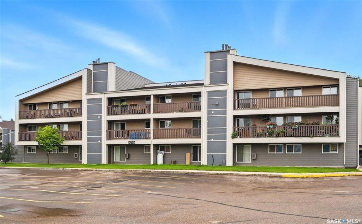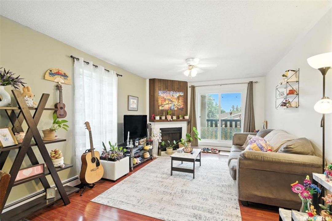 Fantastic top-floor corner unit condo in the well-maintained Forest Grove Village complex, located just 7 minutes from the University of Saskatchewan, right next to two elementary schools and within walking distance to University Heights shopping. This bright end unit is set apart with an extra side window for added natural light and features laminate flooring throughout the living room and bedrooms, with ceramic tile in the kitchen, dining area, and both bathrooms—no carpet throughout. The spacious layout includes a large in-suite storage room that can double as a small office or laundry room, and a patio door off the living room opens onto a good-sized balcony with a private storage shed. The unit is in excellent condition, includes in-suite laundry, and comes with all appliances, including a new stove (2025),washer & dryer (2022) and portable AC. One electrified parking stall is included, with ample street parking available. Residents also enjoy access to a recreation facility featuring a racquetball court, pool tables, shuffleboard, fitness/gym area, and amenities room. The complex has seen many recent upgrades, including new windows, shingles, and siding, giving buyers and investors confidence in the property's appearance and upkeep. This is a great opportunity for first-time buyers or investors—contact your REALTOR ® today for a private viewing!