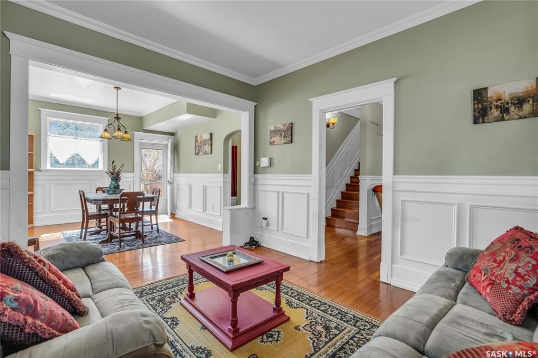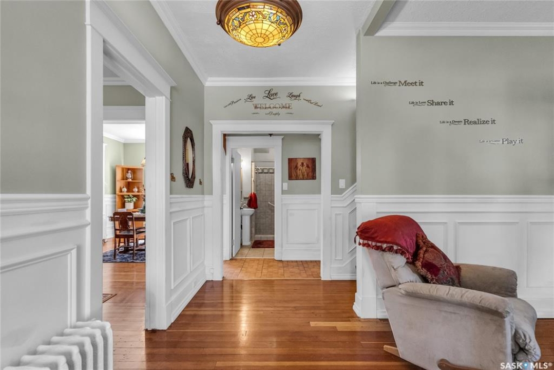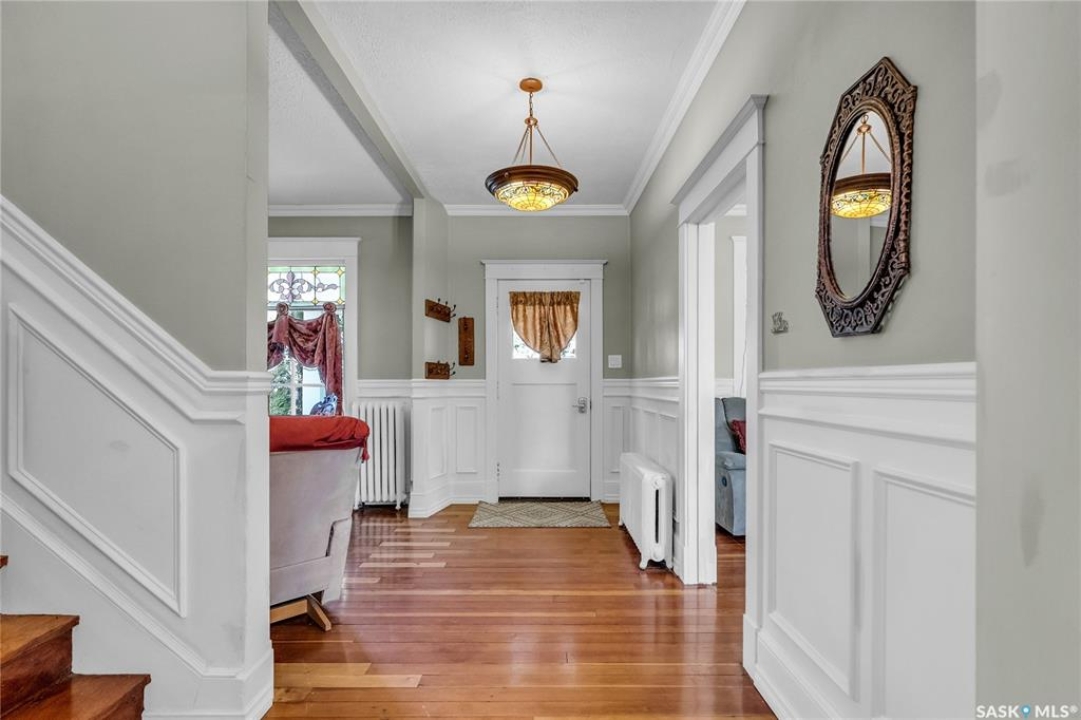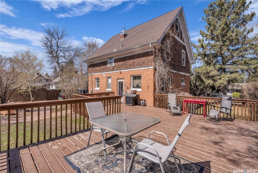 Discover the perfect blend of classic charm and modern convenience in this stunning character home! Boasting impressive street presence, this residence features a welcoming front porch that sets the tone for what's inside. Step into a beautifully designed interior showcasing 9-foot ceilings adorned with elegant crown moulding and wainscoting. The cozy fireplace creates an inviting atmosphere, complemented by large piano windows that bathe the space in natural light. The main floor includes a convenient 3-piece bathroom, making it ideal for family and guests alike. Enjoy outdoor entertaining on the spacious deck, perfect for summer gatherings or quiet evenings. Upstairs, you'll find three generous bedrooms, including a huge walk-in closet and a well-appointed 3-piece bathroom, along with conveniently located laundry facilities. For those seeking additional space, a pull-down ladder leads to a fully developed loft, providing a fantastic getaway for hobbies or an extra retreat. This property also features a separate side entrance to the bachelor suite in the basement or take advantage of the government grant for the secondary suite incentive! Offering great rental potential or a comfortable space for visitors or an opportunity with the grant to update your home! Recent updates ensure peace of mind, including wiring, a new water heater, and brand-new shingles July 2025. Additional amenities include a single garage is 287sqft and the advantage of being situated on two mature lots, providing ample outdoor space. Don't miss out on this incredible opportunity to own a beautifully maintained character home that seamlessly blends tradition and modern living. Schedule a viewing today! --
