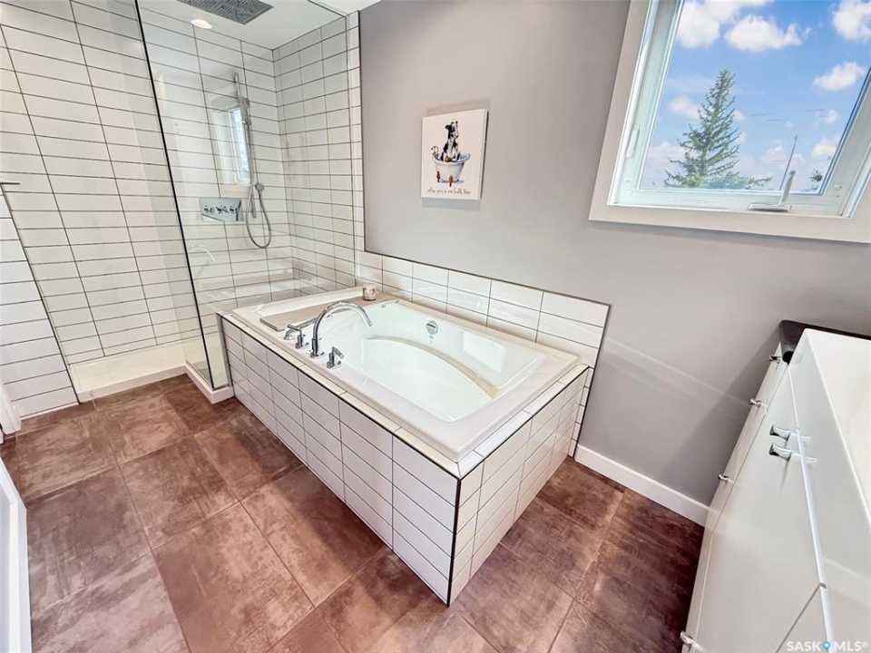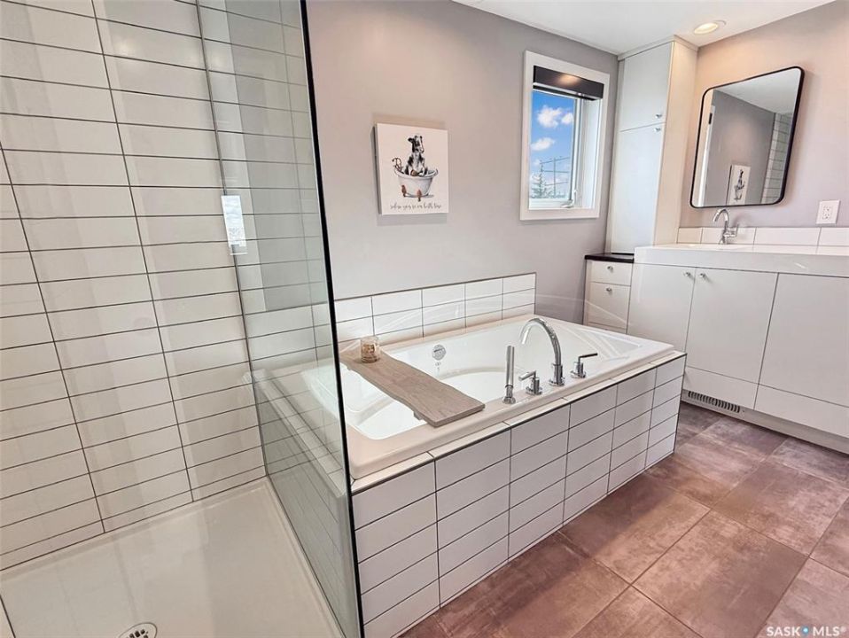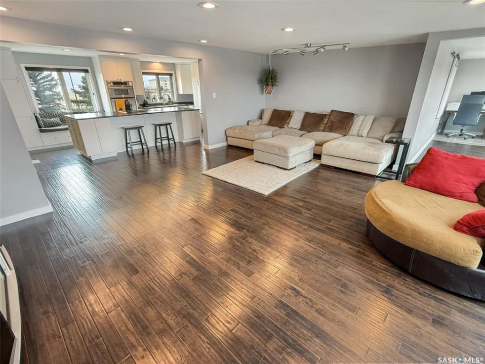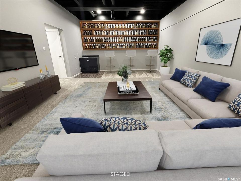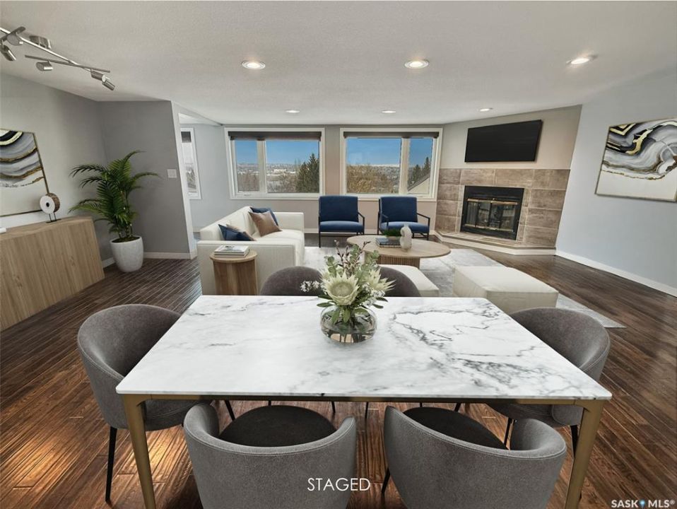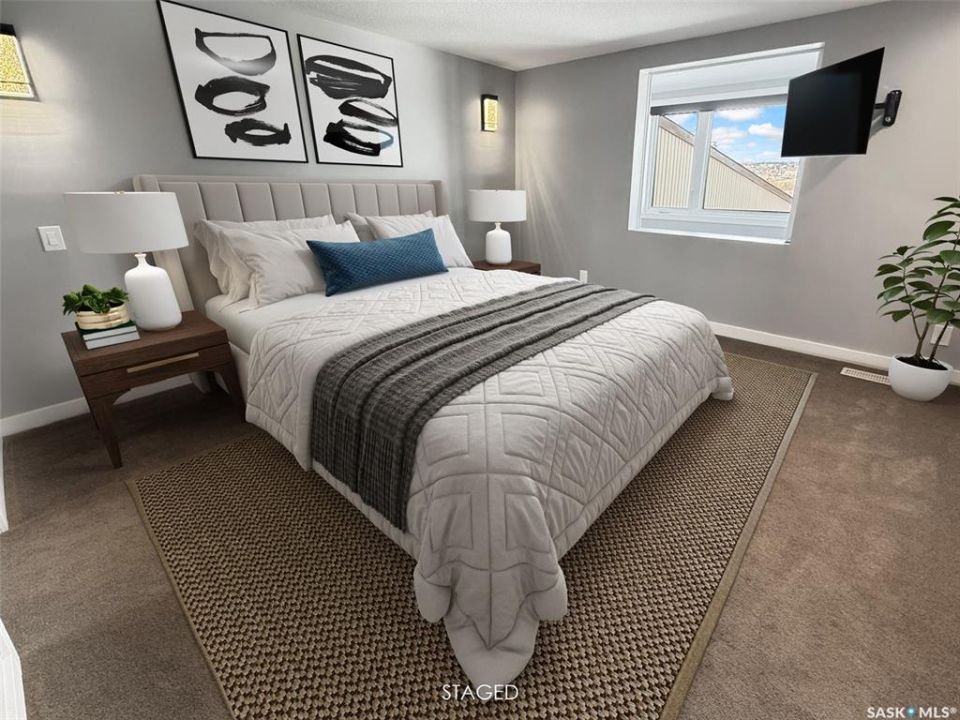 Experience the luxurious lifestyle of this exquisite condo in the desirable Alpine Village community, located on the southern edge of the city. This unit offers stunning views of the prairies to the south and the city skyline to the north, along with a convenient two-car attached garage for easy access.Entering the basement, you'll find direct access to the insulated garage, a welcoming porch area, and a spacious, fully renovated recreational room with a stylish wet bar. The hallway leads to the mechanical room, equipped with an energy-efficient furnace, central vacuum system, ample storage, and a fully remodeled three-piece bathroom Ascend the staircase to an inviting open-concept living space. The expansive front living room features breathtaking views of the skyline and includes a cozy nook for a private office. The large living/dining area seamlessly connects to a brand-new custom kitchen, a chef's dream with modern white cabinetry, elegant stone countertops, a built-in wine rack, oven and microwave, stovetop with retractable hood fan, garburator, trash compactor, and stainless steel appliances. A built-in window seat offers a perfect spot to enjoy the picturesque south prairie views. Down the hall, the oversized master bedroom includes a spacious built-in closet and convenient access to the laundry room. The luxurious bathroom, accessible from the master suite, features a beautifully tiled walk-in shower, standalone tub, double vanities, and a pocket door for guest access to a separate toilet and sink. Professionally remodeled from top to bottom, this unit includes new flooring, baseboards, doors, pot lights, and two renovated bathrooms. Residents enjoy shared amenities just steps away, including a pool, sauna, hot tub, and communal room, along with maintenance services for lawn care and snow removal. Embrace the beauty of your surroundings and the exceptional amenities this property offers. Schedule your personal showing today to explore this remarkable home