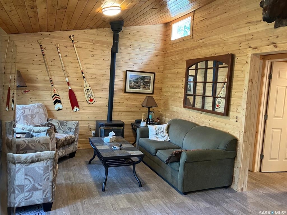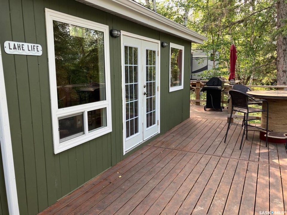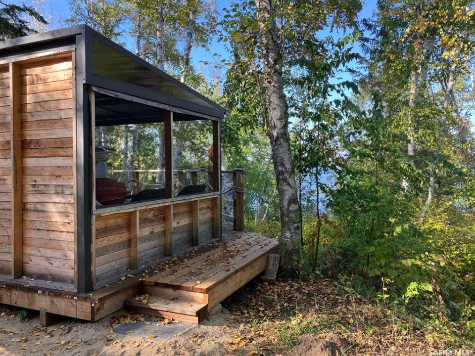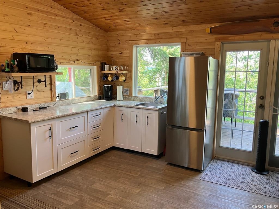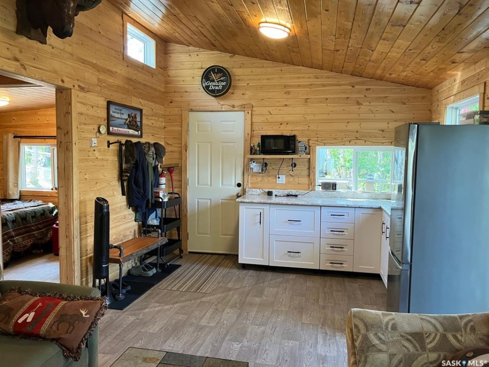 Immerse in serenity at this beautiful lake property at Gingira Subdivision at Tobin Lake. Being the front row cabin it is located on 0.31 acres and offers spectacular views of Tobin Lake from the deck as well as from inside the building. This cabin has been taken down to the studs (with some exclusions) and rebuilt. The cabin features the open concept living/kitchen area with the natural gas stove as the primary source. There are 2 cozy bedrooms with electric heat as a backup and a 3-piece bathroom. Water is hauled to the property and there is an electric water heater; sewer is holding tank. Additionally there is a bunk house with an electric fireplace for your extra guests. Most of furnishings are included in the sale. Tobin lake is known for the world class fishing. Golf course near by. Come and enjoy the tranquility of this peaceful retreat!