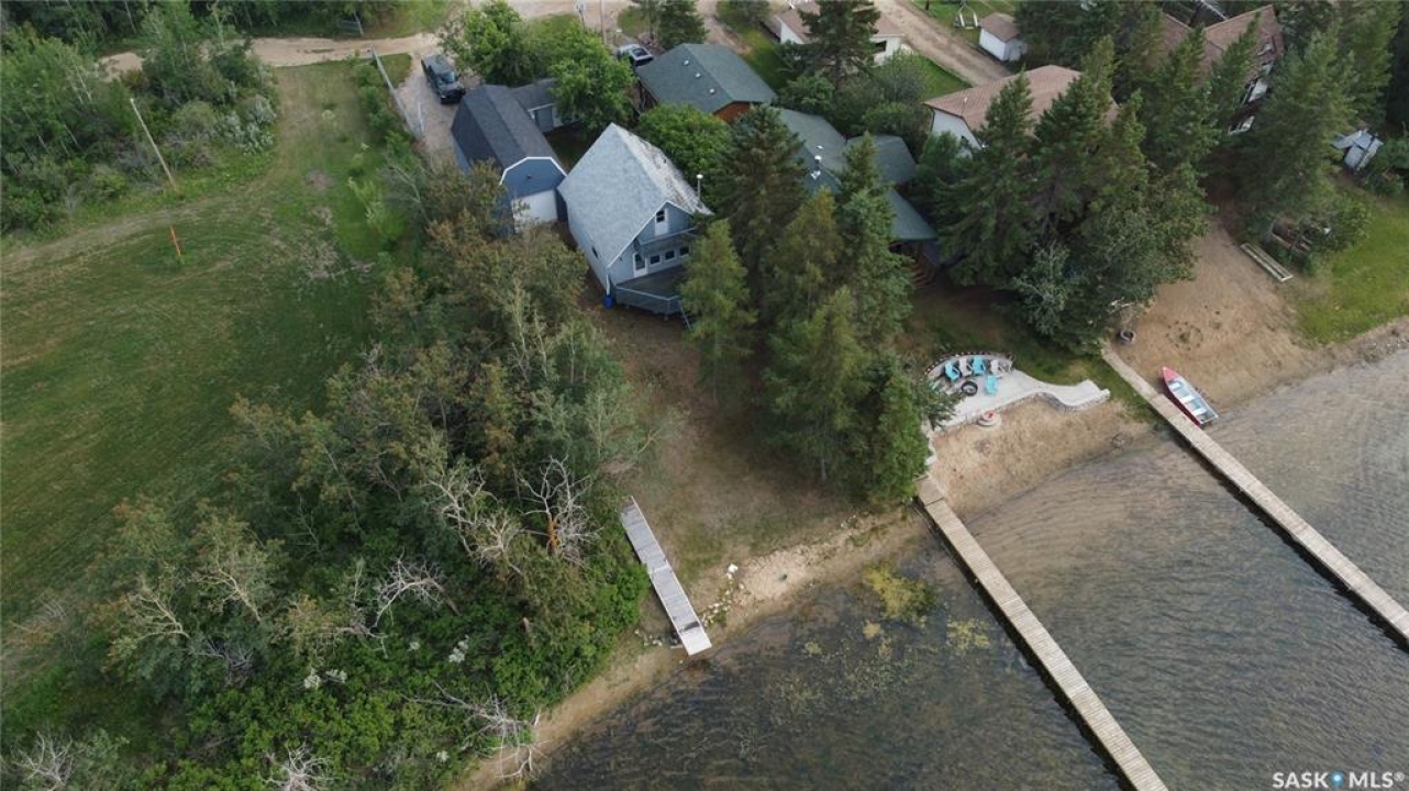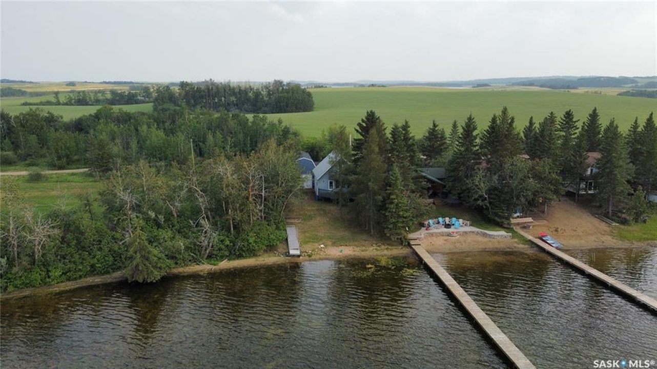 Location, Location, Location! Blissful Lakefront Cabin with Gorgeous Views! Conveniently located in peaceful surroundings and only minutes from Martins Lake Regional Park, this one and a 1/2 story 3BR/1BA cabin welcomes a heavily treed end lot, vernacular architecture, and an expansive deck. Once inside, you find faux wood floors, neutral colour scheme, an open flowing floorplan, and a spacious living room with a wood-burning stove. After a day of fishing, water sports or hiking, whip up a delicious meal in the fully equipped kitchen featuring white appliances, an electric stove, and ample white cabinetry. Sleep easy and rest in the master bedroom, which has access to a deck with lake views! Two additional bedrooms may be ideal for children or guests. Other features: NEW shingles on cabin, huge 18' X 30' heated shop with 9' drive-through doors, 10' X 28' detached shop with storage, 20-minute drive to groceries, only 1-hour from Saskatoon city limits, and more! Call now for a tour!