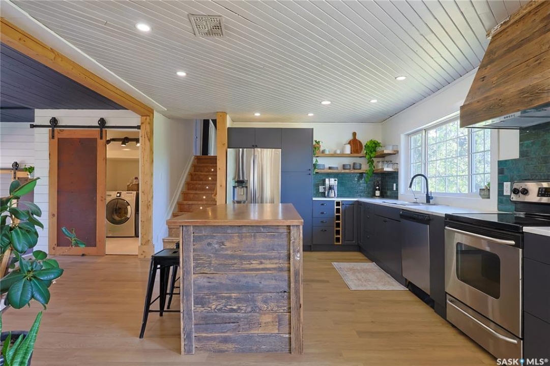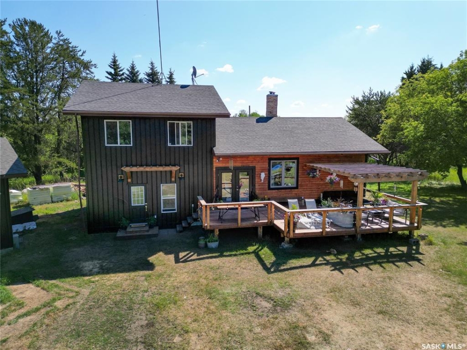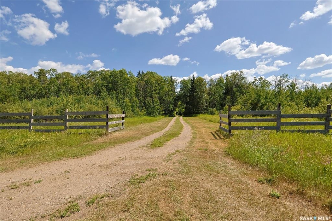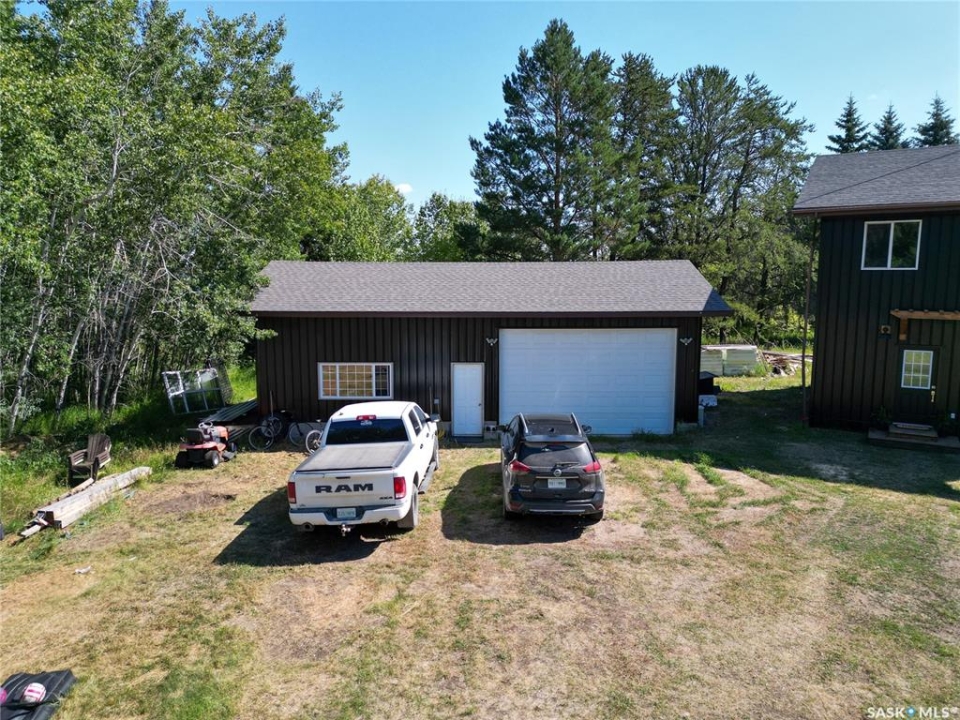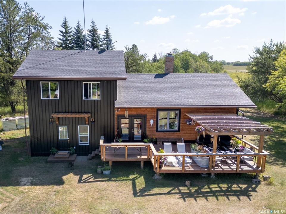 Just 7 minutes from Shellbrook, this beautifully renovated 1,800 sq. ft. split-level home sits on 20 private acres of forest and pasture, offering the ideal mix of comfort and countryside living. The home features 3 + 2 bedrooms, an updated bathroom with in-floor heat and slate tile, and a basement roughed in for a second bathroom. A spacious front entry leads to bright, welcoming living areas and a custom kitchen with a reclaimed barnwood island, hood range, and desk built from historic PA Hospital materials. The cozy living room is anchored by an electric fireplace framed with timber beams sourced right from the property. Outside, enjoy low-maintenance metal siding, a new roof, and a large deck with pergola for relaxing summer evenings. The 40' × 20' heated, insulated shop includes 12-ft ceilings, a 16-ft door, 220-amp service, and gas heat. Fenced on three sides with animal pens, gardens, and chicken coops, this acreage is perfect for a hobby farm. Peaceful and private, with no through traffic, yet just minutes from Shellbrook amenities and a short drive to Prince Albert.