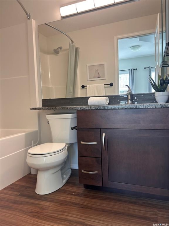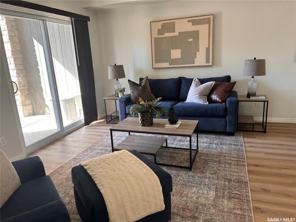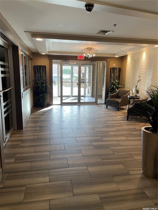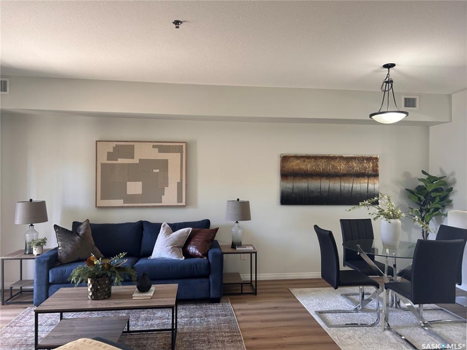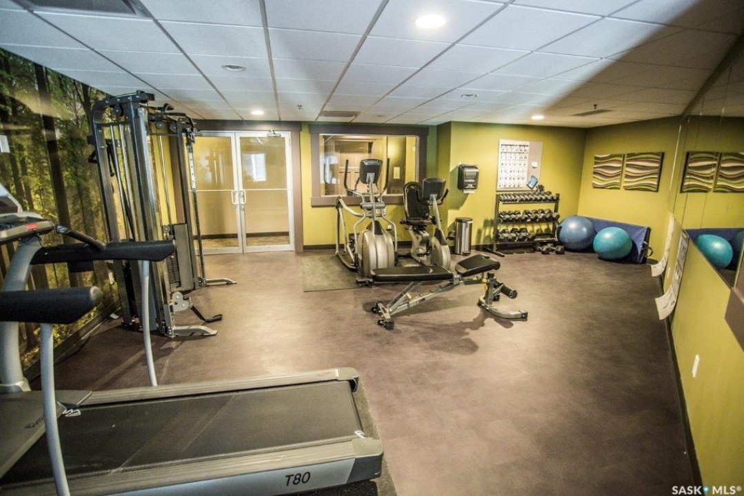 Please note: the seller will pre-pay the condo fees for one year on any purchase. Large 1 bedroom unit with two full baths and 2 underground parking stalls located in the prestigious Bellagio building. Bright open floor plan with southern exposure. Attractive dark maple cabinets and vanities with quartz countertops. Walk in closet and full bath off of the bedroom. Conveniently located main floor unit. This upscale building features an owners lounge (currently under repair) and fully equipped fitness centre. Excellent location across from Wascana Park and within easy walking distance to the Conexus Arts Centre. Centrally located between downtown and the University and near the Wascana Rehab Centre. Parking stalls 59 and 125 included