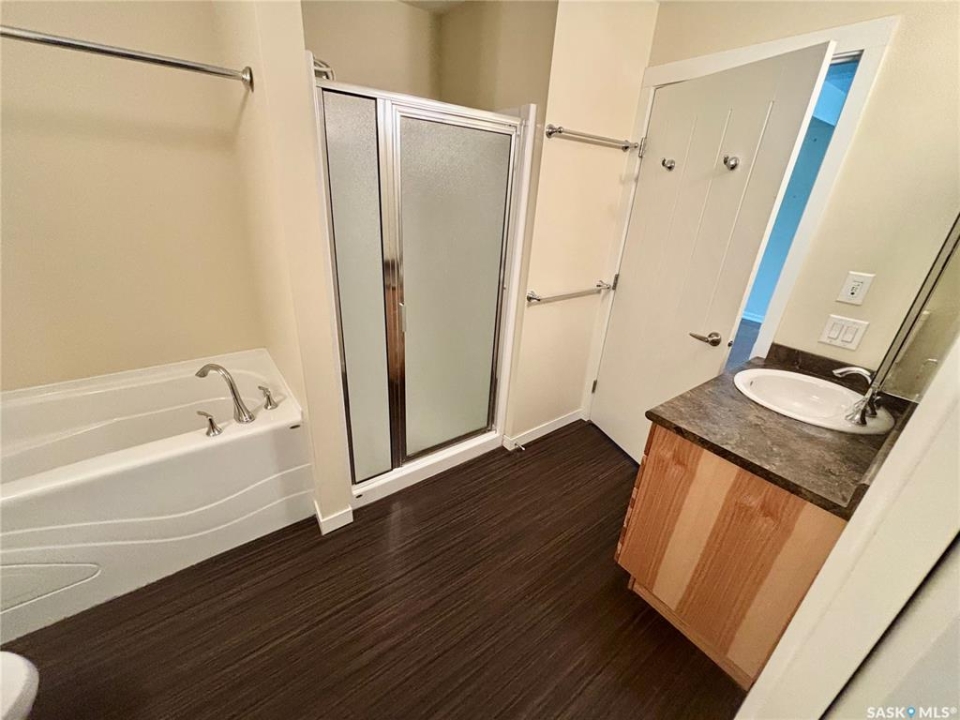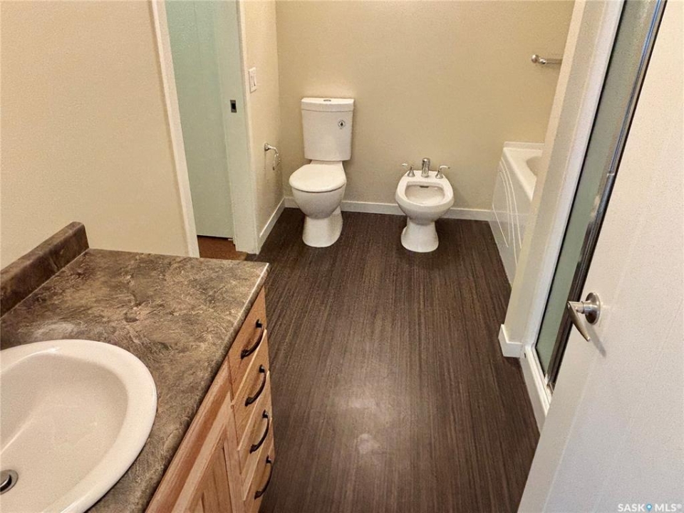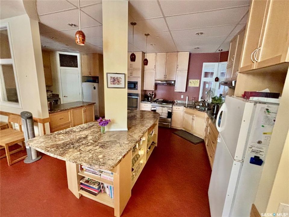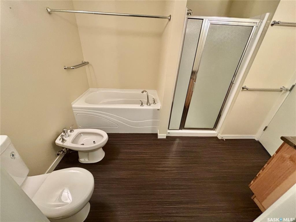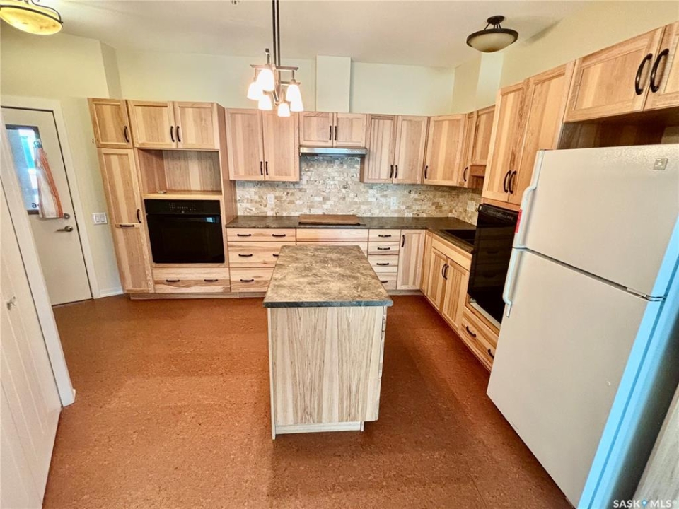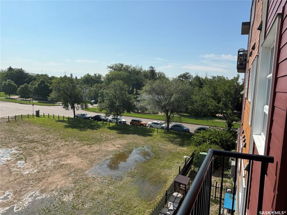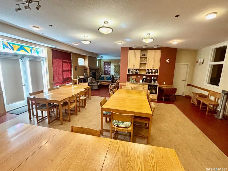 Welcome to Wolf Willow Co housing – a vibrant community offering a lifestyle that embraces both comfort and connection. This thoughtfully designed development is perfect for those looking to right-size without sacrificing hobbies, green space, or social engagement. Located just minutes from Saskatoon's downtown core and within walking distance of the scenic riverbank, Riversdale shops, and the Spadina Avenue Legion Hall, Wolf Willow offers convenience in a thriving and inclusive setting. This beautifully appointed northeast-facing unit features an open-concept layout with oversized windows that flood the space with natural light. The spacious kitchen boasts ample cabinetry, a large peninsula with included counter stools, and a seamless view into the living and dining areas—ideal for entertaining indoors or out on your generous private balcony, large enough to host guests in style. Two well-sized bedrooms, including a primary with door to large bathroom.A large bathroom complete with separate tub and walk-in shower Cork floors, wide doorways, and lower switch plates, making the unit easily wheelchair accessible In-suite laundry hookups and extensive closet space, there is common use laundry as well. Secure, climate-controlled ground floor heated parking and storage Rooftop solar panels, LED lighting, 2"x8" wall construction, and energy-efficient fixtures Beautifully landscaped terrace and fenced garden with raised beds, Bright hallways with floor-to-ceiling windows for natural light and garden views Wolf Willow isn't just a place to live—it's a community of like-minded, mature adults who value sustainability, collaboration, and a vibrant shared lifestyle.