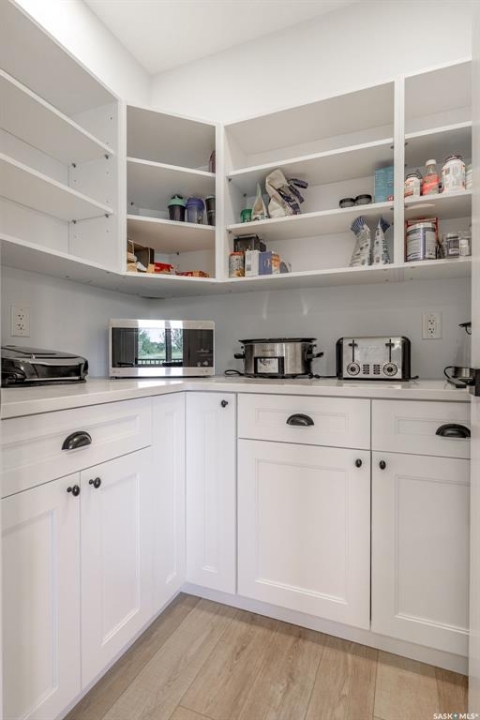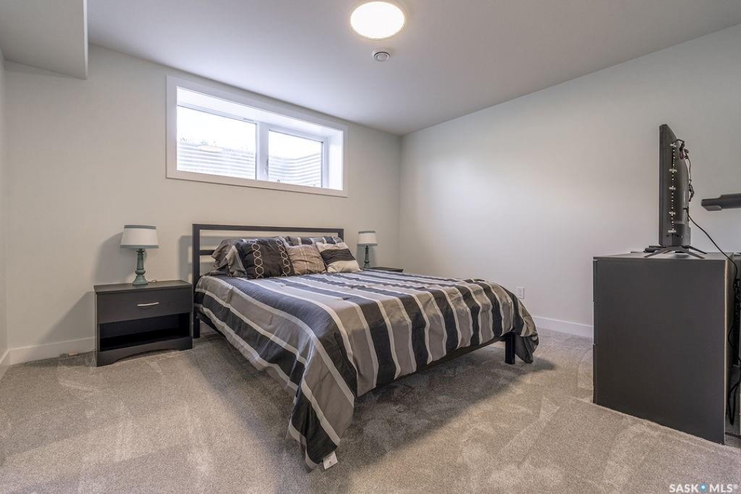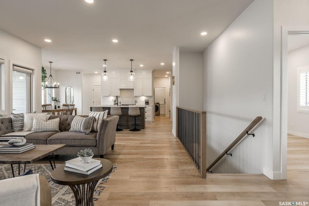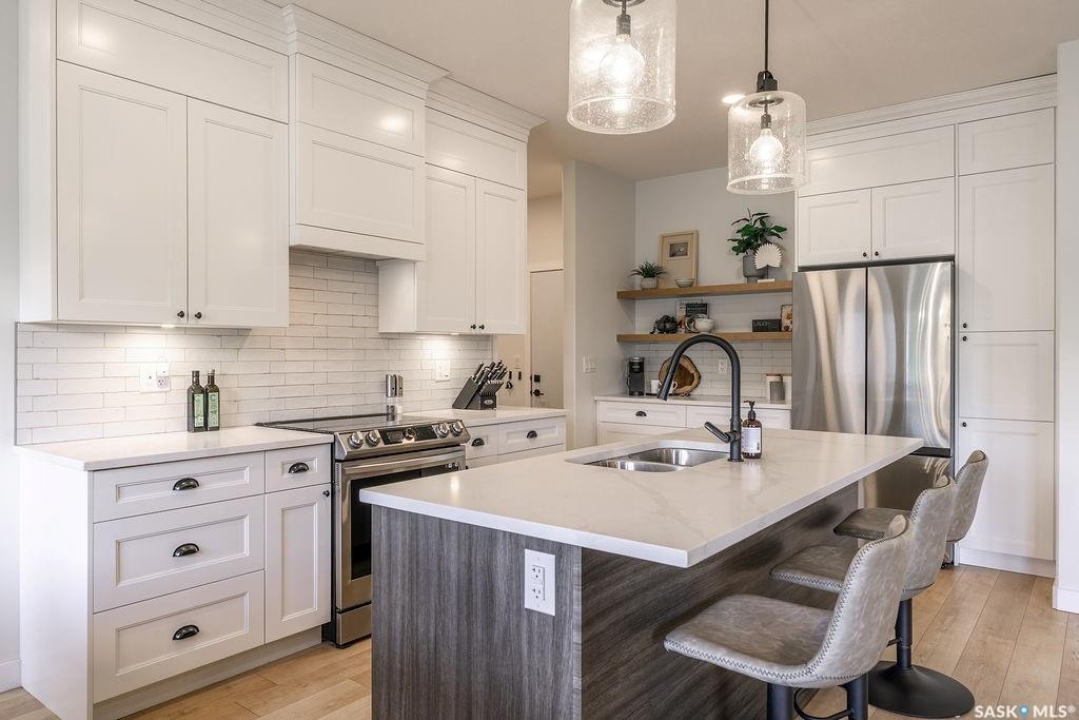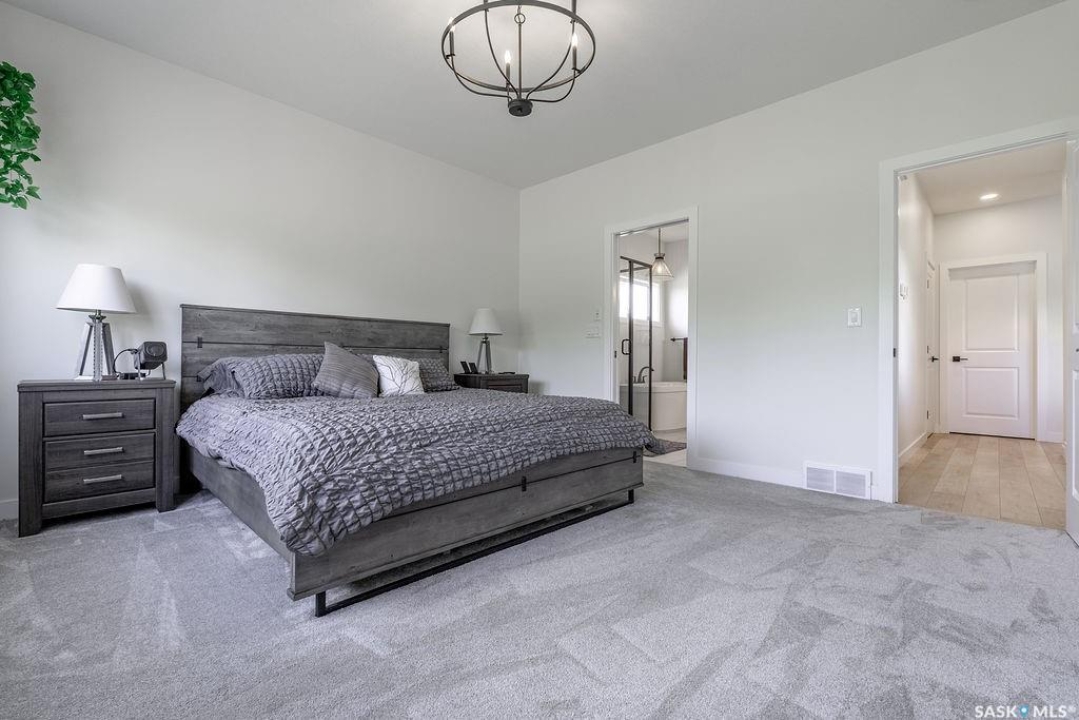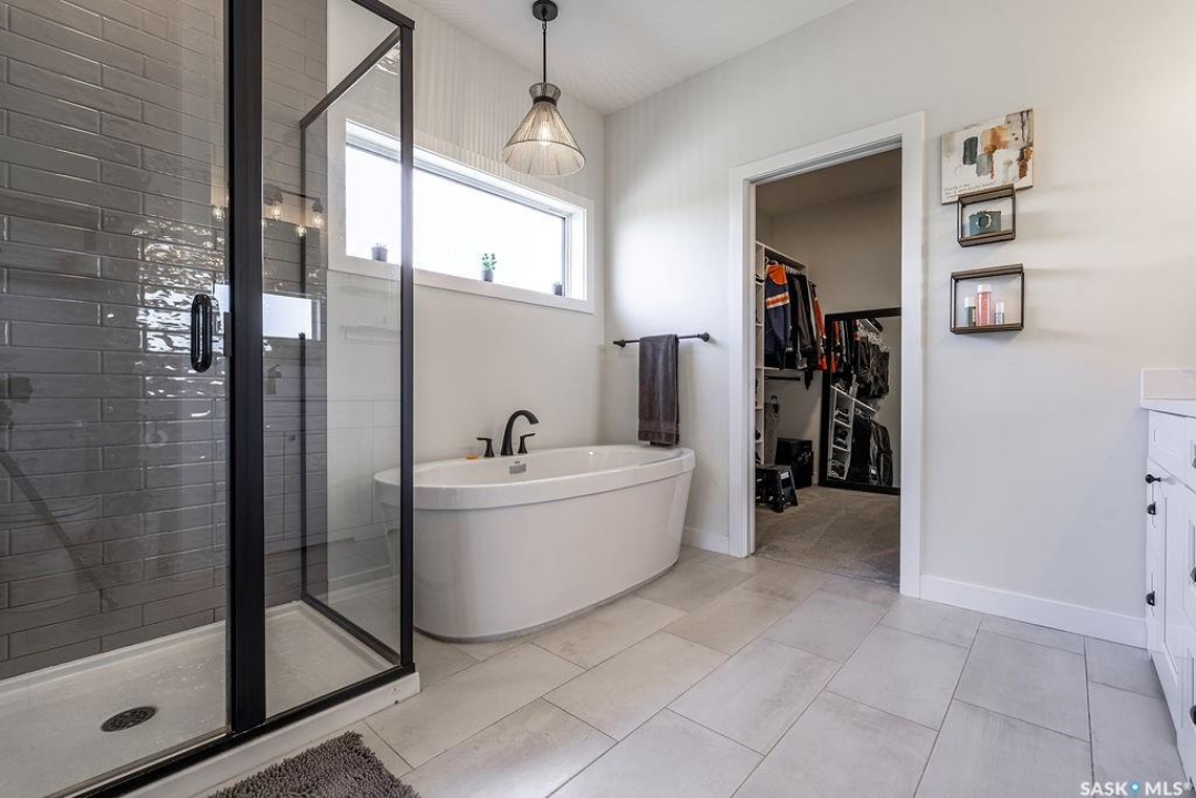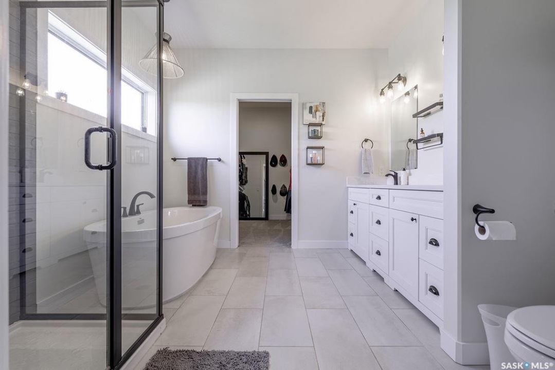 A gorgeous country oasis just 6 km from the city! This stunning 1,850 sq ft bungalow sits on 1.37 acres of treed land on a quiet cul-de-sac in desirable Applewood Estates. With quality craftsmanship, thoughtful design, and beautiful custom touches throughout, this home blends modern luxury with country charm. The exterior features natural wood beams, stone accents, and a covered front veranda with a landscaped front yard and stone path leading to the entrance. Inside, large windows fill the space with natural light, and custom blinds are installed throughout. At the front is a spacious office, followed by an open-concept living area with a gas fireplace and rustic brick hearth. The main living area opens to a covered deck overlooking your private backyard filled with mature trees and Saskatoon berry bushes. The kitchen features custom cabinetry, quartz countertops, stainless steel appliances, a tile backsplash, open shelving, and a butler's pantry with extra cabinets and storage. Two large bedrooms and a full 4-piece bathroom sit on one side, while the other wing includes a mudroom, 2-piece powder room, and a laundry room with custom cabinets, a sink, and access to the triple attached garage. The private primary suite offers serene backyard views, a walk-in closet, and a luxurious 5-piece ensuite with double sinks, standalone tub, and tiled shower. The fully finished basement includes two additional bedrooms, a massive family room, and a games room—perfect for entertaining or relaxing. Enjoy sunsets, wildlife, and peace and quiet just minutes from city amenities. Applewood Estates is only 4 minutes from south Costco and everything you need.