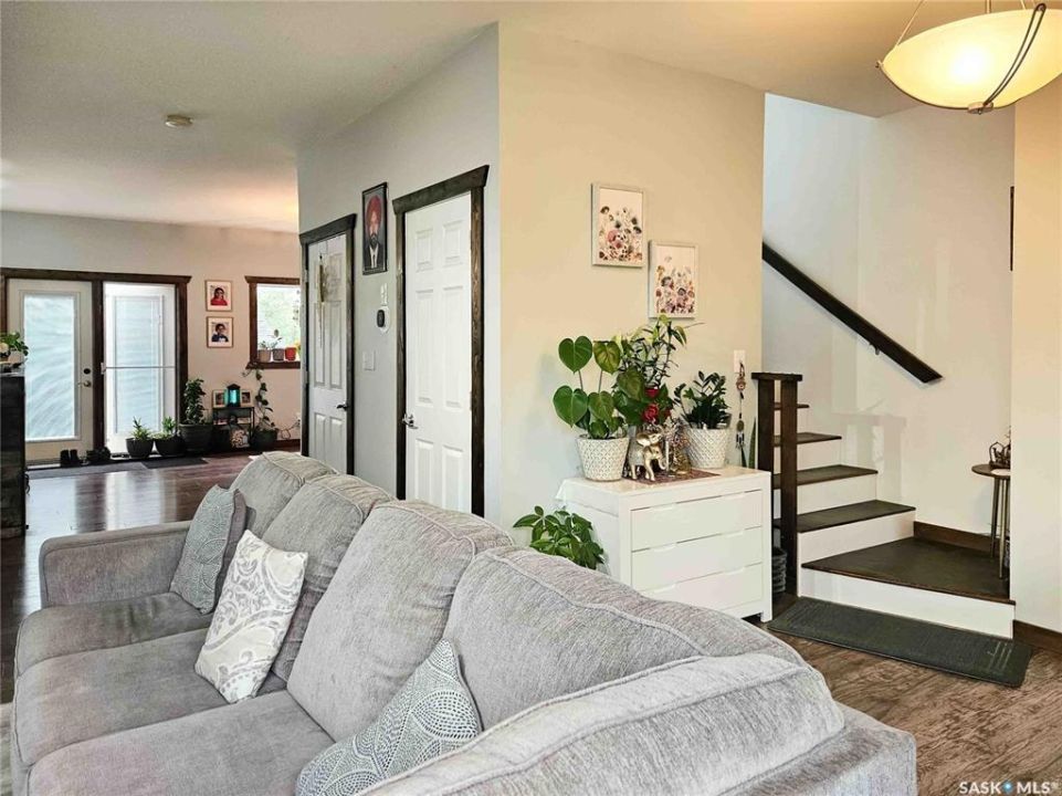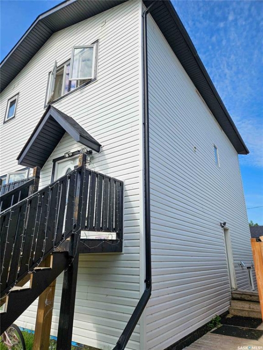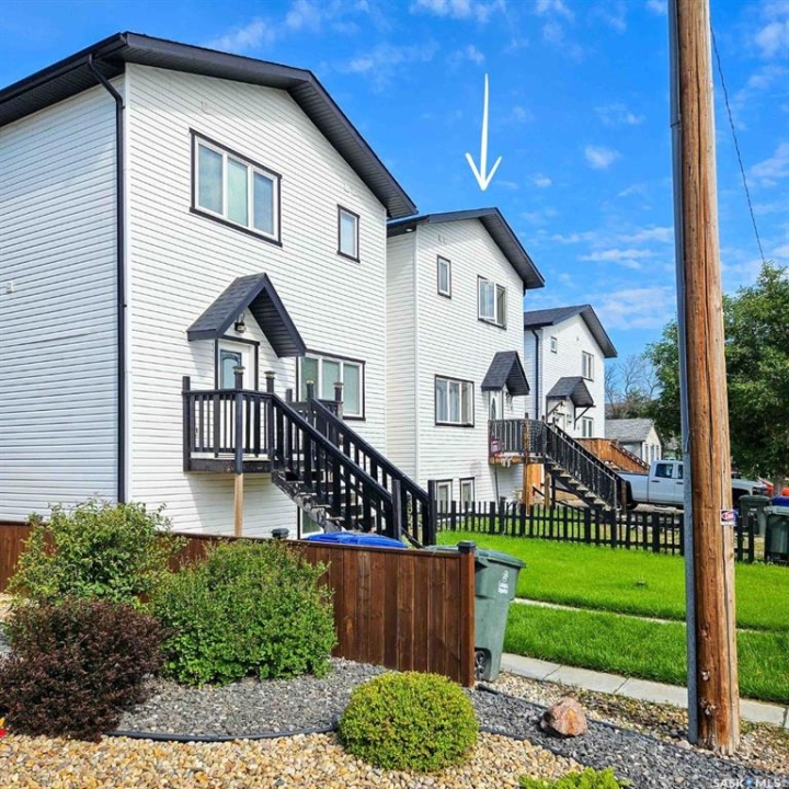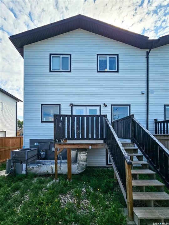 Within the neat white siding of this two-story half-duplex lies a warm and inviting family home. Custom built in 2017, the original owner now offers this charming 1,832 sq ft home for sale. The main floor boasts 9' ceilings and an open-concept kitchen and dining area, with living space extending through garden doors to the back deck. The kitchen features a large corner pantry and an island with a sink and dishwasher (2025) that divides the kitchen and dining area. Laminate floors seamlessly blend the space with the living area at the front of the home, complementing the barnwood backsplash and accent walls. A beautiful 2 pc bath is situated midway between the living room and kitchen. -*- The second floor offers private family space and includes a step-saving laundry closet. Two spacious bedrooms mirror each other on the west side of the home, with a 4 pc bath separating them from the master suite. The east-facing suite is generously sized and features its own 3 pc ensuite, complete with linen and walk-in closet space. -*- The home's raised basement is just over 900 sq ft and features a separate entrance. It is fully finished with a kitchen and living room on the east side, complete with a fridge and stove just replaced this season. Another spacious 4 pc bath, two more bedrooms, and a laundry/utility room with a washing machine (no dryer) complete the space. -*- Behind the home is a 24' x 24' garage, shingled and sided to match the house. The homes HVAC is situated behind the residence.