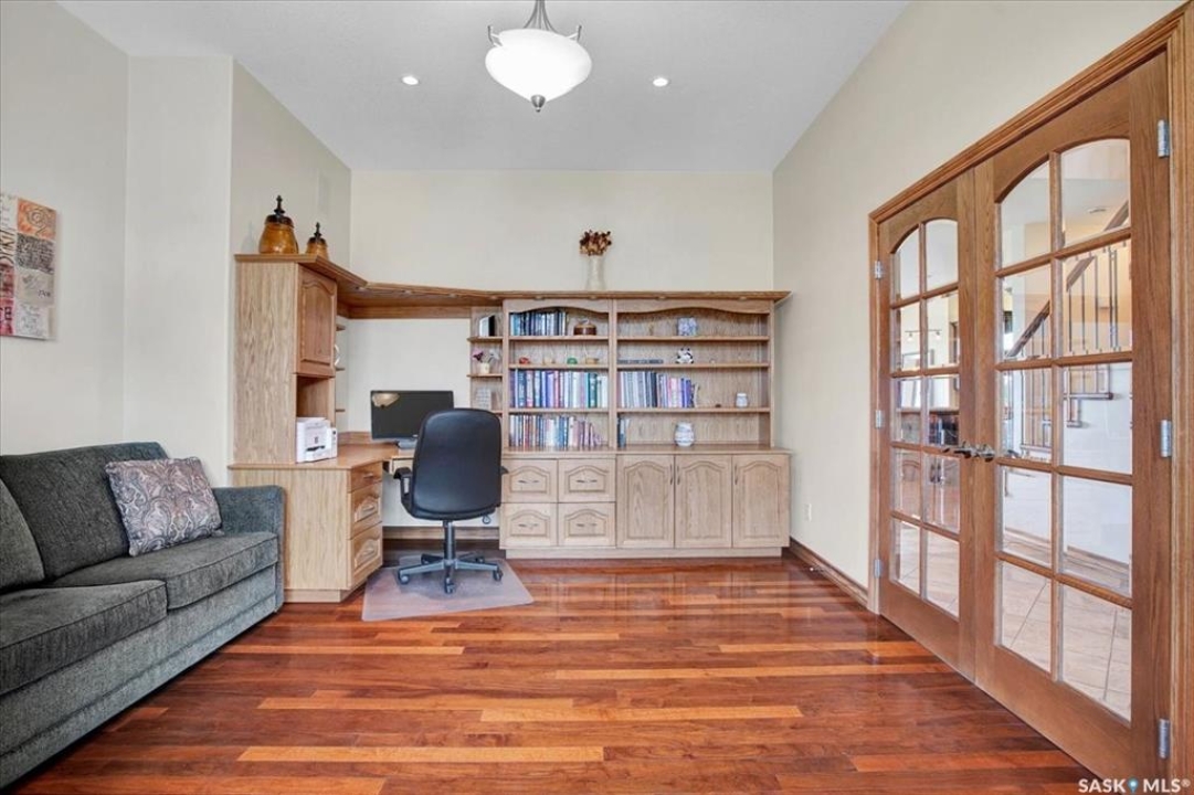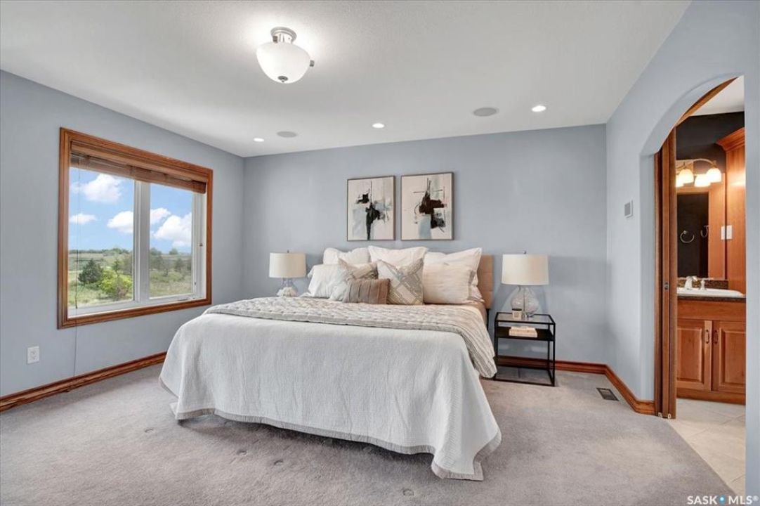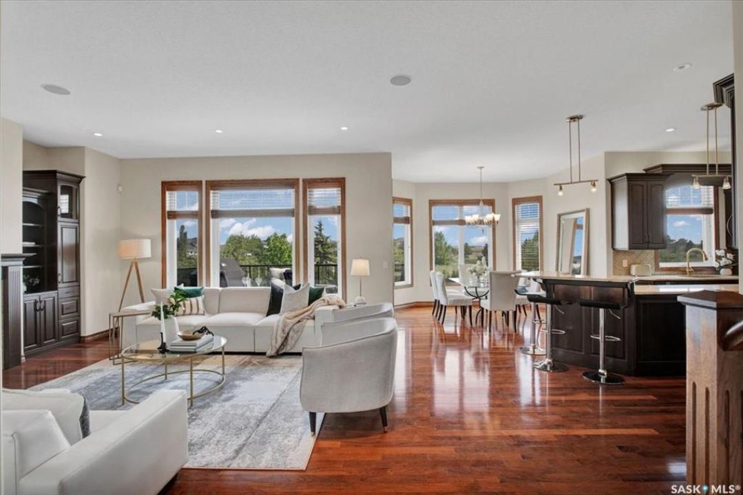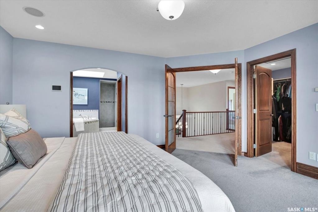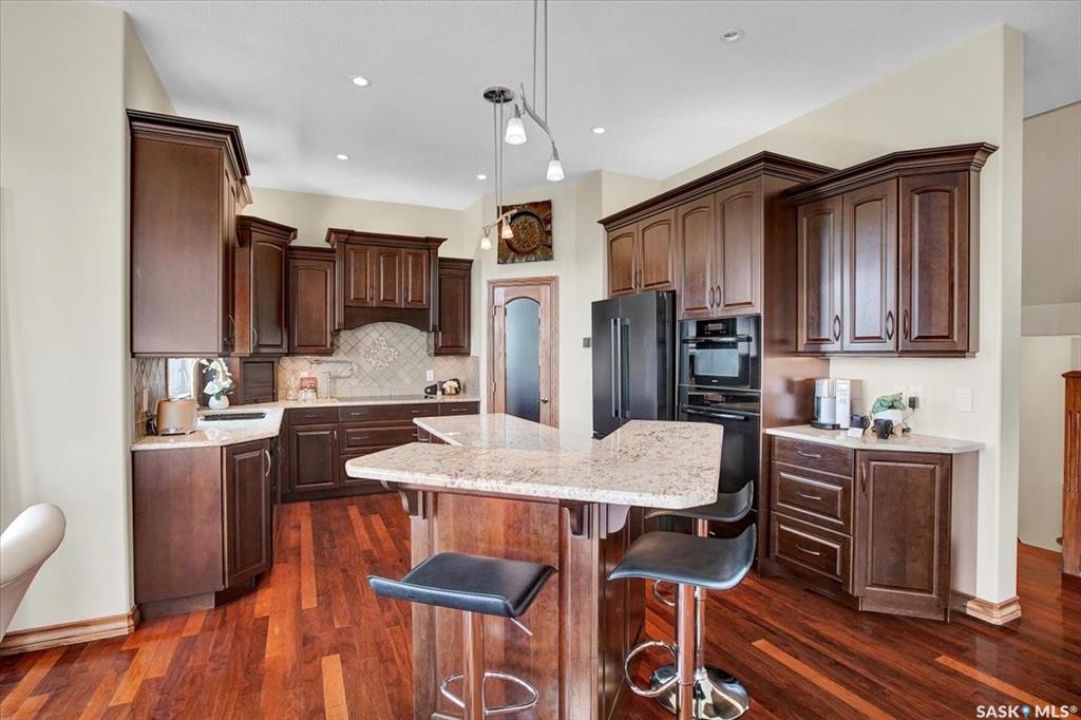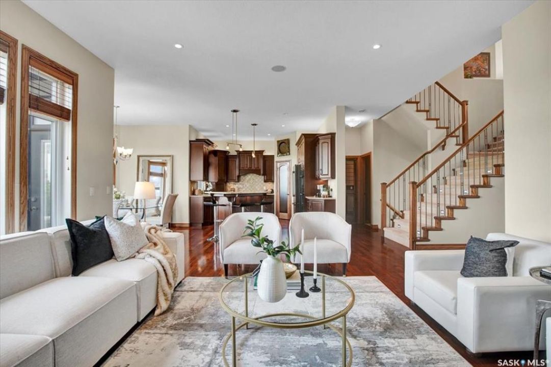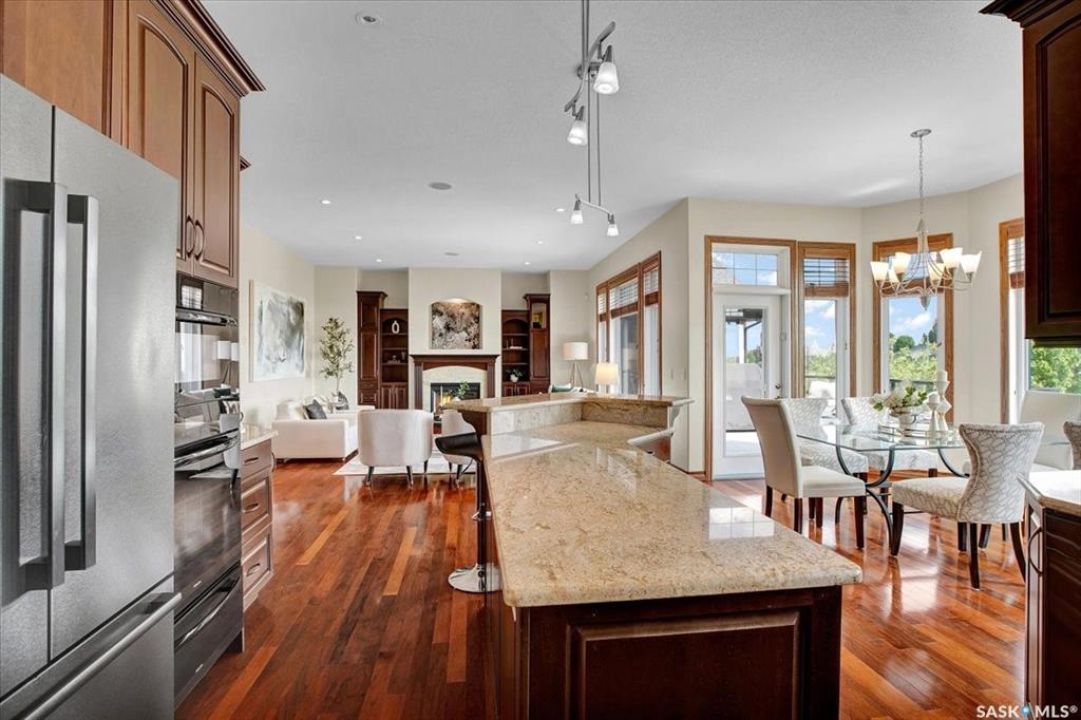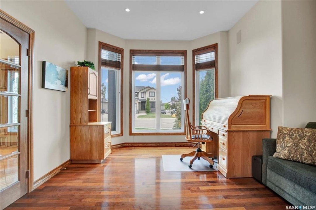 Welcome to this exceptional custom-designed two-storey walkout home, gracefully backing onto a tranquil park setting. With over 3,000 sq. ft above grade and more than 4,000 sq.ft of total living space, this residence offers a rare combination of architectural sophistication and high-end finishes. The heart of the home is a gourmet kitchen outfitted with top-of-the-line Miele stainless steel appliances, cherry hardwood cabinetry and granite countertops. The gorgeous kitchen is open to the dining area and family room all with stunning views of the park behind! A large home office boasts solid oak built-in cabinetry and desk. The spacious main floor laundry/mudroom offers direct access to the attached garage and walk through pantry. A stylish half-bathroom completes this floor. The staircase to the second floor branches off in two directions. One side leads to a spacious, private family room. The other side leads to the luxurious primary suite, complete with its own private sitting room overlooking the park, a generous walk-in closet, and 5-piece ensuite. Two additional well-sized bedrooms and a 4-piece bathroom complete the upper level. All bathrooms have in-floor heat. The walkout basement features a spacious family room with a cozy sunlit nook or gym. The wet bar includes a wine fridge, dishwasher, and ample cabinetry, along with a dedicated wine room nearby. This level also includes a large bedroom, 3-piece bath and a large mechanical/storage room, as well as in-floor heating. The walkout deck has a custom-designed metal staircase and natural gas line all looking over the beautiful walking trails and park. The yard is fully landscaped with low-maintenance perennials, custom stone pathway, private vinyl fencing and stamped concrete driveway. The attached two car garage with in-floor heat has been finished with sealed epoxy floors. Call today to book your private showing of this amazing property!