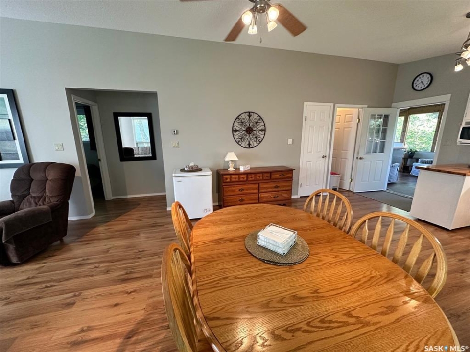 Welcome to 24 Ruby Cres at Ruby Lake, Sk. This beautiful, very well maintained cabin is for sale. Built in 2005 it has 2 bedrooms and 1 full bath. Cabin has running water, sewer and power. The main living area is open concept so loads of room for company. Facing east is a super sized screen sunroom. With screens on 3 sides you are guaranteed to catch a breeze. Cabin comes fully furnished right down to the towels, bedding and forks/knives, tv etc. On the outside the cabin boasts large windows so great views from nearly everywhere. Mature birch trees provide plenty of shade. This is a 3 season cabin and only because the crawl space and floors have not been insulated. Crawl space approx 3 feet so if you wanted to insulate be a long weekend project!! Also included are mowers, few tools, wringer washer, pots, cushions etc. Call or text to setup appointment to view