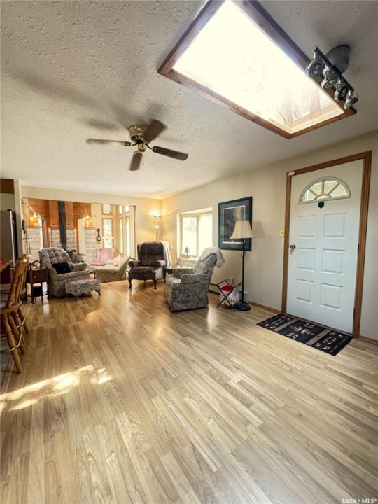 Don't miss this rare opportunity to own a four-season property at scenic Anglin Lake, set on an expansive 1 ½ lot with a leased dock that is not included in the sale but maybe transferrable. This property features a bright, open living area, a large kitchen with French doors that open to a screened-in porch, and a charming loft used as a primary bedroom with a built-in bar—ideal for enjoying morning coffee on the upper deck. Highlights include a natural gas fireplace, skylights in the living areas and loft, moonlight in the dining area, main floor laundry, and a family room in the basement. It has It has three outbuildings (there are 2 garages and a shed which includes a heated work shop) and a large yard with a garden area that includes heavy bearing apple and cherry trees. This could be your forever home or your family cottage. There are furnishings, offering comfort and convenience for year-round living.