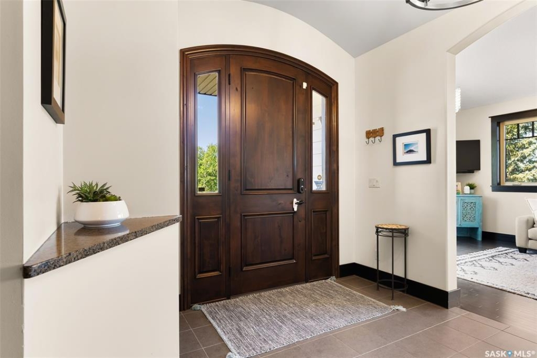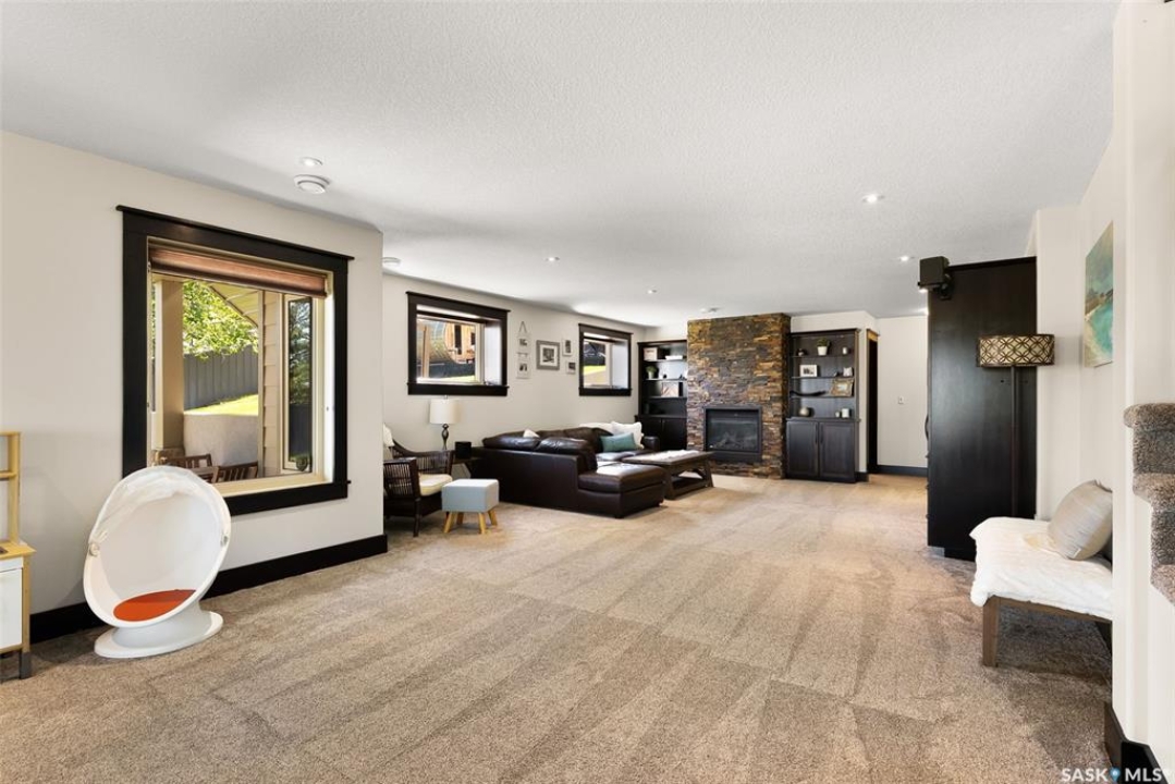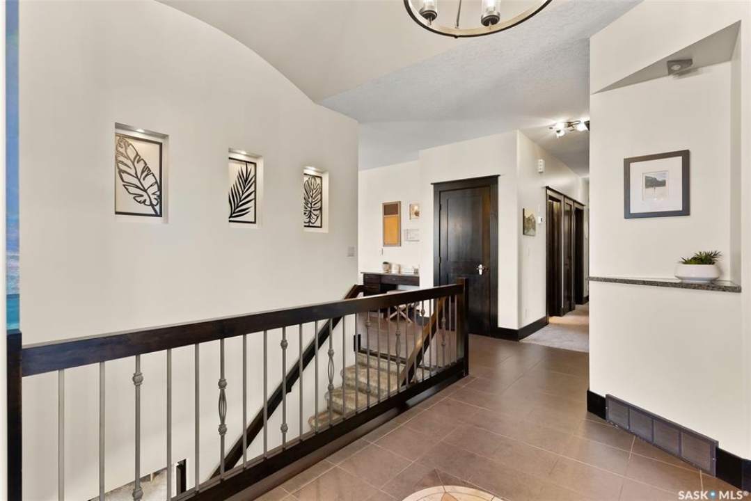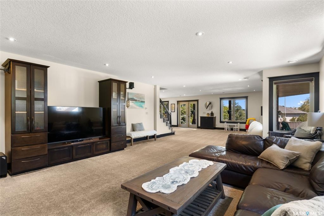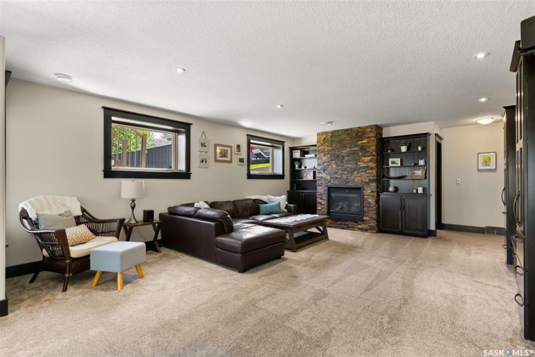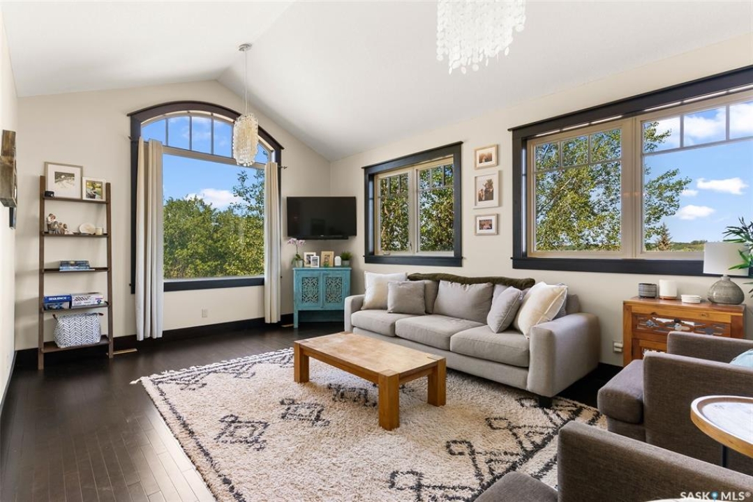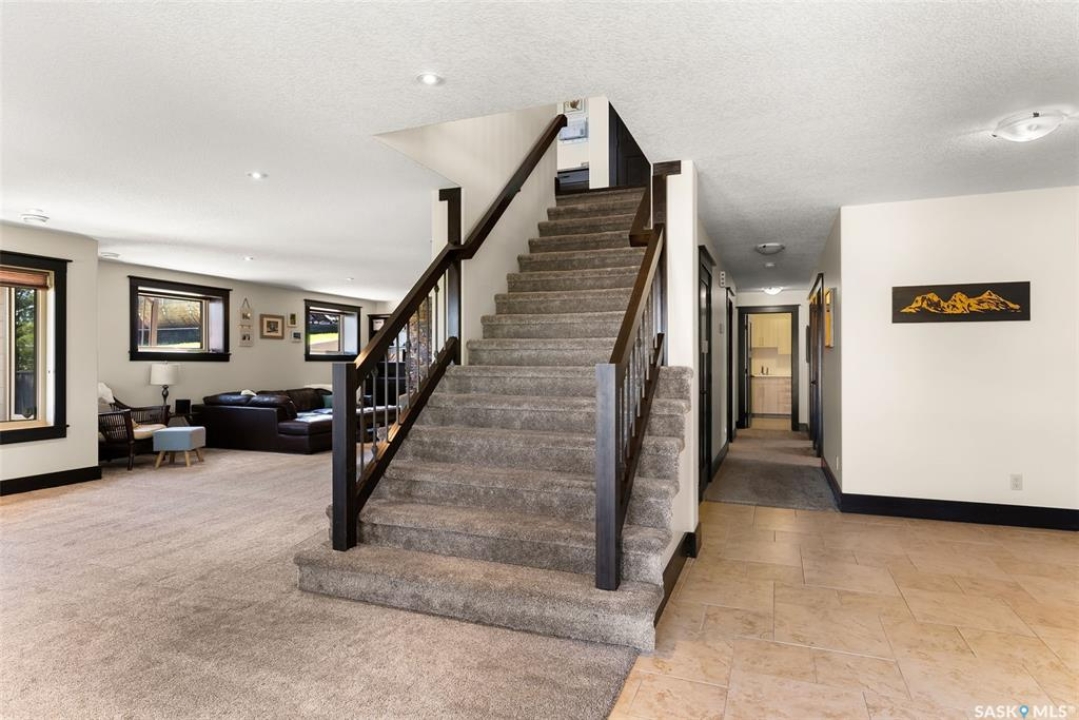 Discover this stunning 2007 sq ft custom-built walkout bungalow above Lumsden. Large windows flood the home with natural light and offer breathtaking views of the Lumsden Valley. The main floor features vaulted ceilings, solid maple doors and trim, and in-floor heating in the bathrooms, kitchen, dining area, and basement tiled spaces. The spacious kitchen boasts maple cabinets, granite countertops, a large island, built-in cooktop, double ovens, double fridge/freezer, and a corner pantry. The dining area opens to the upper deck via garden doors—perfect for entertaining. The master suite includes built-in dressers, his-and-hers walk-in closets, a double-sided fireplace, and a large ensuite with a double jetted tub and glass/tile shower. The fully developed basement has two bedrooms, a den, and a rec room with a built-in entertainment system. A wet bar, fridge, and dishwasher make hosting easy. Garden doors lead to a patio for outdoor fun. Enjoy the fully landscaped, fully fenced backyard with an in-ground pool, hot tub, and a custom two-story play structure/shed. The heated triple garage (44' x 24') plus additional rear bay (12' x 20') provides ample storage, along with extra space in the furnace room. For more info contact the listing agent.