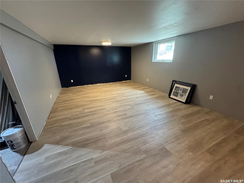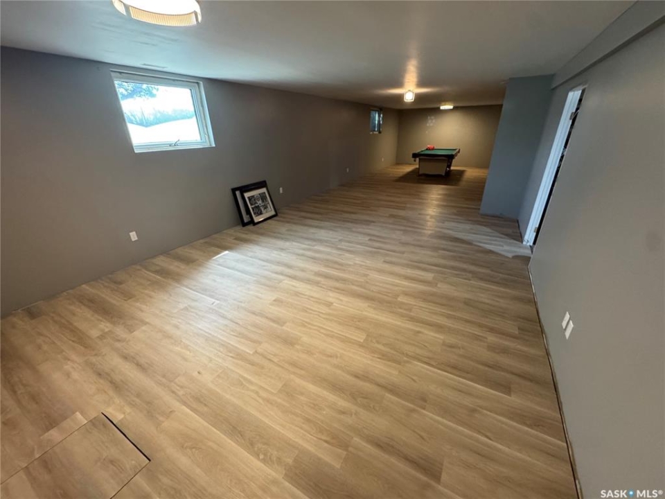 Welcome to Strasbourg, just a quick 50-minute drive from Regina. This spacious bungalow is conveniently situated directly across from Strasbourg School (K-12). Enjoy a generous living room that flows into an open concept dining area and kitchen. New doors lead to a deck that provides a view of the expansive yard. The upper level features three well-sized bedrooms, including a convenient walkthrough bathroom that connects the primary bedroom to the laundry room. Descend to the fully renovated lower level, which boasts a Dricore Subfloor Insul-Armor underneath brand new laminate flooring. This area includes a spacious bedroom, a brand new bathroom, and a sizable utility room. Outside, you'll discover a double detached insulated garage and a large backyard perfect for children to play and for hosting BBQs with family and friends. Don't miss this chance to make Strasbourg your home, a town that truly has it all!