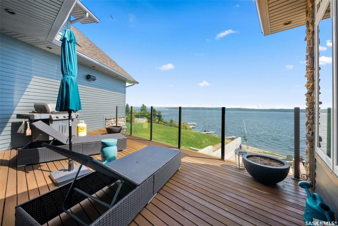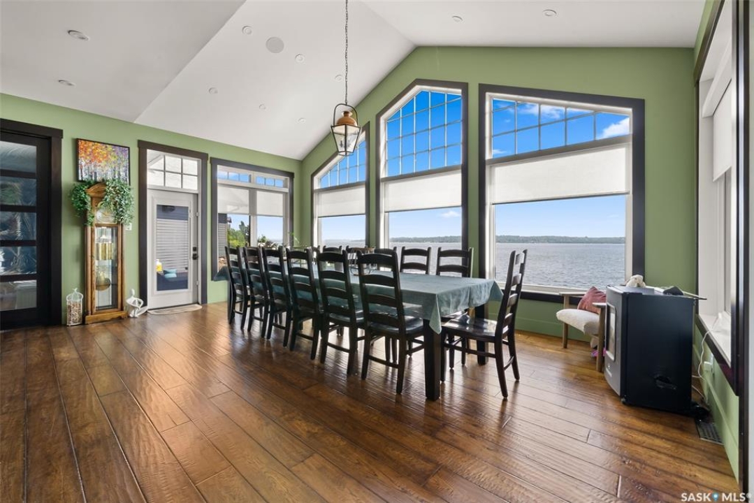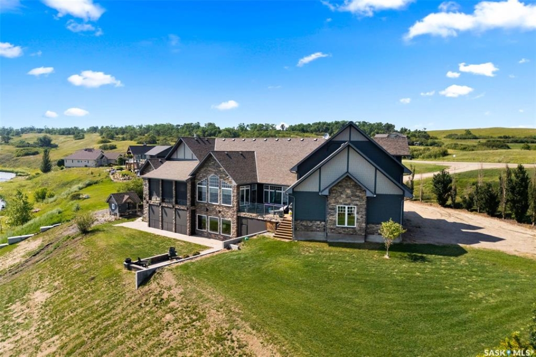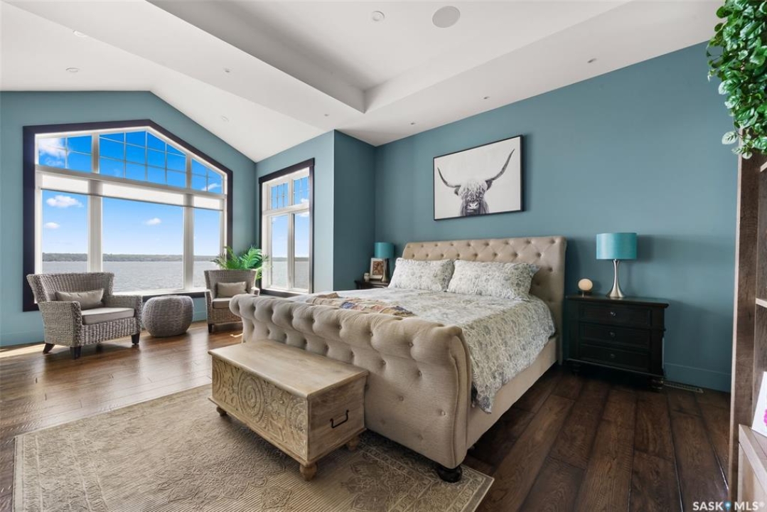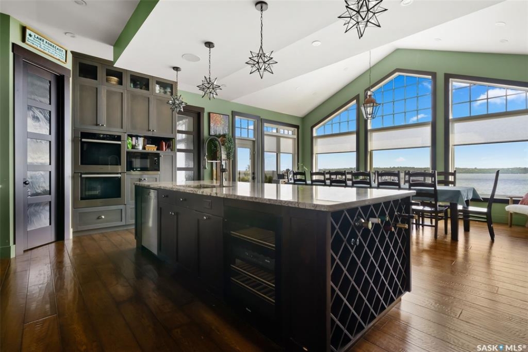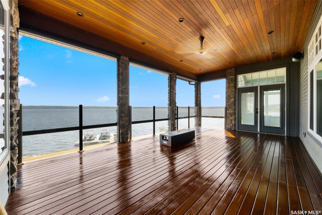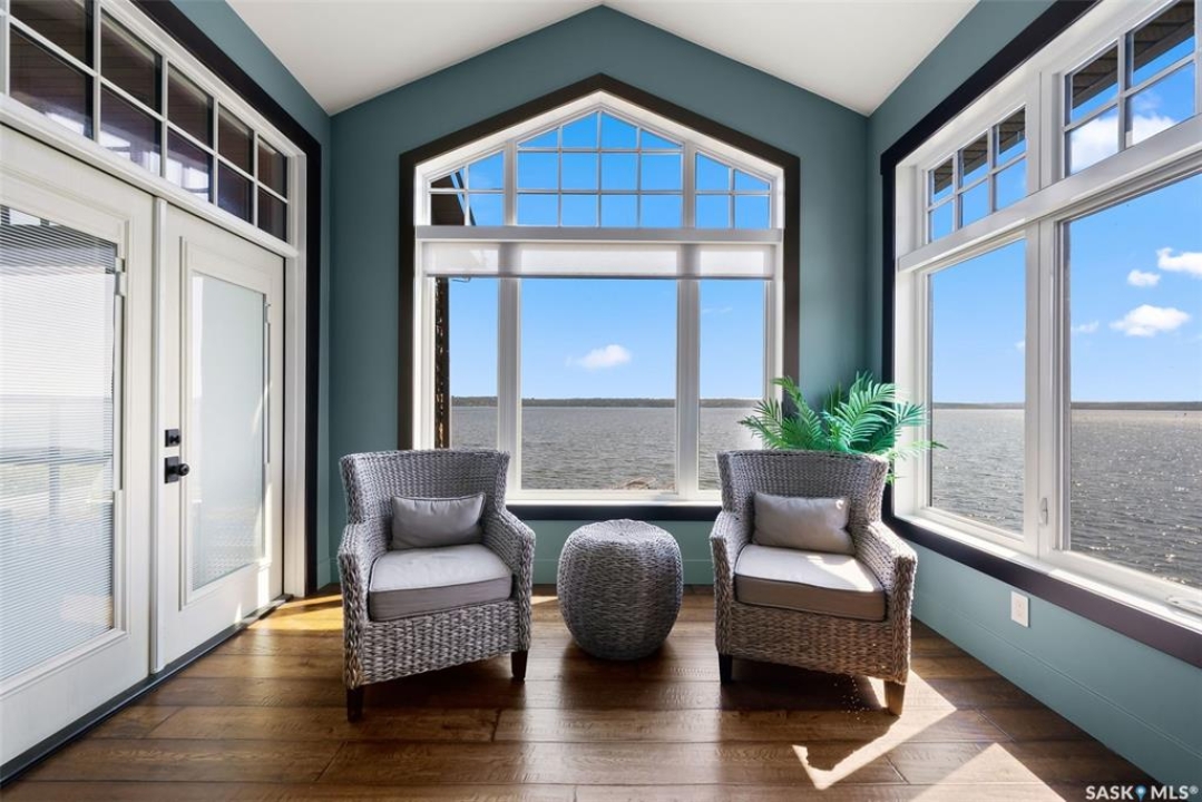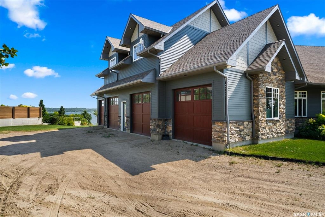 SPRAWLING AND SPECTACULAR LAKESIDE OASIS AT SUNDALE! The house is to be sold with next-door waterfront lot at 3 Kiiswa Point (MLS #SK013972) which together offers 310 feet of water frontage. Nothing is overlooked on the construction & appointments on this fine property. Custom solid cherry millwork by Shaver's Sash and Door including stairs, spiral staircase, doors, trims & cabinetry. Engineered hand-scraped hardwood and ceramic tile throughout most of the main & walkout levels. 10' coffered ceilings on the main floor & 9' ceilings below. LUTRON motorized blinds and full smart home integration: control temperature, lighting, blinds, music, and TVs from your smartphone. All TVs included, powered by a built-in Dolby Atmos sound system. The 4-car garage features heated floors & spray foam insulation. The gourmet kitchen boasts top-tier MIELE appliances including gas cooktop, built-in fridge, oven & dishwasher. Expansive granite island & counters & premium BLUM soft-close drawer system. Primary ensuite features a California walk-in closet, a spa-like steam shower a standalone tub and an advanced heated toilet. All bathrooms include deluxe tiled showers (except powder room). Upstairs, two children's rooms with walk-in closets & a Jack-and-Jill bath. Walkout lower level includes huge rec room, mudroom, 2 additional bedrooms and 2 more bathrooms. Home theatre screen room with HD projector, screen & dual-row seating. Three screened-in porches, outdoor deck, outdoor shower & foot wash station. Structural slab foundation with 170 x 25-foot piles extending beneath the paving stones for unmatched stability. ICF walls, & open web joist (OWJ) flooring system. Full spray foam insulation envelope for exceptional energy efficiency. Exterior finished with Hardie board siding & 50-year shingles. Negotiable docks & lifts offer flexible lakefront enjoyment. Utilities: Reverse osmosis water system serviced by an on-site plant at the resort ($450/month). Reliable E1 sewer system.