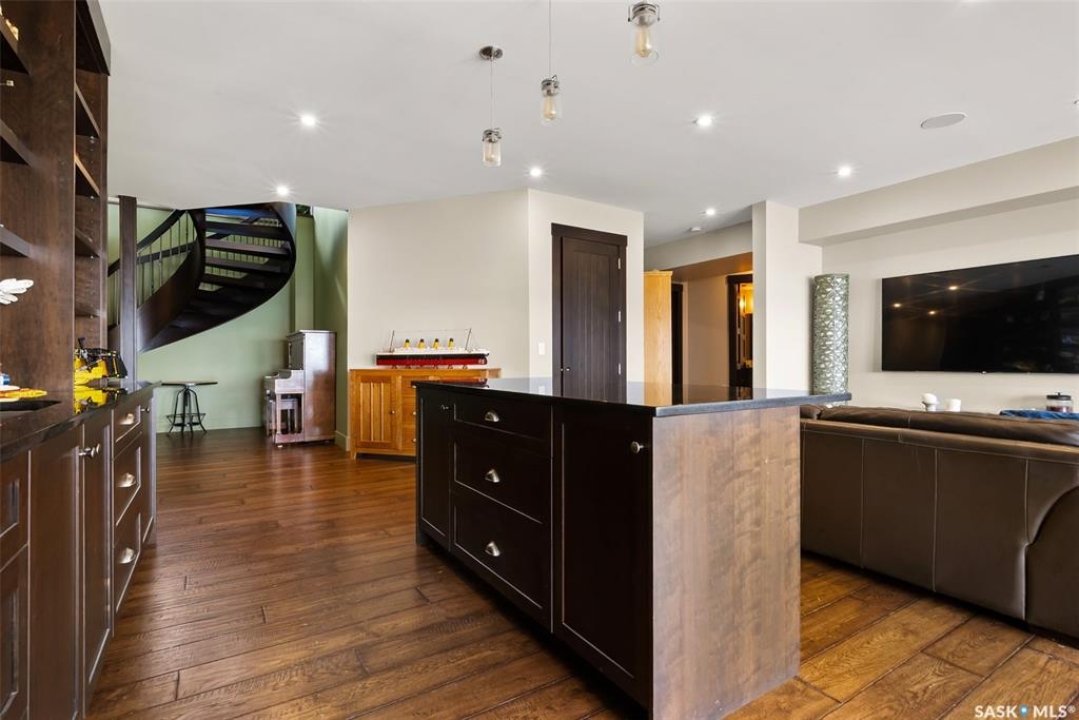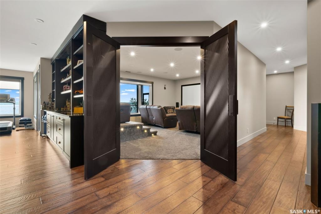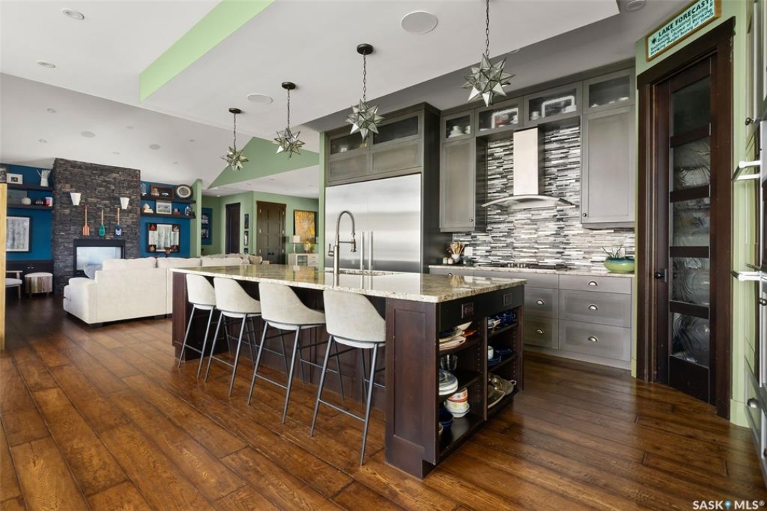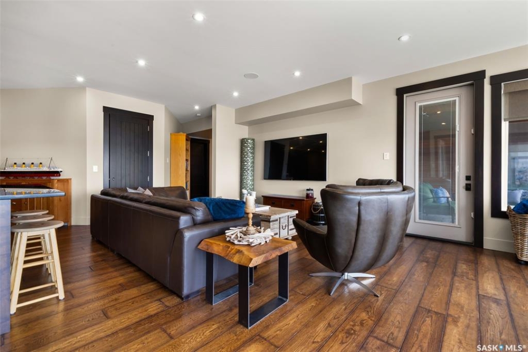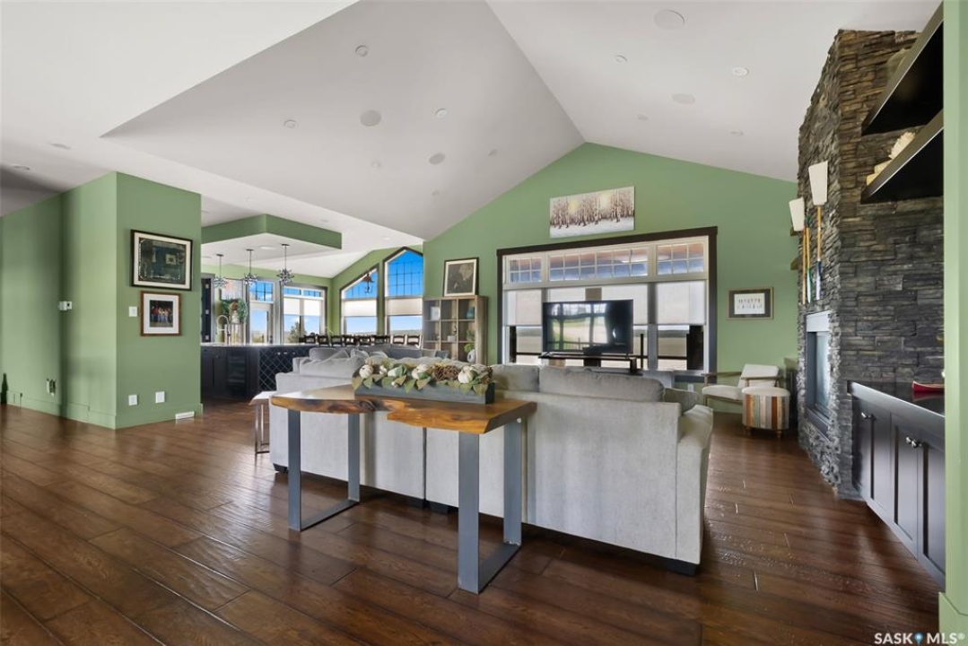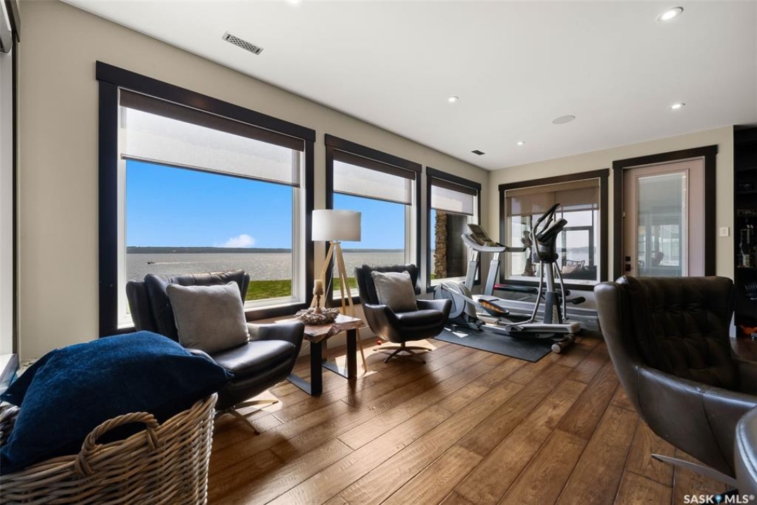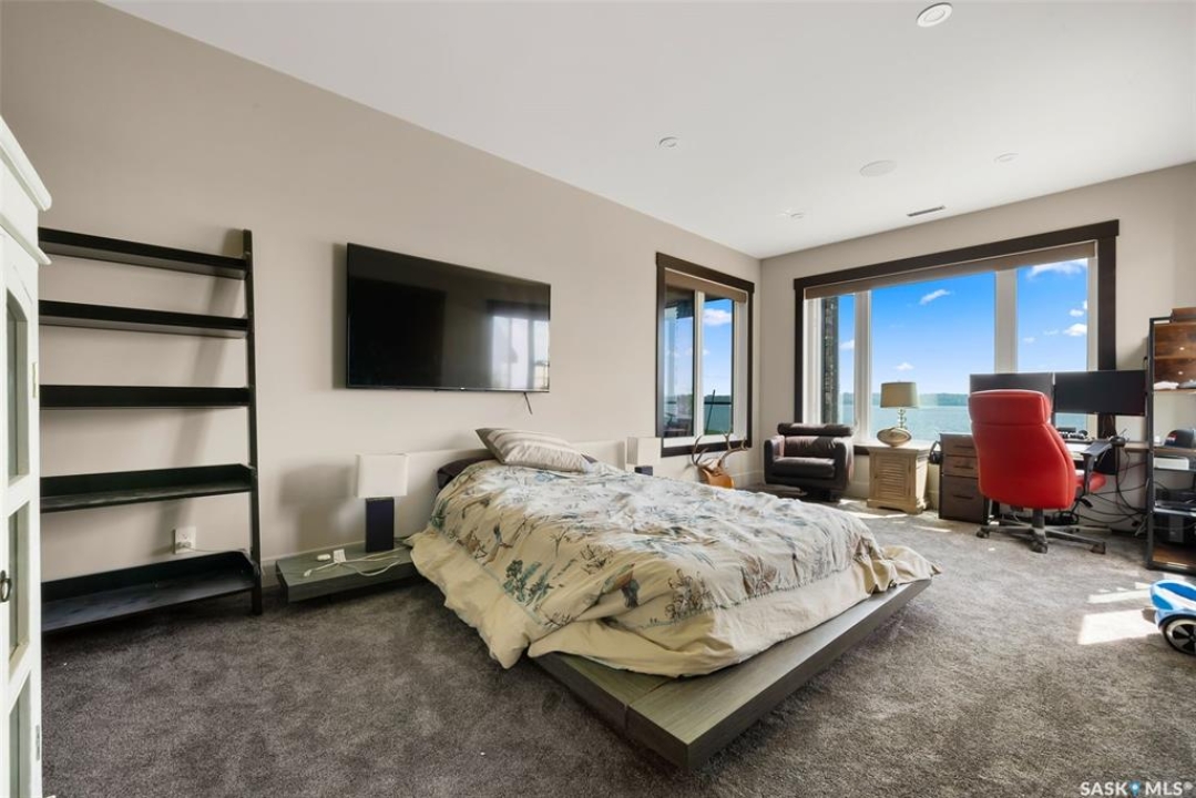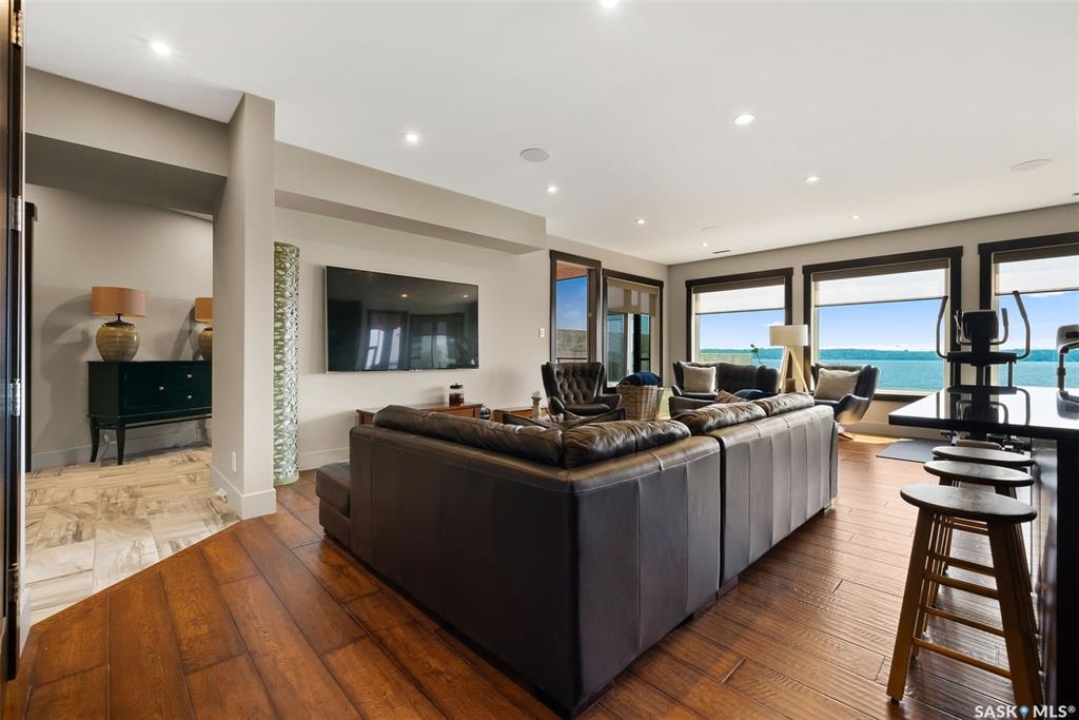 SPRAWLING AND SPECTACULAR LAKESIDE OASIS AT SUNDALE! The house is to be sold with next-door waterfront lot at 3 Kiiswa Point (MLS #SK013972) which together offers 310 feet of water frontage. Nothing is overlooked on the construction & appointments on this fine property. Custom solid cherry millwork by Shaver's Sash and Door including stairs, spiral staircase, doors, trims & cabinetry. Engineered hand-scraped hardwood and ceramic tile throughout most of the main & walkout levels. 10' coffered ceilings on the main floor & 9' ceilings below. LUTRON motorized blinds and full smart home integration: control temperature, lighting, blinds, music, and TVs from your smartphone. All TVs included, powered by a built-in Dolby Atmos sound system. The 4-car garage features heated floors & spray foam insulation. The gourmet kitchen boasts top-tier MIELE appliances including gas cooktop, built-in fridge, oven & dishwasher. Expansive granite island & counters & premium BLUM soft-close drawer system. Primary ensuite features a California walk-in closet, a spa-like steam shower a standalone tub and an advanced heated toilet. All bathrooms include deluxe tiled showers (except powder room). Upstairs, two children's rooms with walk-in closets & a Jack-and-Jill bath. Walkout lower level includes huge rec room, mudroom, 2 additional bedrooms and 2 more bathrooms. Home theatre screen room with HD projector, screen & dual-row seating. Three screened-in porches, outdoor deck, outdoor shower & foot wash station. Structural slab foundation with 170 x 25-foot piles extending beneath the paving stones for unmatched stability. ICF walls, & open web joist (OWJ) flooring system. Full spray foam insulation envelope for exceptional energy efficiency. Exterior finished with Hardie board siding & 50-year shingles. Negotiable docks & lifts offer flexible lakefront enjoyment. Utilities: Reverse osmosis water system serviced by an on-site plant at the resort ($450/month). Reliable E1 sewer system.