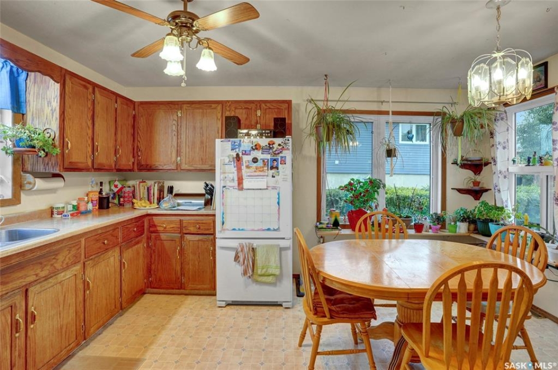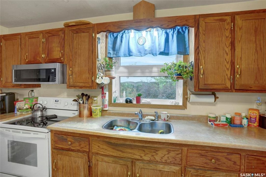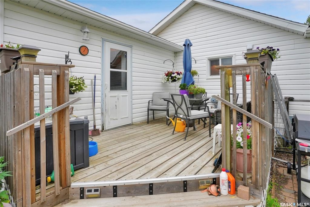 Discover the serenity of Tuxford, nestled in the heart of Saskatchewan, where peace & tranquility define everyday life. Just 15 minutes from Moose Jaw and conveniently close to Buffalo Pound Lake and the K+S Mine, Tuxford provides the perfect blend of rural charm and easy access to urban amenities, making it ideal for families & retirees alike. This charming bedroom community offers a welcoming environment with a home that has updates to ensure comfort and convenience. Key improvements APV - include a kitchen expansion in 2000, featuring ample cabinetry and workspace for culinary endeavors and entertaining. The basement walls and floors redone in 1999. Over the past decade, windows have been replaced, the exterior boasts recent updates such as shingles, soffits, fascia, eaves, and siding, ensuring a well-maintained appearance. Updated utilities include a H/E furnace, central air conditioning, water softener, and water heater, all contributing to modern comfort. The home welcomes you with interlocking brick walkways leading to a warm foyer. The spacious living room flows into the dining and kitchen areas, creating an inviting setting for gatherings. The main floor features 3 bedrooms and a 4pc. bathroom. The unfinished lower level with laundry facilities, abundant storage, and a utility area for home maintenance needs. Outdoors, a private and serene yard awaits, complete with a deck overlooking a beautifully manicured, fenced space with mature trees and shrubs. A gazebo and patio offer charming spots for outdoor entertaining, while a garden and heated shed cater to gardening enthusiasts. The property accommodates future garage space & there is already RV/boat parking. Tuxford is more than just a place to live; it's a community where neighbors become friends and serene surroundings foster peace of mind. Whether raising a family or enjoying retirement, embrace this opportunity and make this wonderful community your new home.