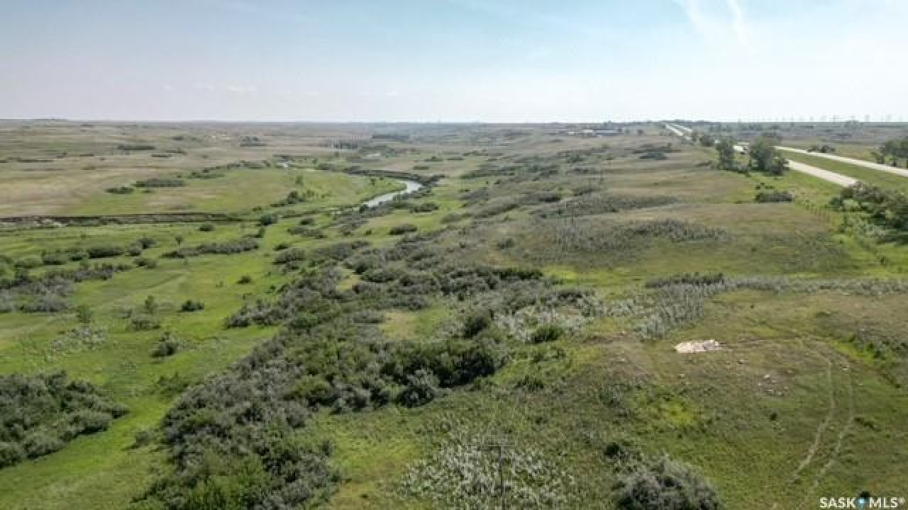 This native grass property is one of a kind, located just 3 miles east of the city of Moose Jaw. It is zoned as part of the river valley commercial development. It is two parcels as the Moose Jaw creek divides the land. The south boundary of the property borders the Trans Canada Highway. The property has a perimeter barbed wire fence. Utility Access. There is an existing power line on the property. There is an existing gas line on the East side of Highway #301. Directions: From Moose Jaw 3 miles East on highway #1, 3/4 mile north on #301 turn east at first turn south access grid road, turn and go south 1/4 mile on grid road.