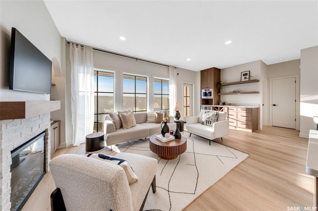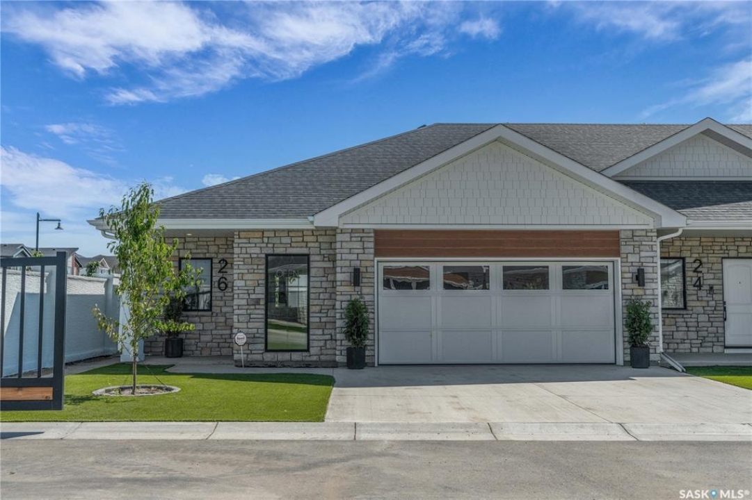 *SHOWHOME NOW OPEN! 26-720 Brighton Blvd!* Welcome to The Moët II, an exquisite bungalow townhome nestled within the private, gated community of Chateau Bungalows, crafted by the award-winning North Prairie Developments Ltd. This sophisticated 1,071 sq. ft. bungalow embodies modern luxury, complete with a spacious attached two-car garage. Every detail has been thoughtfully curated, from the premium Whirlpool built-in appliance package to the quartz countertops that exude elegance. The open-concept living areas feature high-end laminate flooring, while the bathrooms are adorned with luxury vinyl tile. Step inside to experience the grandeur of 9' ceilings and a luminous, airy living space. The living room, framed by floor-to-ceiling windows, invites you to bask in natural light while overlooking your private, picturesque backyard. This outdoor haven boasts a covered patio, low-maintenance turf landscaping, and privacy fencing. The primary bedroom is complete with a 4-piece ensuite and a spacious walk-in closet. For those needing additional space, an optional 1,417 sq. ft. basement development offers limitless potential. Whether you envision an additional bedroom, office, a private bathroom, a state-of-the-art theatre room for those cinematic family nights, the possibilities are endless. The exclusive Chateau Bungalows community extends beyond your front door. Indulge in private backyards, engage in a friendly match at the sleek pickleball court, or take in a show at the nearby amphitheater, just steps away. The scenic lakeside walks and tranquil paths provide a perfect retreat from the bustling world, while the trendy shops, dining, and vibrant entertainment of Brighton are only moments away. Experience the epitome of refined living at Chateau Bungalows, where luxury meets lifestyle in one of Brighton's most coveted locations. Images shown are for reference purposes only, and details are subject to change without notice.