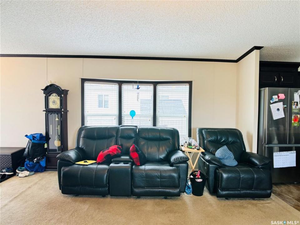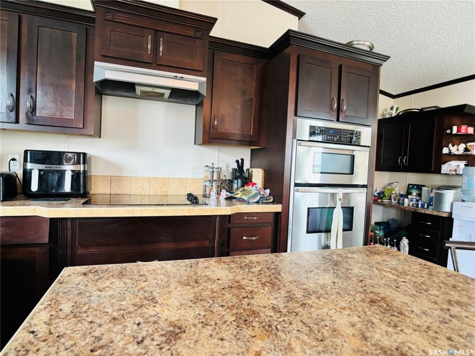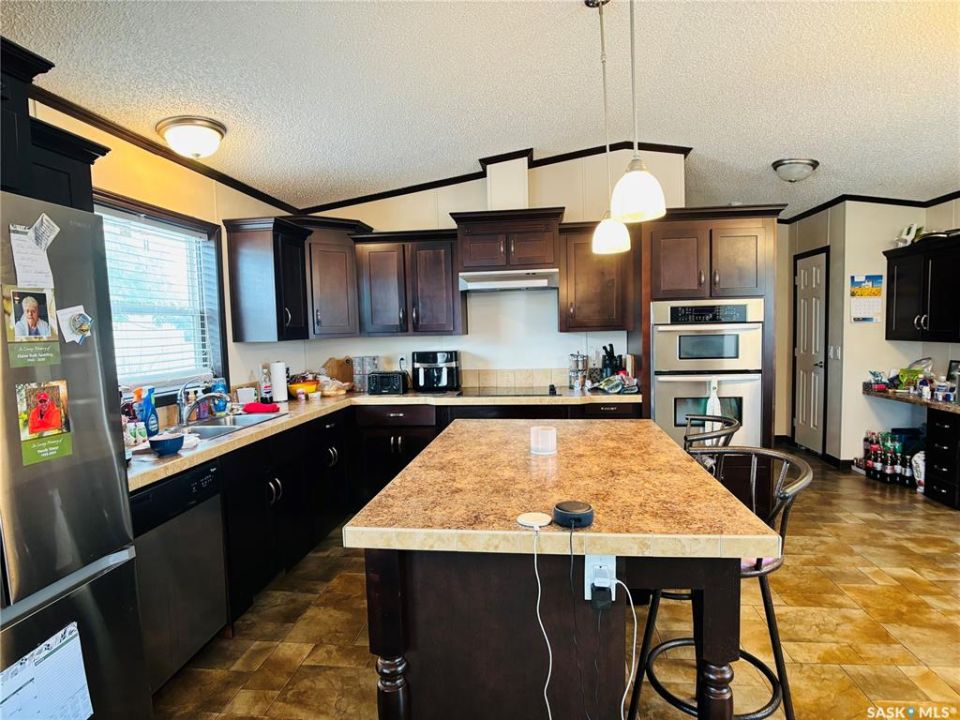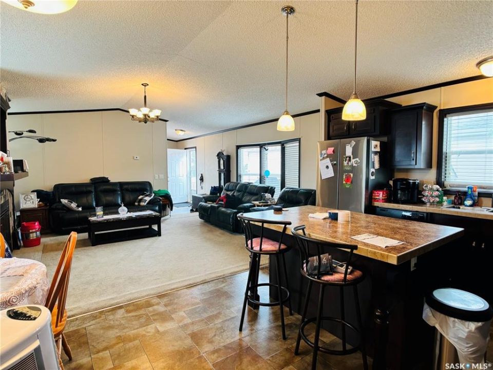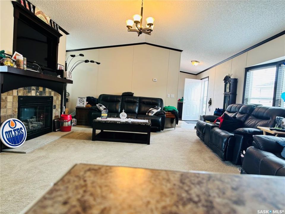Welcome to this well-maintained 1,520 square foot home, built in 2012 and situated on its own lot—no lot rent! This spacious and functional home features an open-concept layout with a generous kitchen, dining, and living space ideal for entertaining or family living. The heart of the home is the large kitchen, offering dark wood cabinetry, ample counter space, a center island with seating, a large pantry area and stainless steel appliances, including a double wall oven. The inviting living room is filled with natural light creating a bright and airy atmosphere throughout the day. The focal point of this warm and welcoming space is the built-in gas fireplace—perfect for cozy evenings or adding ambiance year-round. The open layout flows seamlessly into the kitchen and dining areas, making it ideal for both relaxing at home and entertaining guests. Whether you're enjoying quiet mornings with a book or hosting friends and family, this living room offers the perfect blend of comfort and style. The primary suite includes a spacious en-suite bathroom with dual sinks, abundant storage, a walk-in shower, soaker tub and two large closets. The two additional bedrooms are thoughtfully situated at the front of the home and are both well-sized and offer flexibility for guests, a home office, or extra living space. Additional highlights include thoughtful touches like the built-in office space off the dining room, large entryway with double closets, extra storage by the bedrooms and a large laundry room with access to the deck. This move-in ready home close to both the ball diamonds and soccer fields makes it perfect for those looking for comfort, functionality, and ownership freedom. Schedule your private showing today!