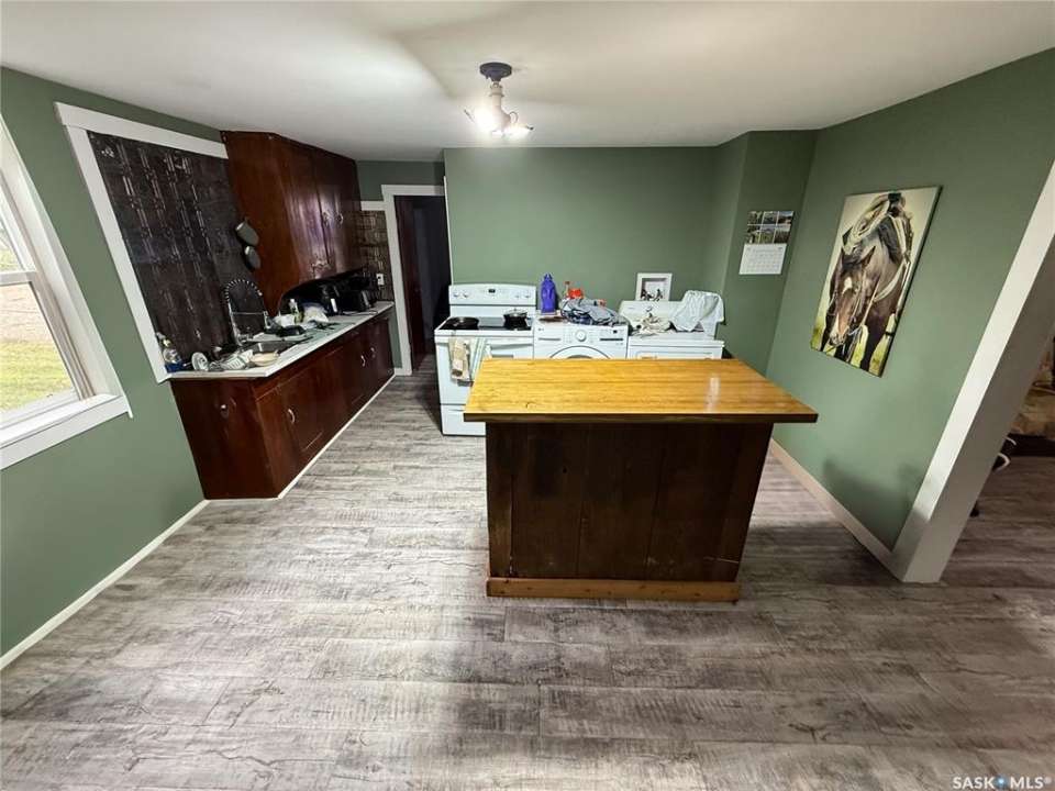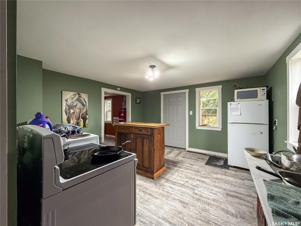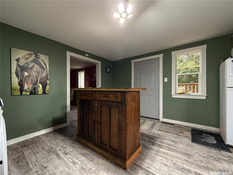 Welcome to 224 Front Street in Eastend — an affordable, move-in ready home that proves great things come in charming, low-maintenance packages. This 1-bedroom bungalow sits in a prime location on the edge of town, offering quiet living, lane access out back, and all the important updates that make settling in easy. Step inside through the insulated 4x20 three-season sunroom — the perfect spot to enjoy your morning coffee or unwind with a glass of wine. From here, you're welcomed into a cozy living room filled with natural light. To the right, the spacious bedroom offers a good-sized closet & plenty of natural light. The kitchen and dining area are functional, complete with a center island and convenient main floor laundry. Every corner feels well cared for and thoughtfully refreshed. Since 2022, this home has undergone significant updates: some new drywall, flooring, and windows throughout, a new roof (2022), updated appliances, a new side door, and electrical upgrade including a modern panel (2023). A gas furnace was installed in 2019, and the water heater is estimated at 10 years old — and in Eastend, they've been known to last up to 30! It's safe to say the heavy lifting has been done. Located in the friendly and picturesque community of Eastend — nestled in the Frenchman River Valley and right along the iconic Red Coat Trail — this home offers access to scenic hiking, the famous T.rex Discovery Centre, boutique shops, local restaurants, and a true small-town sense of community. Whether you're a first-time buyer, an investor, a retiree, or simply someone looking for a slower pace and affordable living, you'd be hard-pressed to find a better deal than this $90K gem. Why rent when you can own in Eastend? The opportunity is here — all that's missing is you.