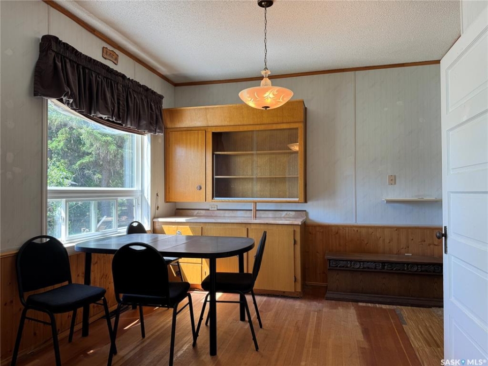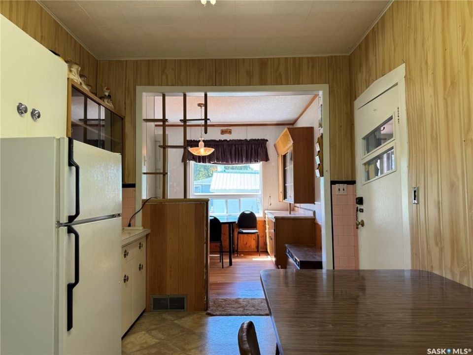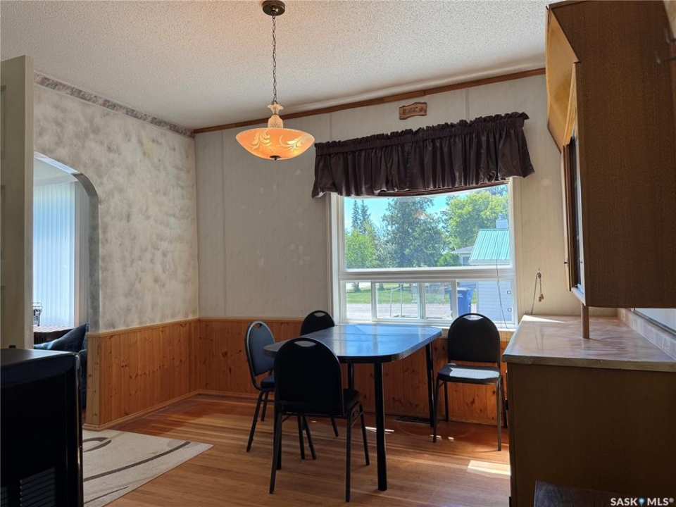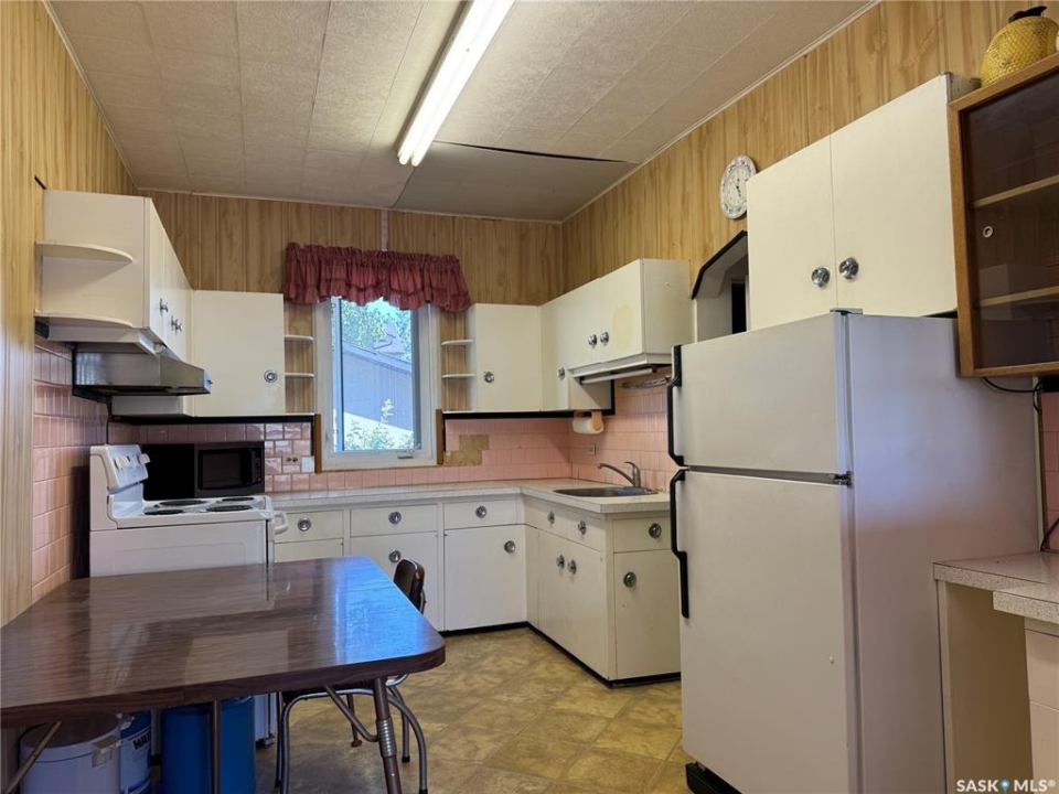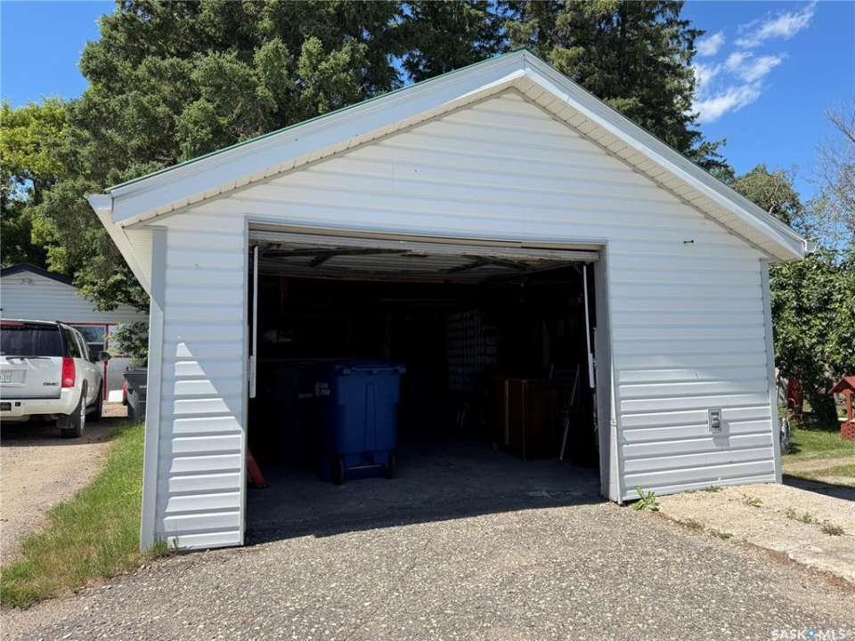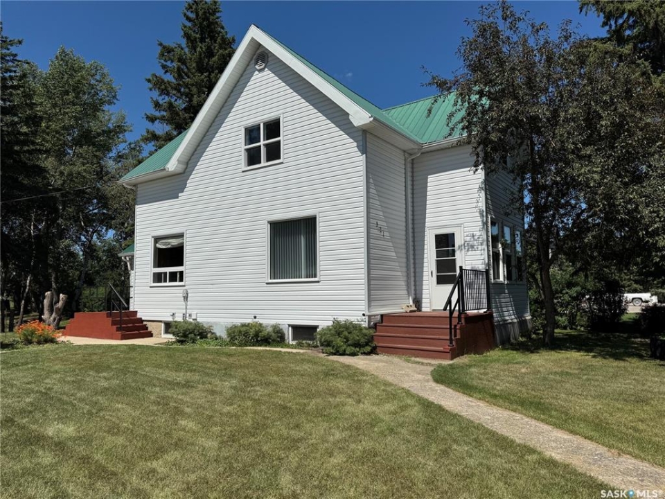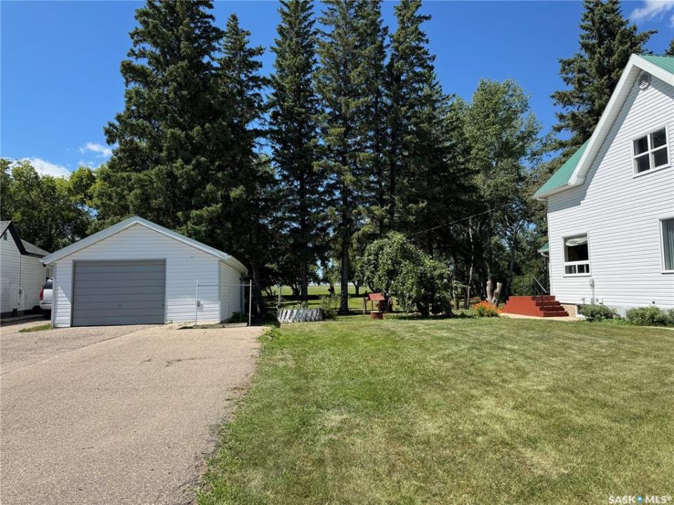 Welcome to 521 Main Street in Raymore—a charming 1940s family home nestled on a stunning 100' × 223' tree-lined lot that backs onto the community swimming pool, offering a park-like setting perfect for kids and outdoor gatherings. With 1,748 sq?ft of warm, welcoming living space, this character-filled gem features a main-floor bedroom and bath, a large living room, dining room, and kitchen, plus front and back porches ideal for relaxing or entertaining. Upstairs you'll find three cozy bedrooms and a nook for study or play, while the basement includes a cellar with convenient outside access. A detached single-car garage with bonus storage rounds out this lovingly maintained home, which includes updated siding and windows (3 years ago) and a durable tin roof (10 years old).
