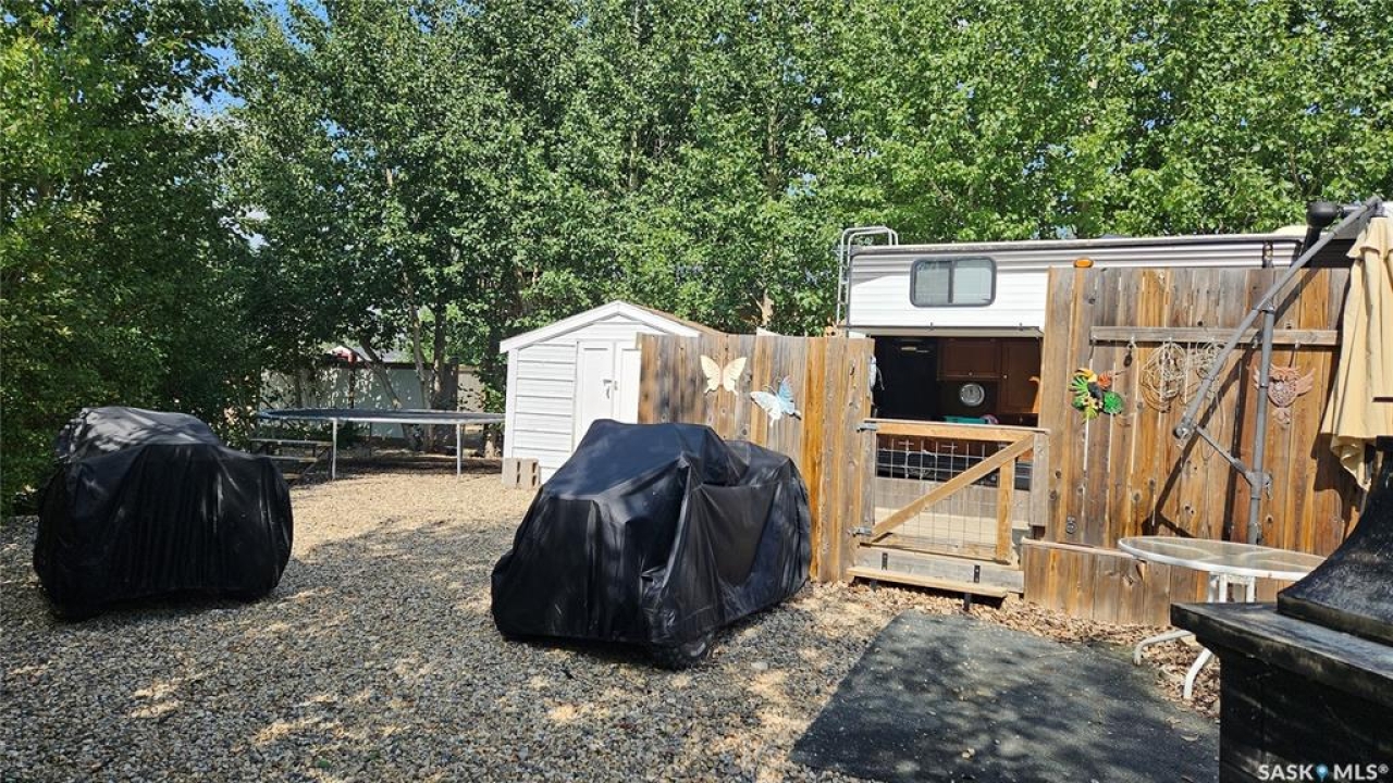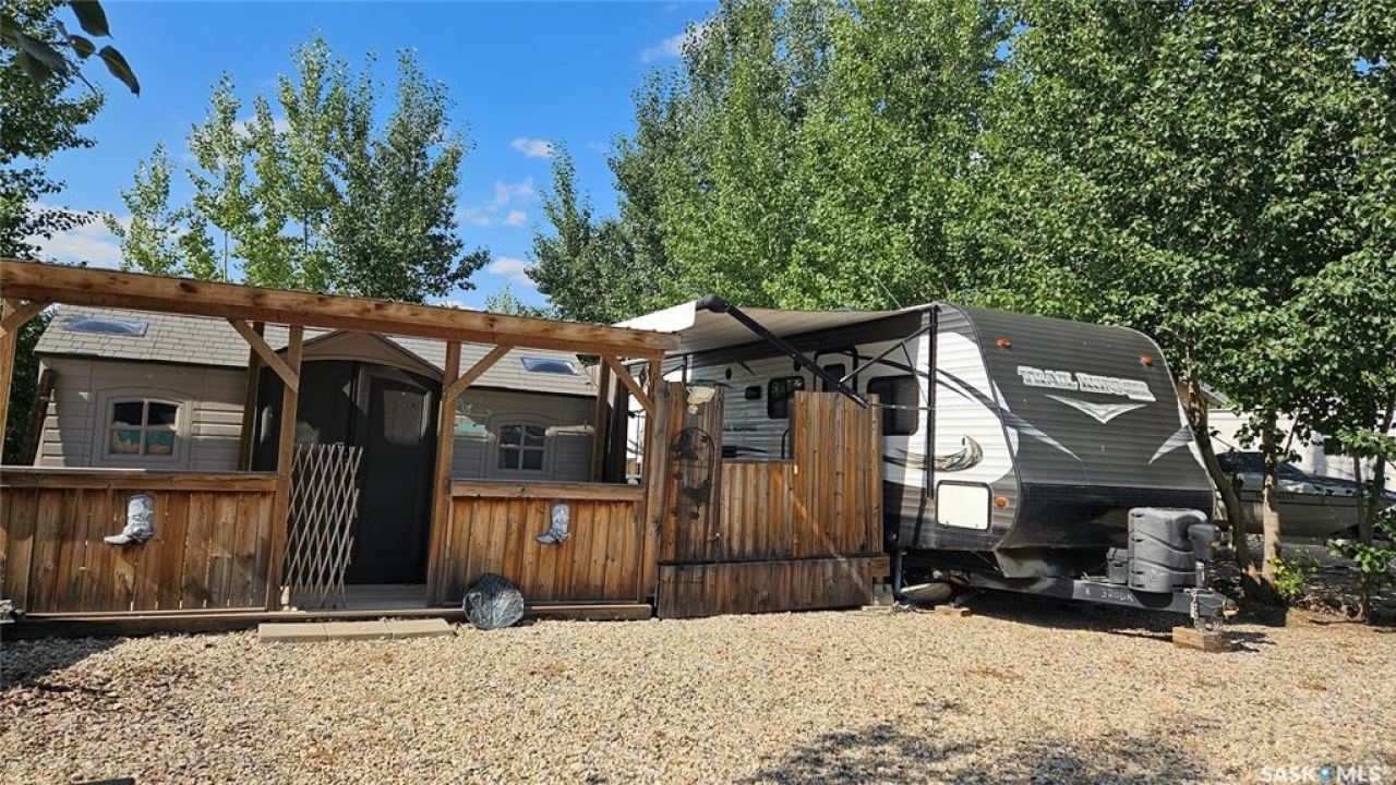 Move-In Ready Getaway – Titled Corner Lot. This private, move-in ready retreat is the perfect escape. Nestled on a large, titled corner lot, the property is designed for low-maintenance living so you can spend less time on upkeep and more time making memories. Whether you're sipping your morning coffee on the deck or unwinding after a day on the water with friends and family, this getaway offers comfort and convenience. With room to sleep 9 in the 32' 2016 Trail Runner Trailer with electric awning and outdoor kitchen, it's ideal for hosting guests or enjoying quiet weekends away. The lot includes power, septic, and a fully graveled yard—ready for immediate use. The development features fantastic amenities including a playground, public beach, marina, and more, making it a fun and relaxing destination for all ages. Don't miss this opportunity to own a hassle-free, private retreat just steps from the lake.