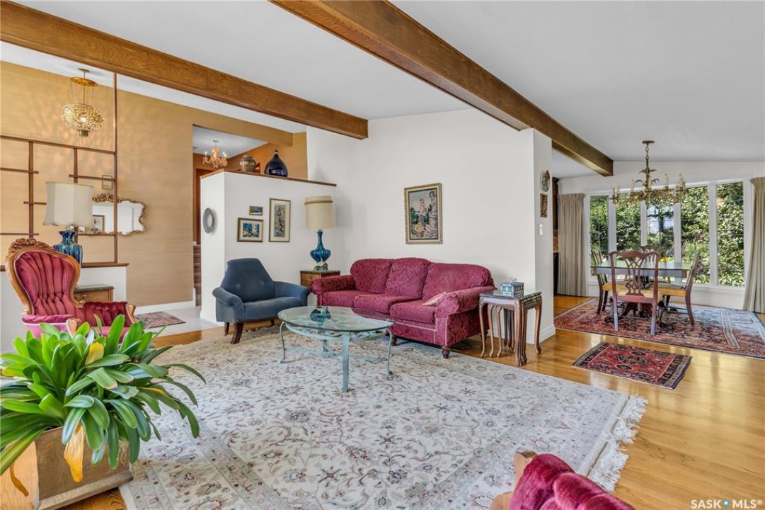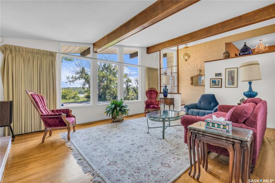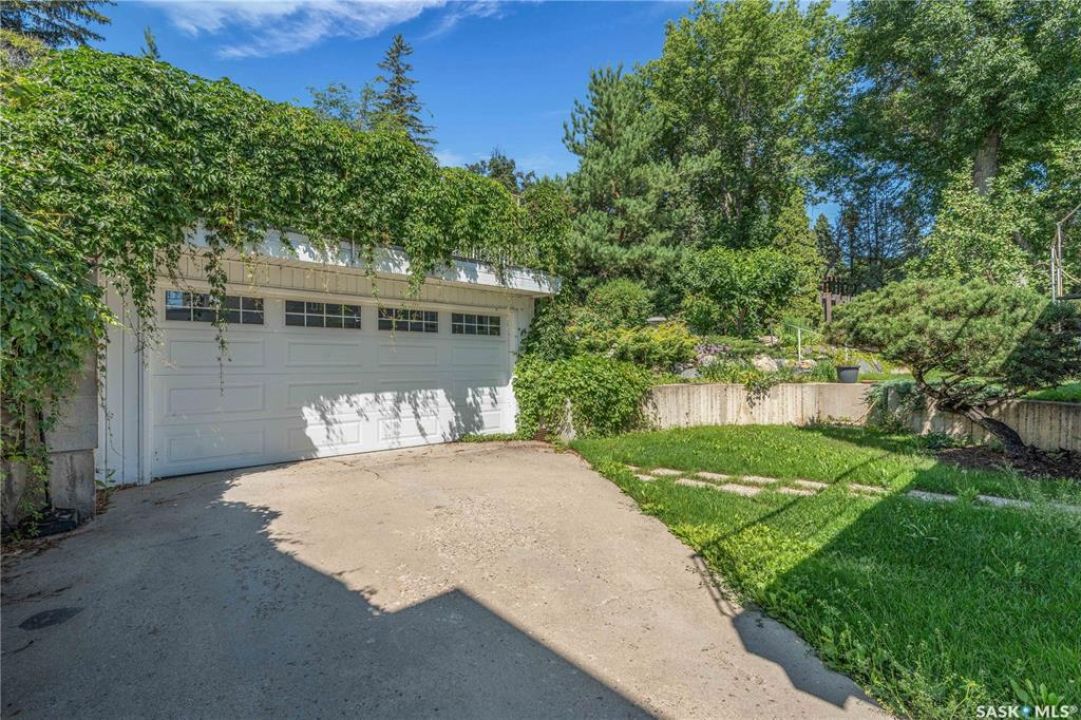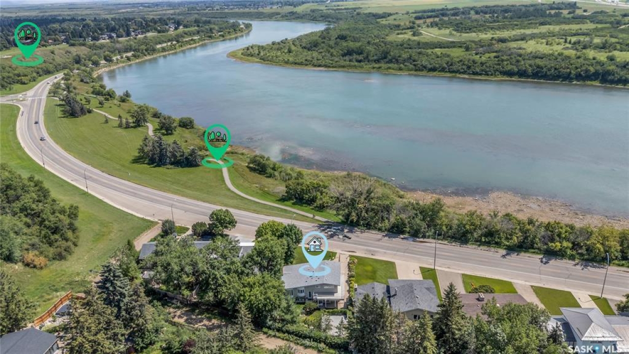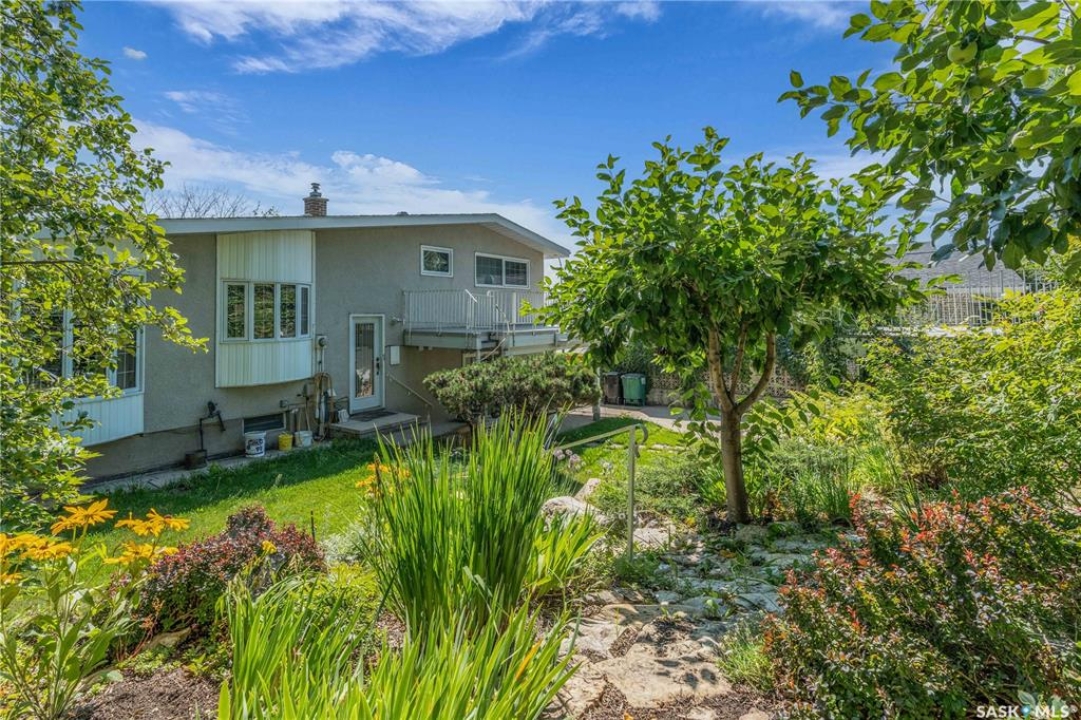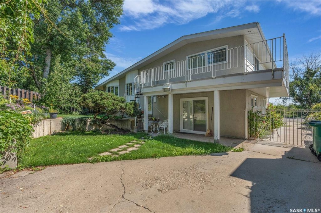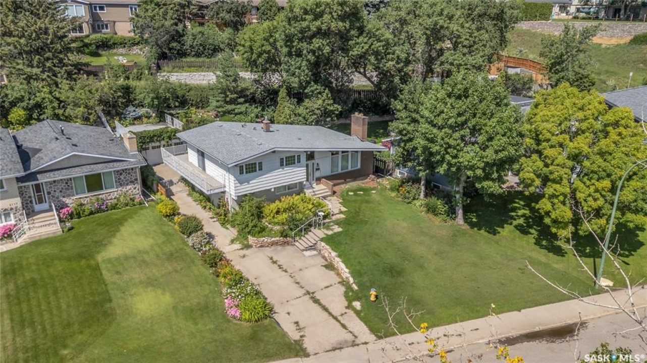 Welcome to 2121 Spadina Crescent East in River Heights. Wonder views and lifestyle awaits in this spacious four-level split located on the iconic South Saskatchewan River. This home is full of charm and offers a distinct mid-century modern vibe that truly must be seen to be appreciated. The top level houses the primary bedroom complete with a two-piece ensuite and access to a wraparound deck with stunning river views. The same level also includes two additional bedrooms and a full bathroom. The main floor boasts vaulted ceilings with exposed beams, a spacious living room, a functional dining area, and a updated kitchen with stone countertops and built-in Miele appliances. Laundry is also conveniently located on this level. The third level which is a walk out offers a bright and welcoming family/rec room, a three-piece bathroom, a storage room, and direct access to the rear yard via a walkout door. A spiral staircase connects the yard to the second-floor balcony. The fourth level is fully developed, adding even more usable living space. Outside, enjoy mature landscaping in both the front and back yards. The detached garage includes a rooftop viewing platform—a perfect place to take in the incredible views of Spadina Crescent and the river. Over the years, this home has been lovingly maintained and features PVC insert windows, newer shingles, and numerous other thoughtful upgrades.