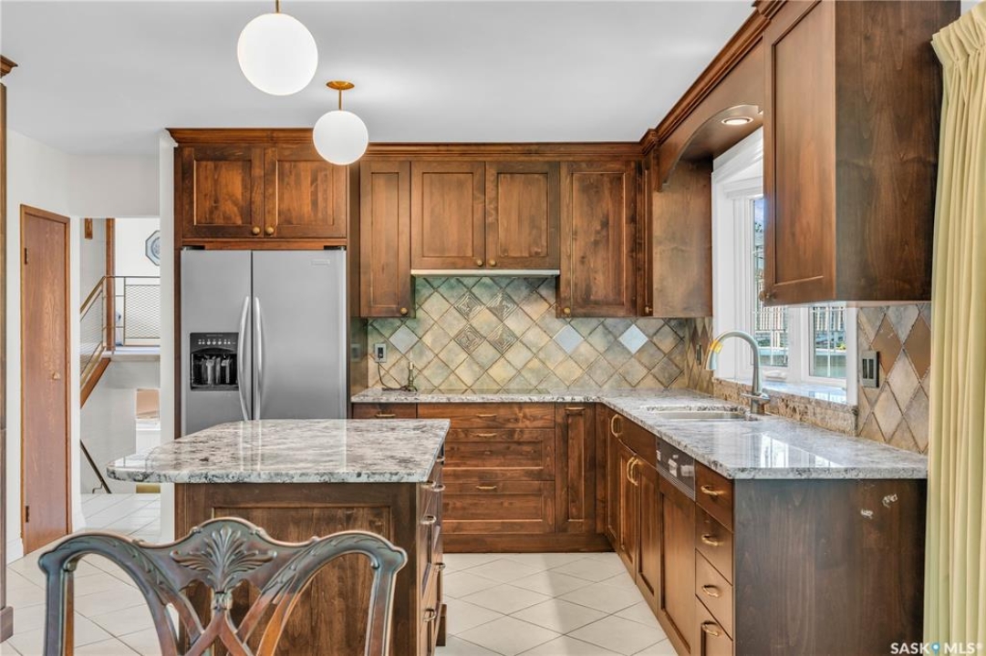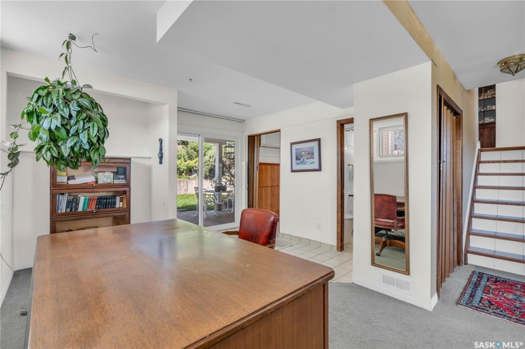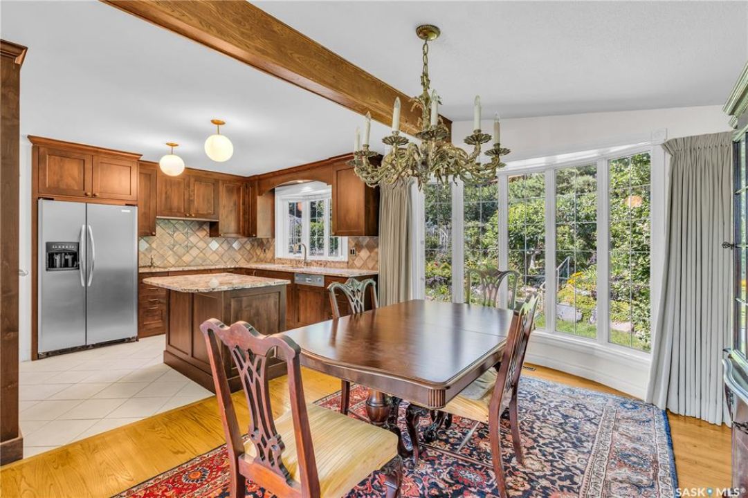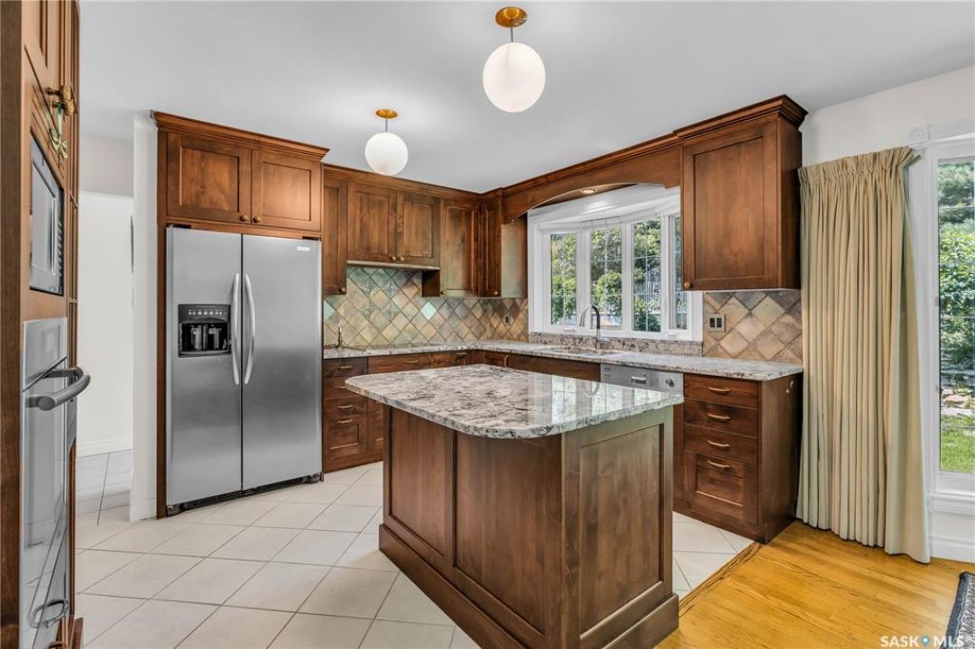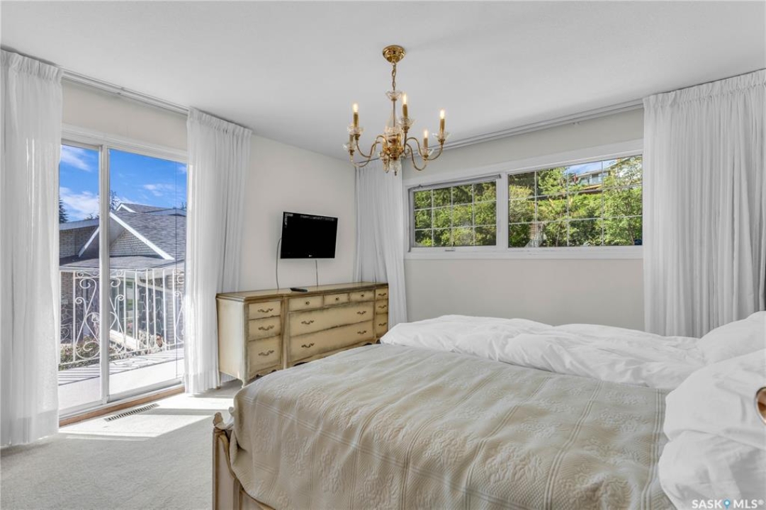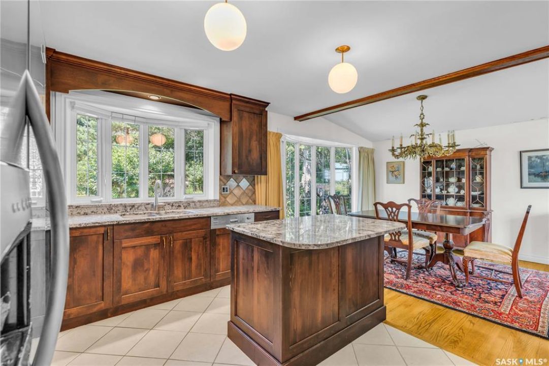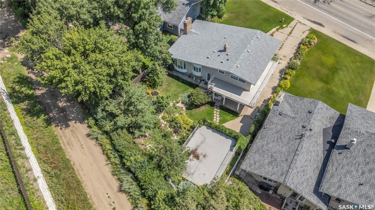 Welcome to 2121 Spadina Crescent East in River Heights. Wonder views and lifestyle awaits in this spacious four-level split located on the iconic South Saskatchewan River. This home is full of charm and offers a distinct mid-century modern vibe that truly must be seen to be appreciated. The top level houses the primary bedroom complete with a two-piece ensuite and access to a wraparound deck with stunning river views. The same level also includes two additional bedrooms and a full bathroom. The main floor boasts vaulted ceilings with exposed beams, a spacious living room, a functional dining area, and a updated kitchen with stone countertops and built-in Miele appliances. Laundry is also conveniently located on this level. The third level which is a walk out offers a bright and welcoming family/rec room, a three-piece bathroom, a storage room, and direct access to the rear yard via a walkout door. A spiral staircase connects the yard to the second-floor balcony. The fourth level is fully developed, adding even more usable living space. Outside, enjoy mature landscaping in both the front and back yards. The detached garage includes a rooftop viewing platform—a perfect place to take in the incredible views of Spadina Crescent and the river. Over the years, this home has been lovingly maintained and features PVC insert windows, newer shingles, and numerous other thoughtful upgrades.