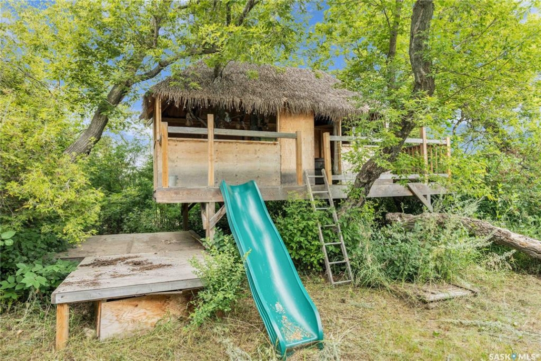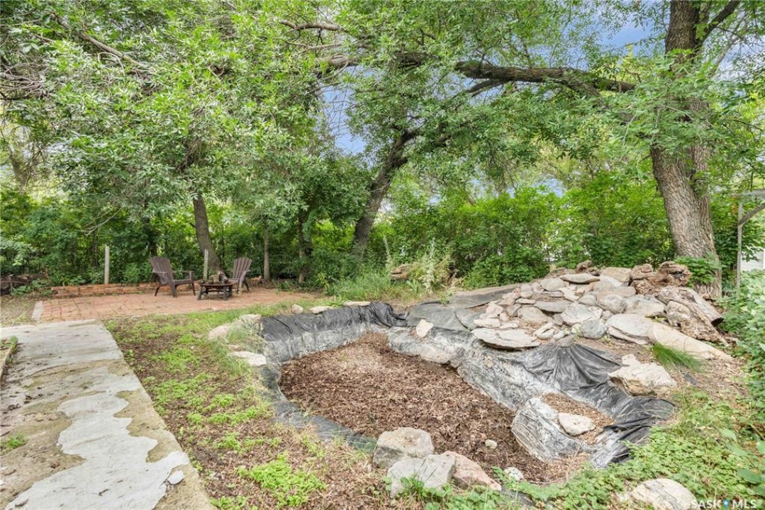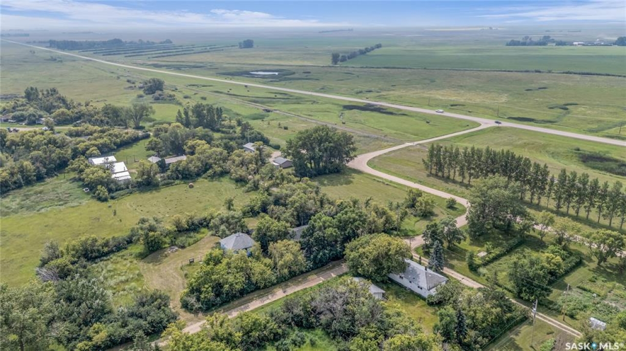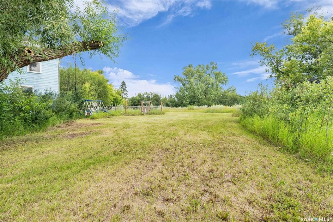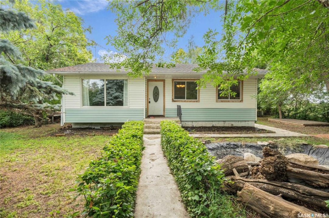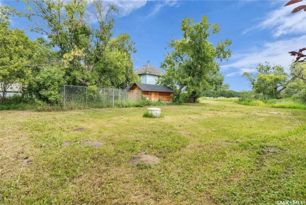 Situated on a generous double lot surrounded by mature trees and privacy hedges, this charming property offers a peaceful setting with loads of potential. The main bungalow has seen thoughtful updates over the years and includes 2 bedrooms, 1 full bathroom, and a dedicated laundry room. In 2023, many updates were professionally completed, including new drywall and trim throughout, plus drywall replaced under the bedroom and bathroom windows. The kitchen windows were updated around 10 years ago, and an old electrical panel was removed from the kitchen, leaving a perfect nook for shelving or a coffee bar. A 200-amp panel in the utility/laundry room was upgraded about 10 years ago. There is electric baseboard throughout, and existing ductwork and natural gas service to the house—making furnace installation straightforward if the buyer prefers. There's also wiring for both an electric fireplace in the living room and power to the fishpond (currently shut off at the breaker). The crawlspace provides utility access and houses the water pump. A private well, drilled approximately 7 years ago and 14 feet deep, includes heat tape to prevent freezing. The septic system sits on the southwest side of the yard and is marked with wood covering. Outside, enjoy a bricked patio, waterfall-fed pond, chokeberry bushes, and four ornamental trees that attract birds and add seasonal color. There's also a treehouse with slide, a fenced animal pen, and multiple sheds, including a chicken and goat pen—YES! You can have goats or chickens! A large open area is ready for planting a garden and preserving to your heart's content. At the back of the property sits a second dwelling—the "old blue house." This heritage-style two-storey is a fixer-upper full of character and possibility. It's currently used for storage (no interior photos available) but could be restored into something truly special with the right vision. Don't miss your chance to grab your slice of this peaceful small-town paradise!