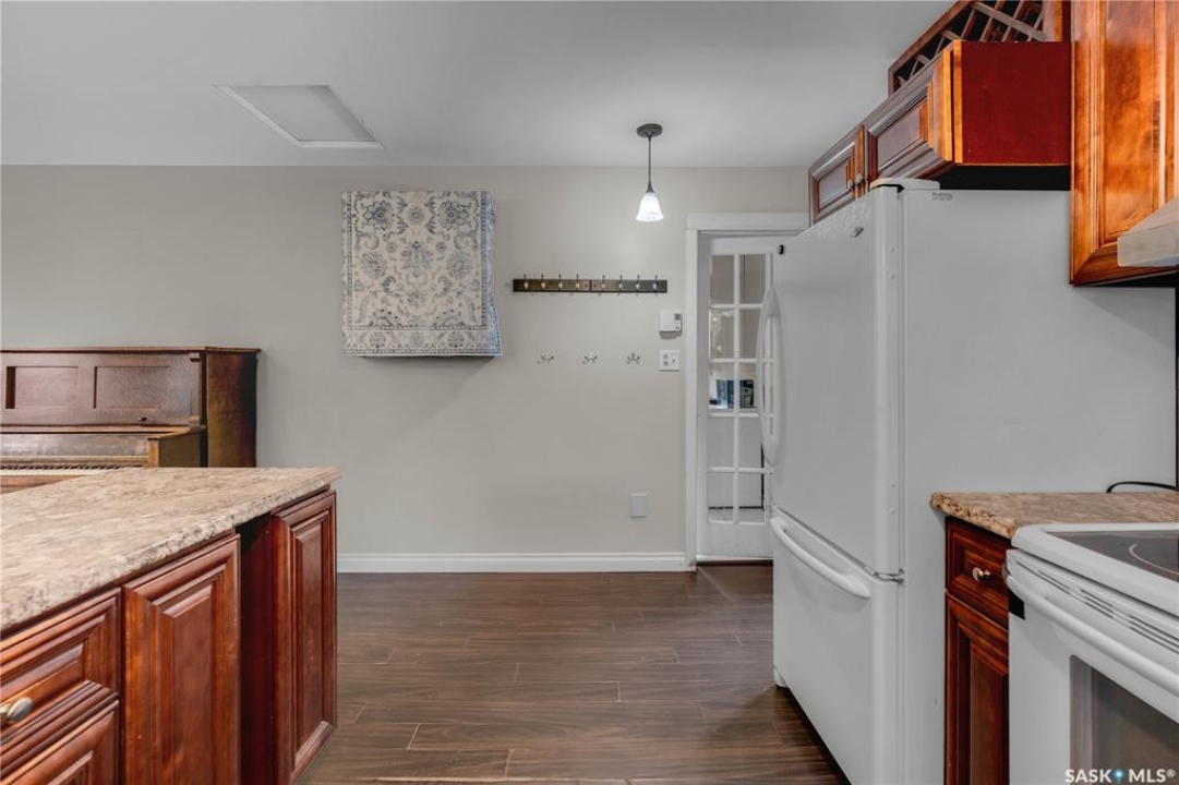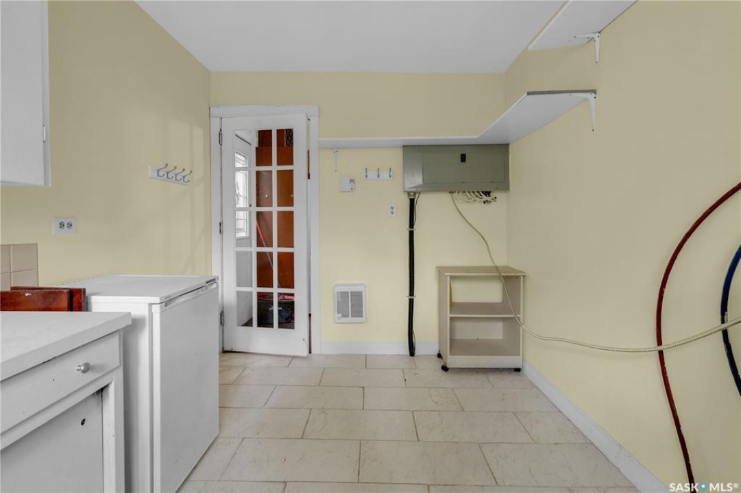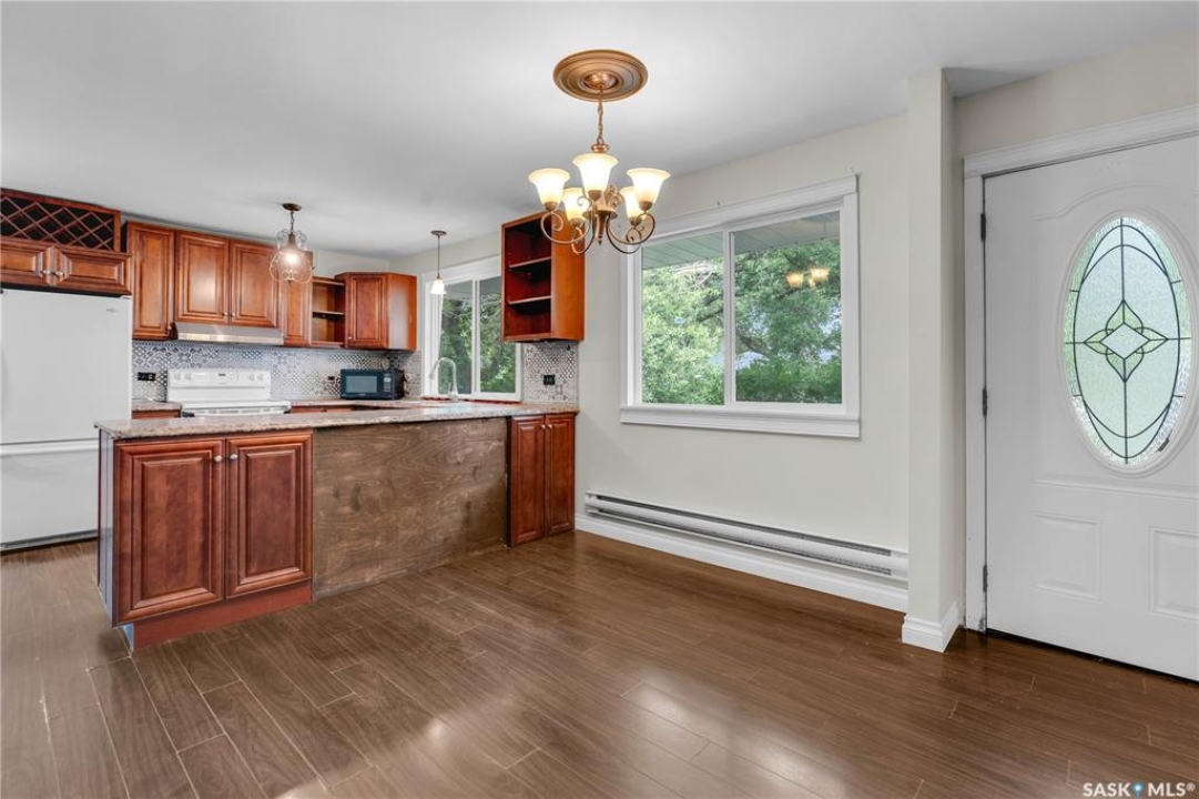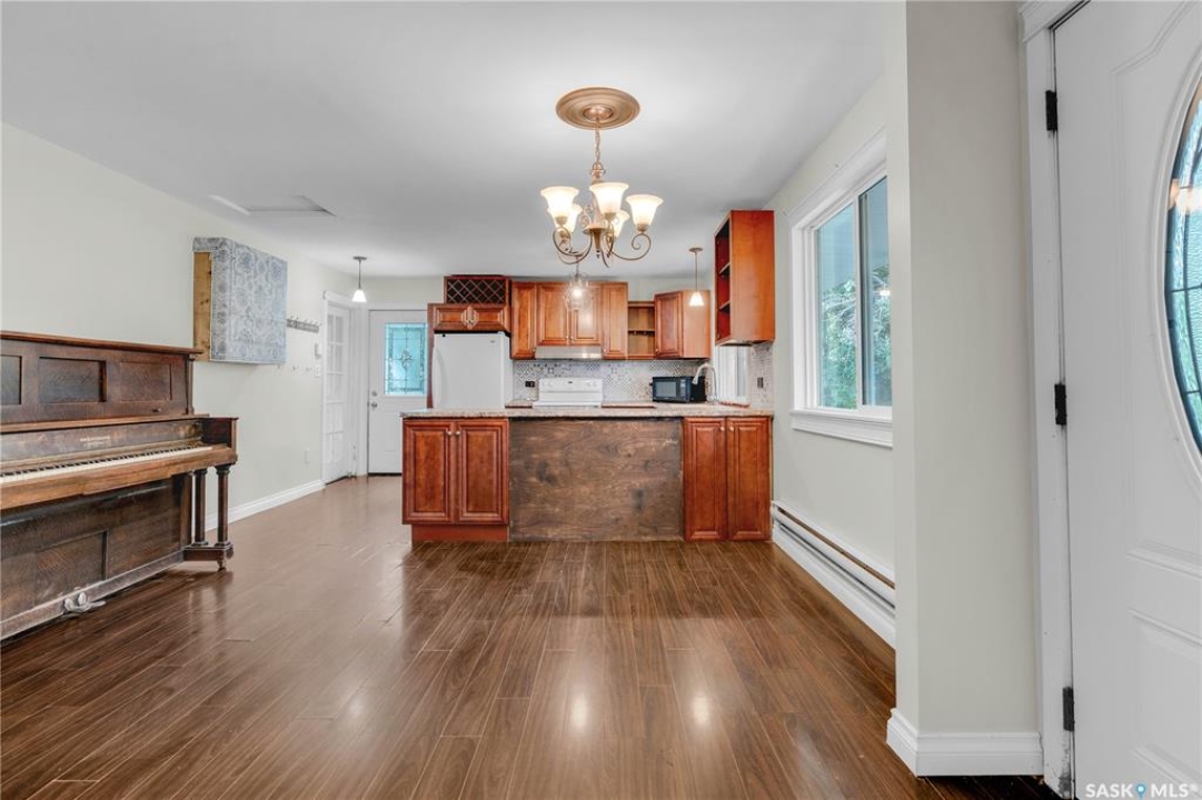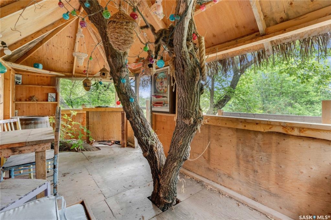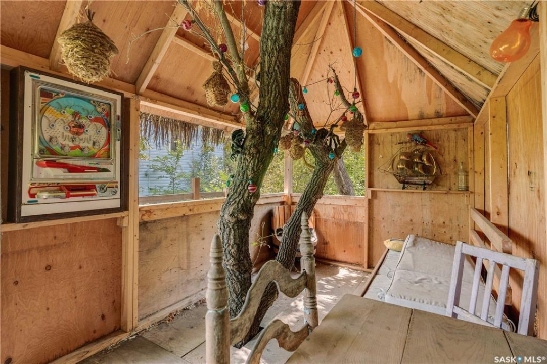 Situated on a generous double lot surrounded by mature trees and privacy hedges, this charming property offers a peaceful setting with loads of potential. The main bungalow has seen thoughtful updates over the years and includes 2 bedrooms, 1 full bathroom, and a dedicated laundry room. In 2023, many updates were professionally completed, including new drywall and trim throughout, plus drywall replaced under the bedroom and bathroom windows. The kitchen windows were updated around 10 years ago, and an old electrical panel was removed from the kitchen, leaving a perfect nook for shelving or a coffee bar. A 200-amp panel in the utility/laundry room was upgraded about 10 years ago. There is electric baseboard throughout, and existing ductwork and natural gas service to the house—making furnace installation straightforward if the buyer prefers. There's also wiring for both an electric fireplace in the living room and power to the fishpond (currently shut off at the breaker). The crawlspace provides utility access and houses the water pump. A private well, drilled approximately 7 years ago and 14 feet deep, includes heat tape to prevent freezing. The septic system sits on the southwest side of the yard and is marked with wood covering. Outside, enjoy a bricked patio, waterfall-fed pond, chokeberry bushes, and four ornamental trees that attract birds and add seasonal color. There's also a treehouse with slide, a fenced animal pen, and multiple sheds, including a chicken and goat pen—YES! You can have goats or chickens! A large open area is ready for planting a garden and preserving to your heart's content. At the back of the property sits a second dwelling—the "old blue house." This heritage-style two-storey is a fixer-upper full of character and possibility. It's currently used for storage (no interior photos available) but could be restored into something truly special with the right vision. Don't miss your chance to grab your slice of this peaceful small-town paradise!