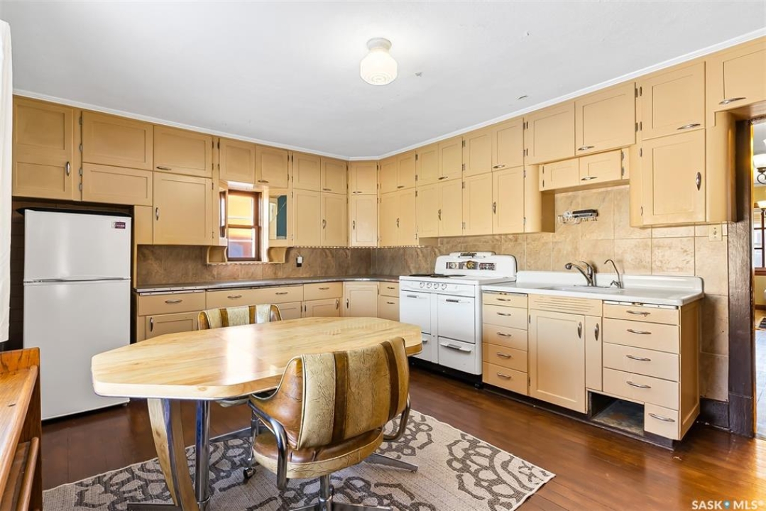 Tucked into one of the city's most established neighborhoods, this unique property offers the perfect blend of character and opportunity. Step onto the inviting front porch—ideal for quiet mornings, evening chats, or storing seasonal gear. Once inside, you'll discover a spacious main level featuring a bright living room, a dedicated dining space for hosting, and a large kitchen with a casual dining nook and unique vintage-style. A versatile main-floor room—currently set up as a home office—could serve as a guest bedroom or flex space. Upstairs, you'll find three well-sized bedrooms along with a full 4-piece bathroom. The expansive primary bedroom offers the option to divide the space and create an additional bedroom, making five total if desired. The basement currently includes utilities, storage, laundry and a 3-piece bathroom, currently open to the rest of the space but easily enclosed to suit your needs. Throughout the home, you'll notice timeless touches: hardwood floors, original wood trim, and a beautifully crafted stair railing. Upgrades include a high efficient furnace, water heater, exterior paint and more. Just minutes from downtown, this home is ideal for anyone who values heritage details and central convenience. Come see the potential for yourself—book your private tour today!