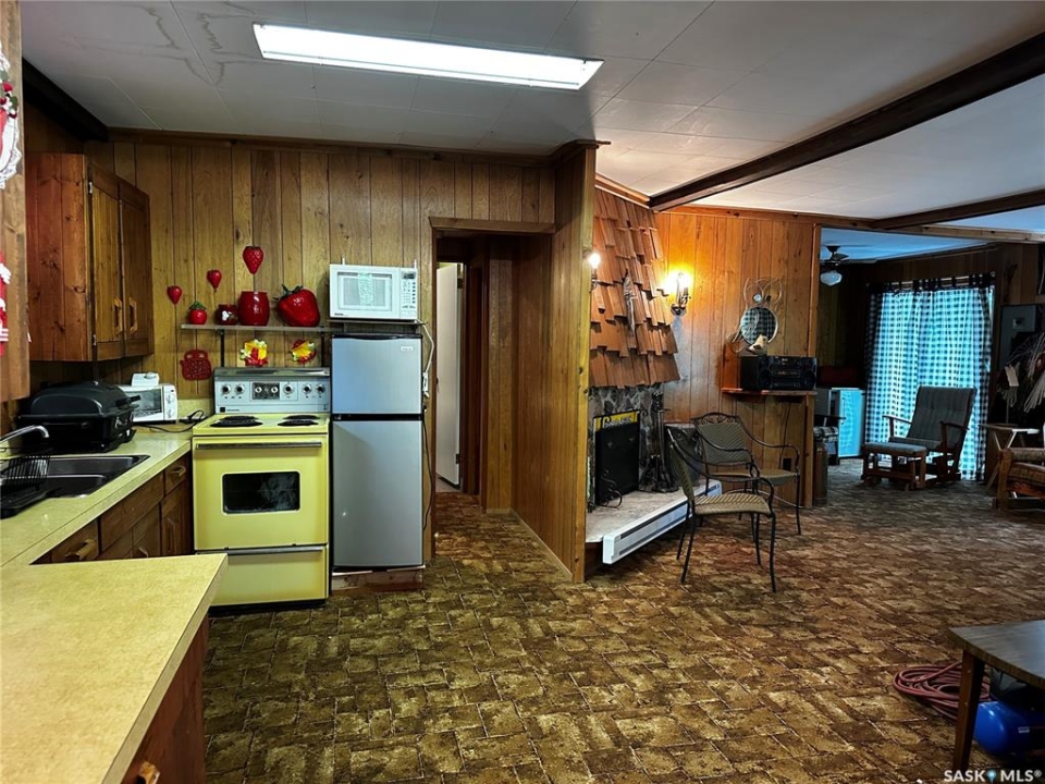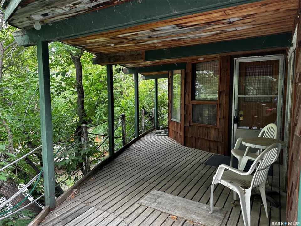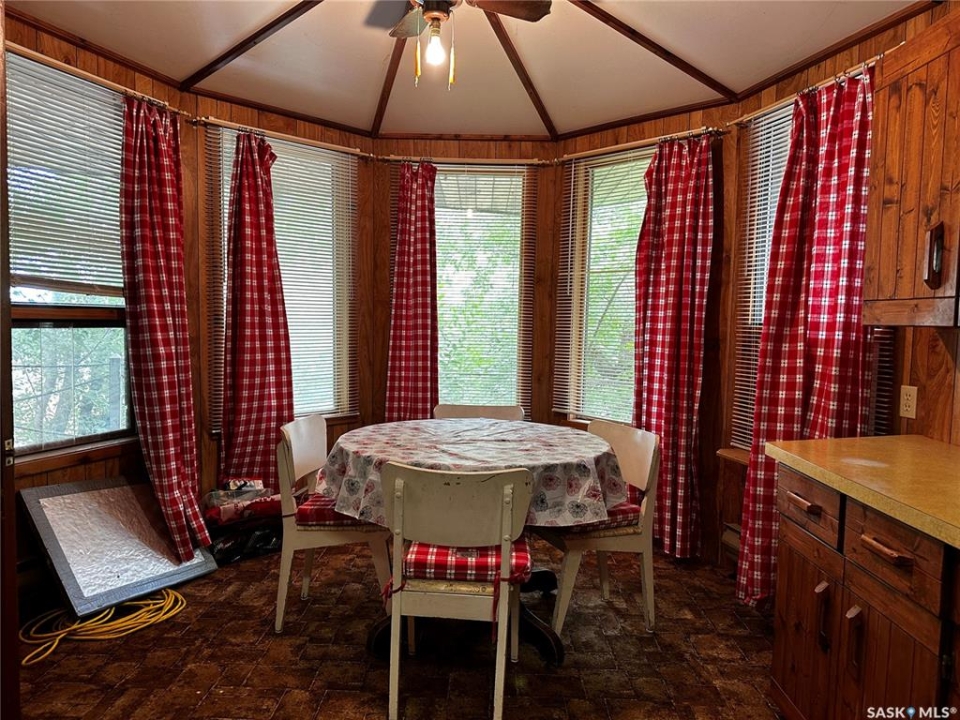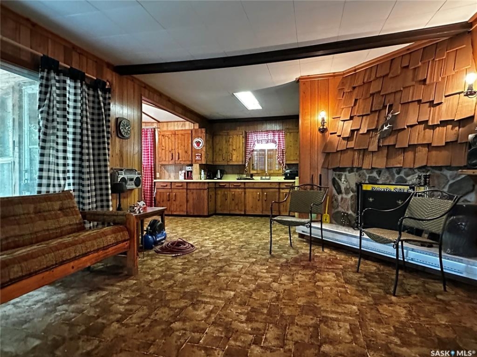 Lake Life Made Easy! Tucked away in the trees and just steps from Hunts Cove—one of the most sought-after public beaches on Jackfish Lake—this seasonal cabin offers the best of both worlds: convenient beach access without the upkeep! Tucked into the trees, this cozy retreat is incredibly private with ample parking and no grass to mow. Just show up, unpack, and relax—the cabin comes fully furnished, turn-key, and ready to go! The open-concept layout is ideal for family gatherings and cozy weekends. The dining area can accommodate a crowd, while the adjacent kitchen flows into a warm and welcoming living room, complete with a wood-burning fireplace. There are two comfortable bedrooms inside, plus a bunkhouse off the wraparound deck that's currently used as a shed but could be easily converted into additional sleeping space. A roomy bathroom with a corner shower offers a great place to rinse off after a day at the beach. Cap off your evenings around the firepit, sharing stories and s'mores with friends and family under the stars. This is a rare opportunity to own a low-maintenance, memory-making lakeside escape. Don't miss out on this Hunts Cove