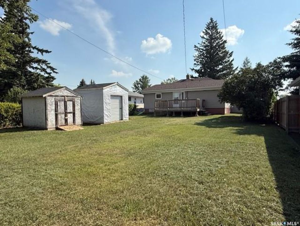 Welcome to 375 Scotia Street in Melville, SK—a well-maintained and versatile 1,262 sq ft bungalow located in an established neighbourhood. Built in 1957, this home offers a practical layout with key updates, making it a great fit whether you're searching for a personal residence or an investment opportunity. The main floor includes three bedrooms, a 4-piece bath, a spacious living/dining area, and a functional kitchen with direct access to a 12' x 16' deck—ideal for relaxing or entertaining. Main floor laundry adds convenience, and hard surface flooring runs throughout, except for two carpeted bedrooms. Recent mechanical upgrades include a high-efficiency natural gas furnace (2023), natural gas water heater, and a 100-amp electrical panel. The home also features PVC windows, architectural shingles (2025) and several exterior updates completed approximately 8 years ago: siding, soffit, fascia, eaves, and the deck. A full basement under the main part of the home provides excellent storage and development potential. There's also access to a bonus room with its own 60-amp panel and baseboard heating—perfect for a hobby space, home office, studio, or whatever fits your lifestyle. The 50' x 140' lot offers plenty of backyard space, along with two sheds: an 8' x 8' unit and a 10' x 10' Nu-Fab shed with a roll-up door and over 9 feet of central height—great for storage. . This home offers a great balance of function, flexibility, and potential.