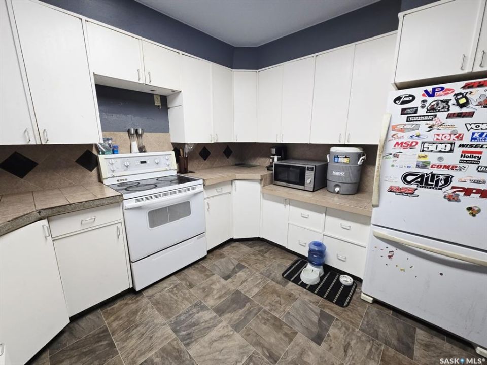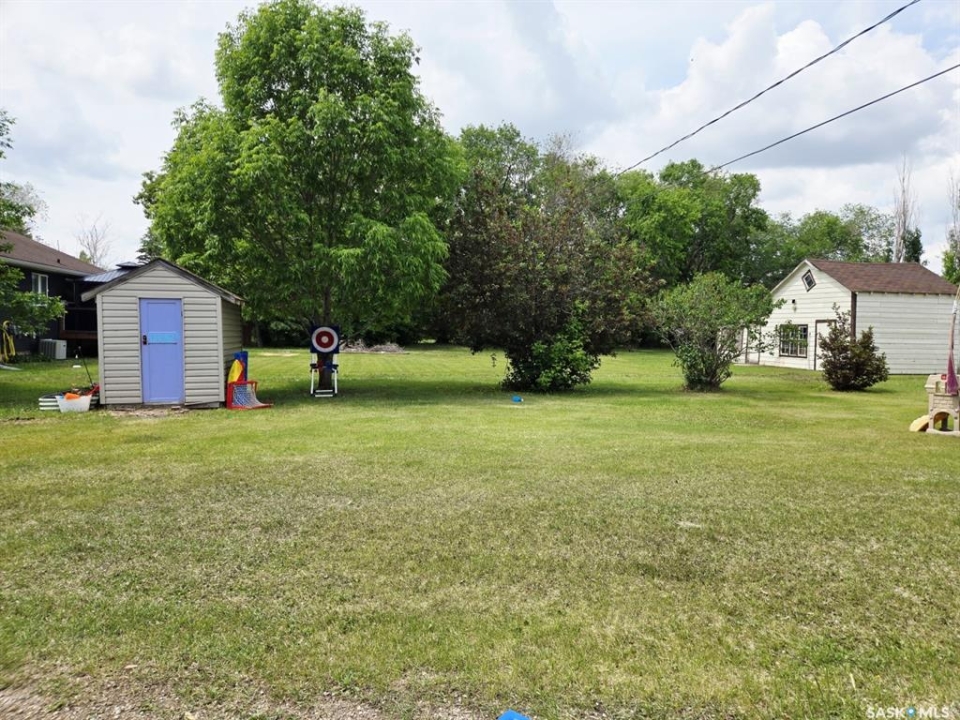 Located in the quiet village of Drake, SK, a less than 30 minute commute to BHP Jansen and Nutrien Potash. This 1,310 sq ft bungalow sits on 0.7 acres and is immediately adjacent to the Drake elementary school and playground, Drake Park and walking paths and the Drake Sports arena. The main floor features 3 bedrooms, a full bath, spacious entry-way and many closets. The large eat-in kitchen boasts plenty of natural light thanks to 2 south-facing windows, ample cupboard space and counter seating. The extra large living room provides plenty of space for playing, relaxing or entertaining. Downstairs you will find a partially finished basement, ready for you to make it your own. Included in the space is a large utility/laundry room, storage closets, extra bedroom/office space and room to develop a second bathroom and living area. The most impressive feature of this property has to be the backyard. With 0.7 acres, this property provides ample parking space for 6 vehicles. No street parking necessary! The yard includes plenty of mature trees and privacy hedging, a firepit area, and lots and lots of space. This is a yard that needs to be seen to be appreciated. Located towards the back of the property is the two-story garage/shop that features a concrete floor, 3 car bays; 2 standard and 1 extra tall. Most recent upgrades: Shingles 2012 Water heater 2022 Deck railing 2025 Plumbing fixtures 2025