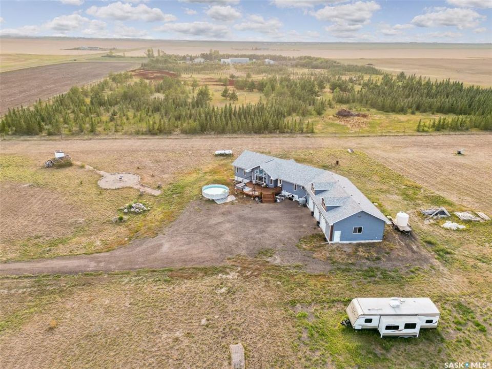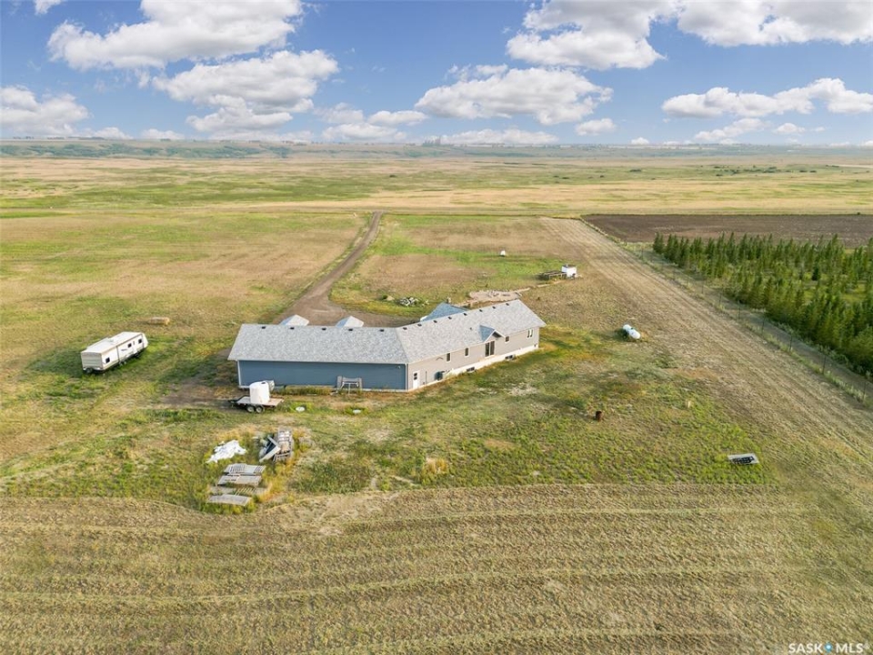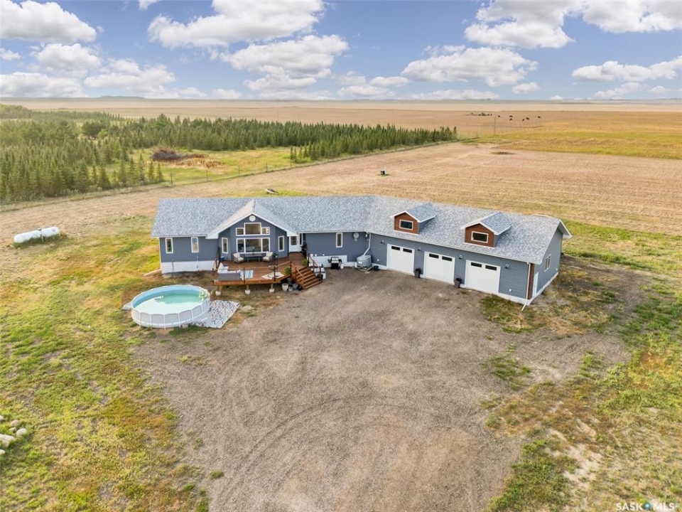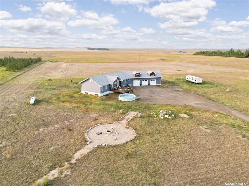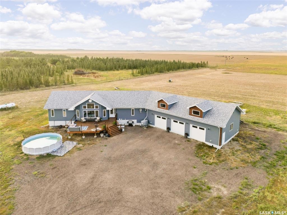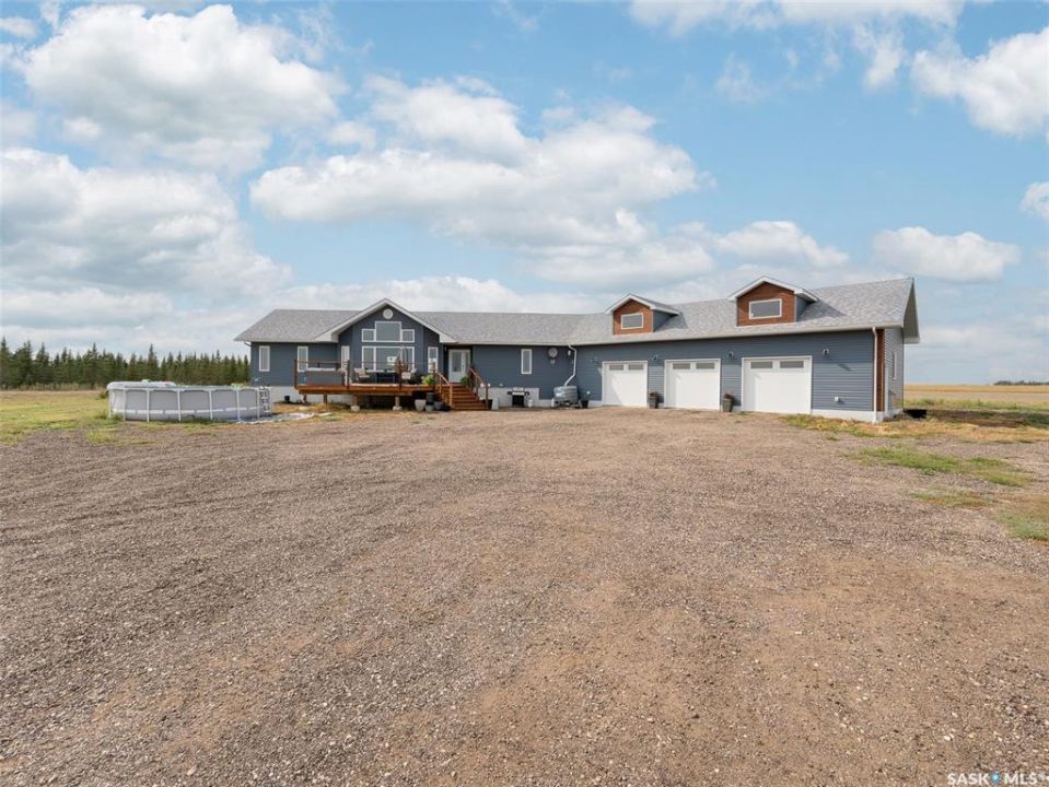 Dreaming of life in the country just minutes from the city?? Stargazing on your deck away from the city lights? Dreams do come true! This 10 acre parcel boasts a 1,600+ square foot home that is built with the best view in mind & the front deck will be your favourite place to soak up the sunrise! Inside, this home feels warm & welcoming with a modern farmhouse vibe! The view from the Living Room is stunning with huge south facing windows taking full advantage or the vaulted ceiling & is set off with a sleek Fireplace flanked by rustic built-ins. The open concept main floor is perfect for gathering with family & friends with the Kitchen boasting custom concrete countertops, deep farmhouse sink, corner pantry, stylish lighting & island with the Dining Room finished with feature wall & patio doors opening on to a new back deck. To one side of the home, you will find 2 spacious Bedrooms & full Bath with the Primary Suite (walk-in closet & 4pc Ensuite) on the opposite side of the house allowing for privacy. MAIN FLOOR LAUNDRY is adjacent to the MASSIVE HEATED GARAGE with soaring ceilings & dormers (future mezzanine??). The lower level is ready for your ideas with r/in plumbing for additional Bath & 1 or 2 more Bedrooms – you choose! (Framing materials can be negotiated). Start planning your move to the country now & enjoy the peace & tranquility this change of address will bring! Directions: From MJ - Highway 1 East to Weyburn turn off. North on 301 to Twp Rd 172. East approximately 3kms to sign.