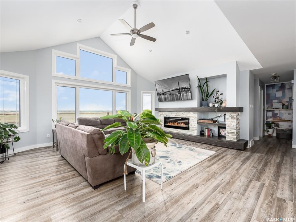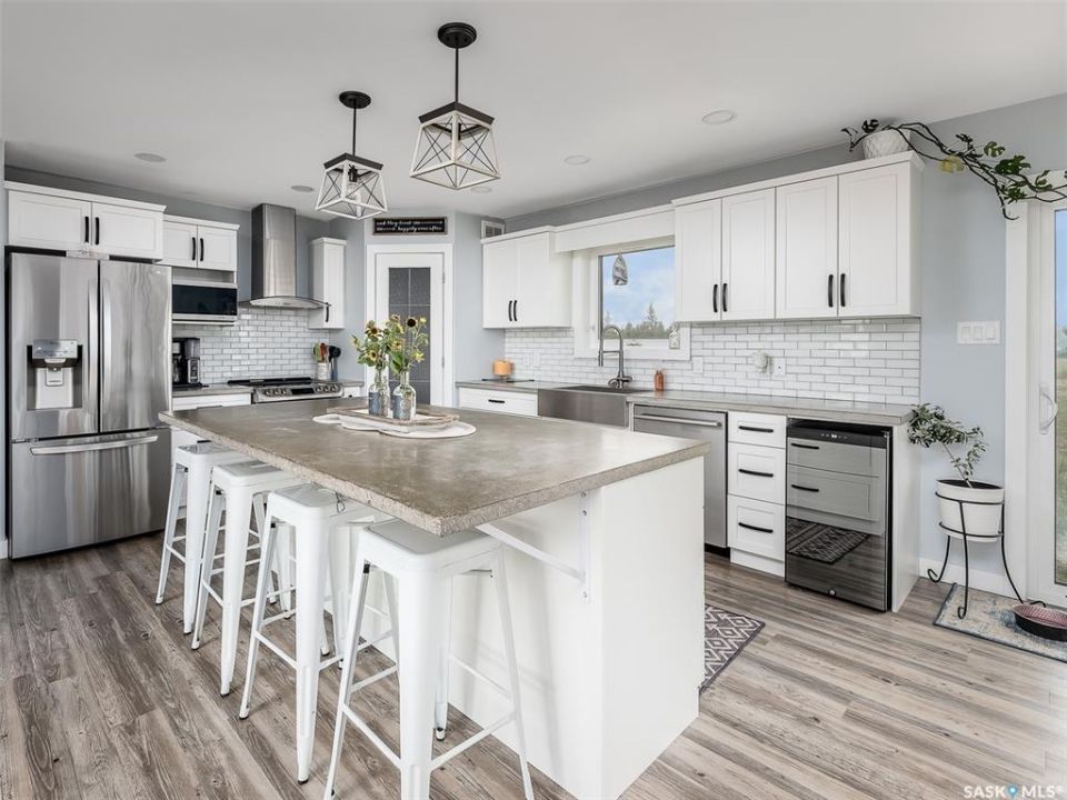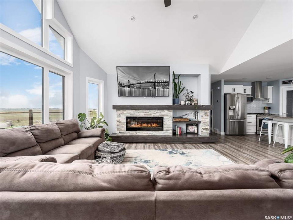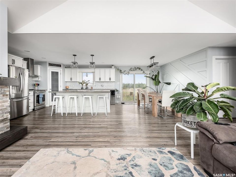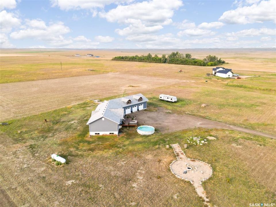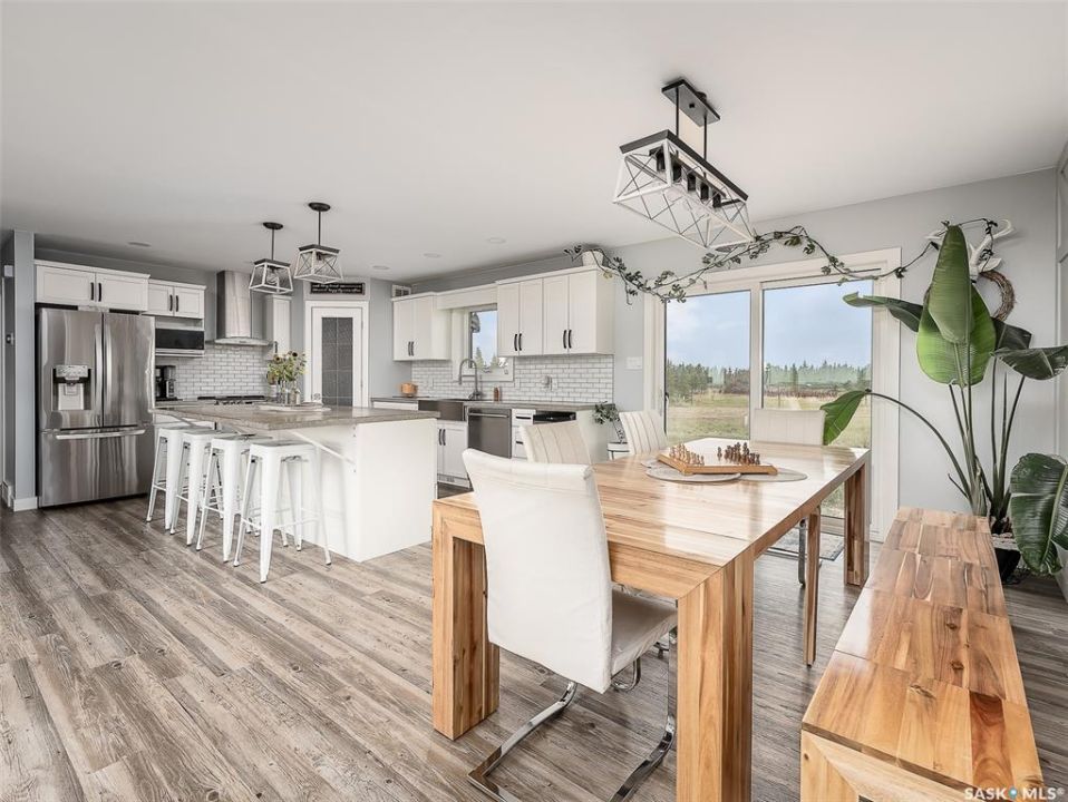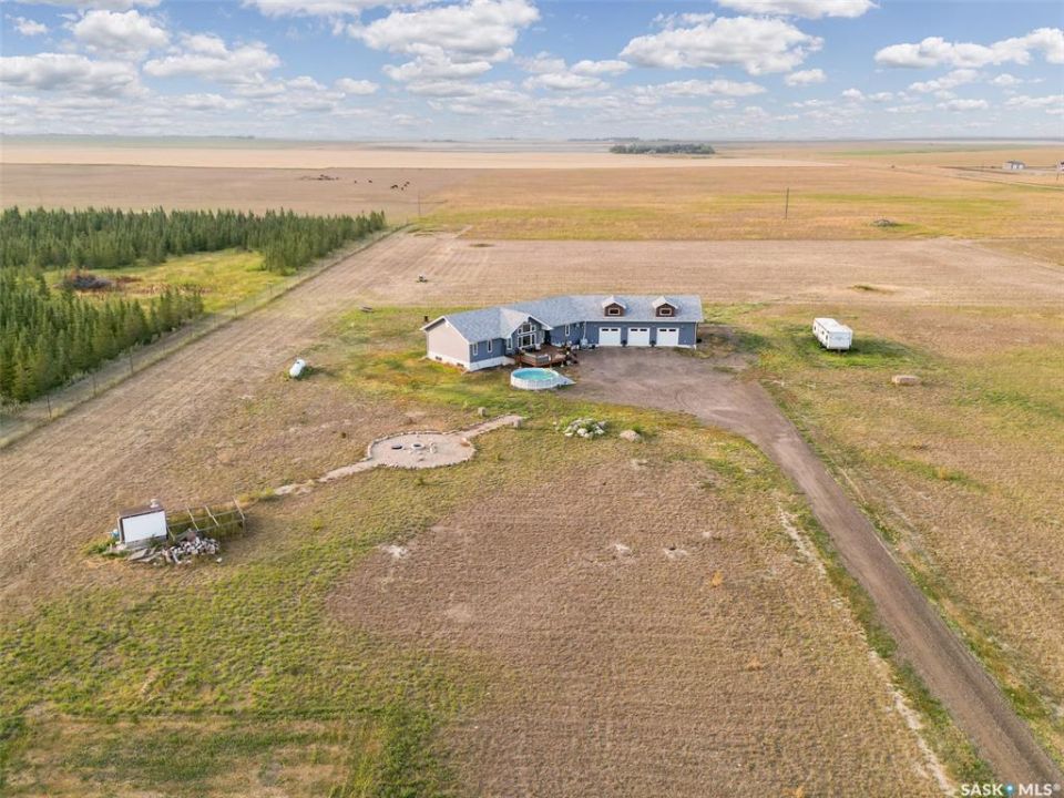 Dreaming of life in the country just minutes from the city?? Stargazing on your deck away from the city lights? Dreams do come true! This 10 acre parcel boasts a 1,600+ square foot home that is built with the best view in mind & the front deck will be your favourite place to soak up the sunrise! Inside, this home feels warm & welcoming with a modern farmhouse vibe! The view from the Living Room is stunning with huge south facing windows taking full advantage or the vaulted ceiling & is set off with a sleek Fireplace flanked by rustic built-ins. The open concept main floor is perfect for gathering with family & friends with the Kitchen boasting custom concrete countertops, deep farmhouse sink, corner pantry, stylish lighting & island with the Dining Room finished with feature wall & patio doors opening on to a new back deck. To one side of the home, you will find 2 spacious Bedrooms & full Bath with the Primary Suite (walk-in closet & 4pc Ensuite) on the opposite side of the house allowing for privacy. MAIN FLOOR LAUNDRY is adjacent to the MASSIVE HEATED GARAGE with soaring ceilings & dormers (future mezzanine??). The lower level is ready for your ideas with r/in plumbing for additional Bath & 1 or 2 more Bedrooms – you choose! (Framing materials can be negotiated). Start planning your move to the country now & enjoy the peace & tranquility this change of address will bring! Directions: From MJ - Highway 1 East to Weyburn turn off. North on 301 to Twp Rd 172. East approximately 3kms to sign.